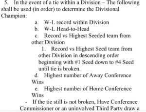 If their is a three way tie after tomorrow’s games here is the breakdown of how the ties in the divisions will be broken down.