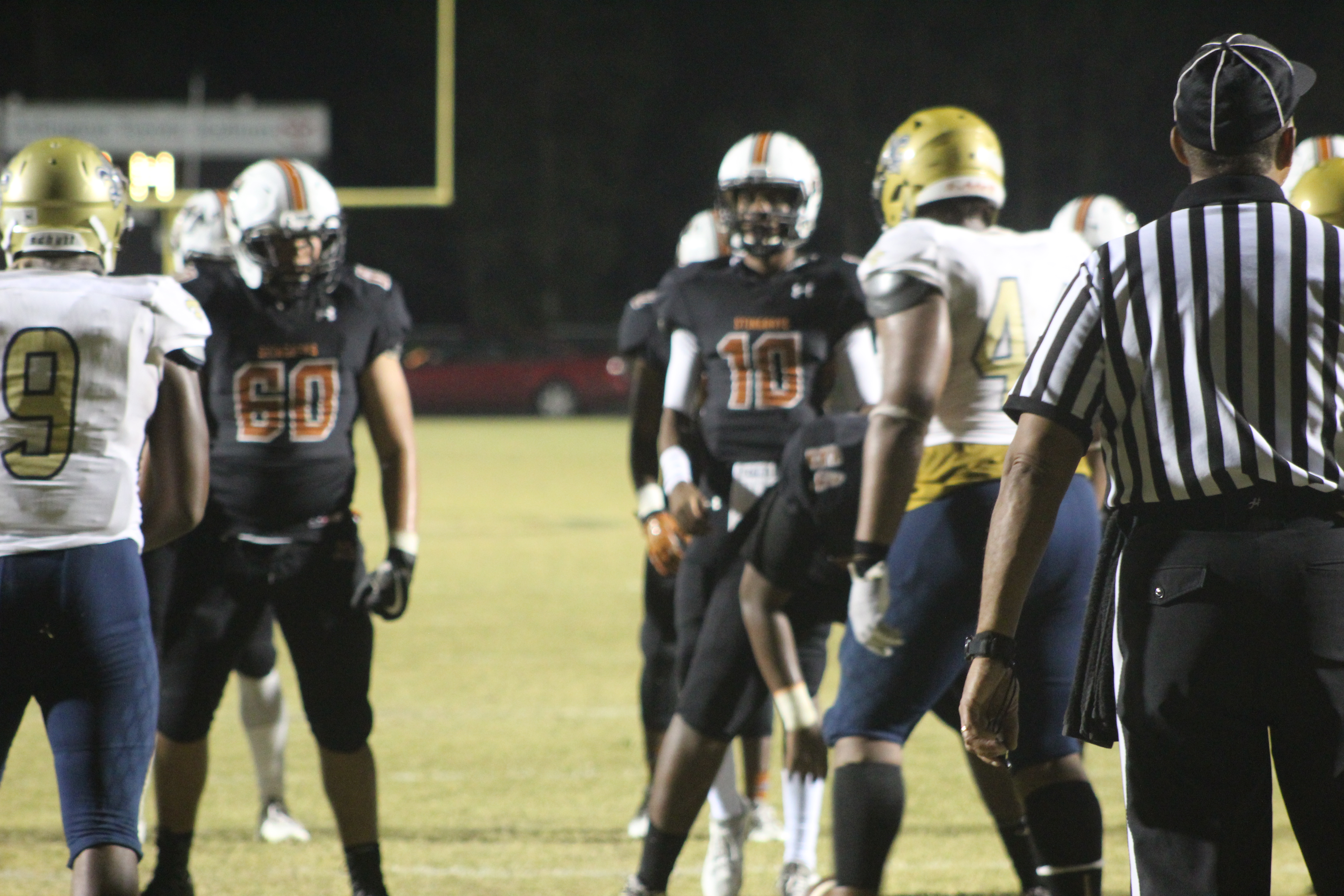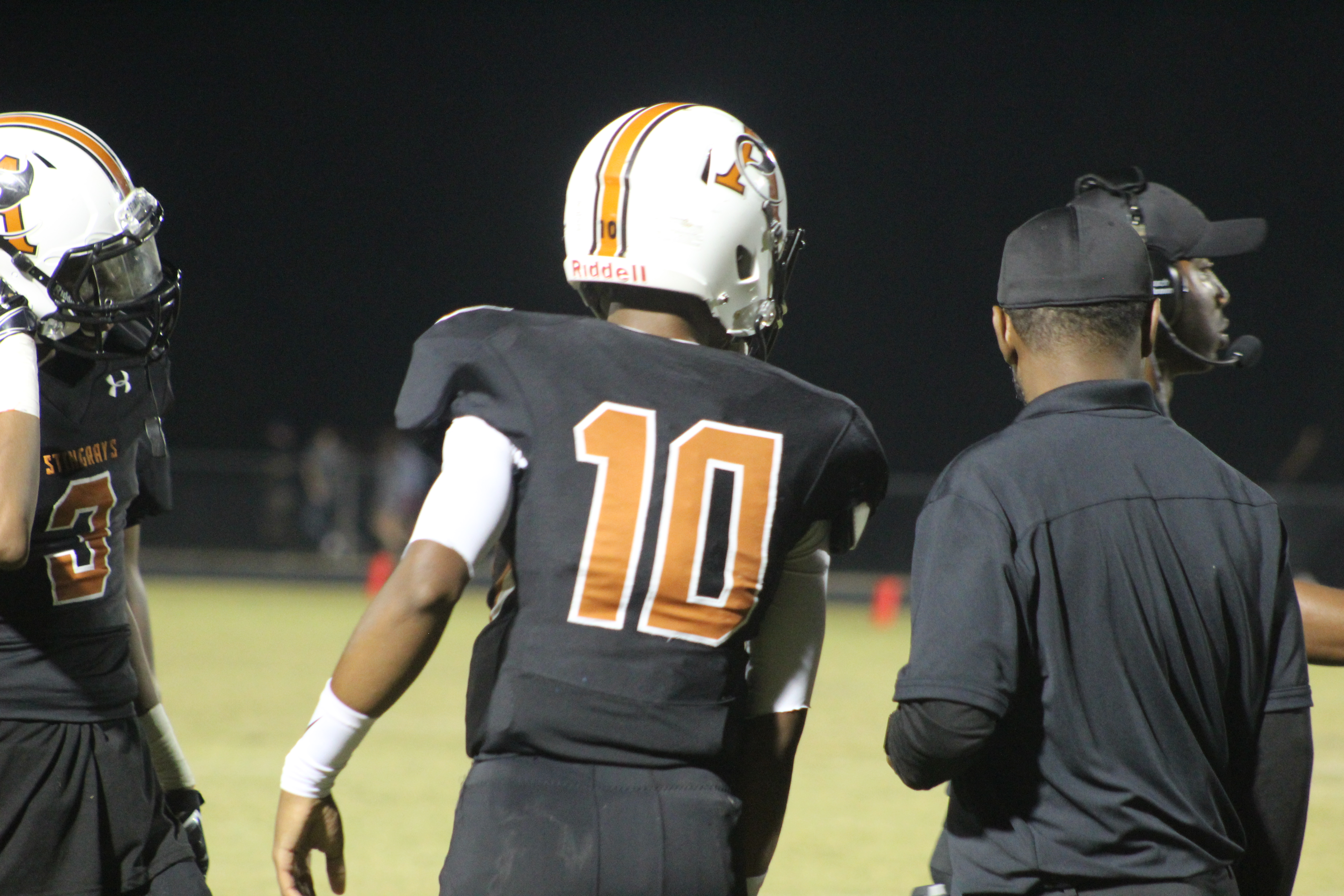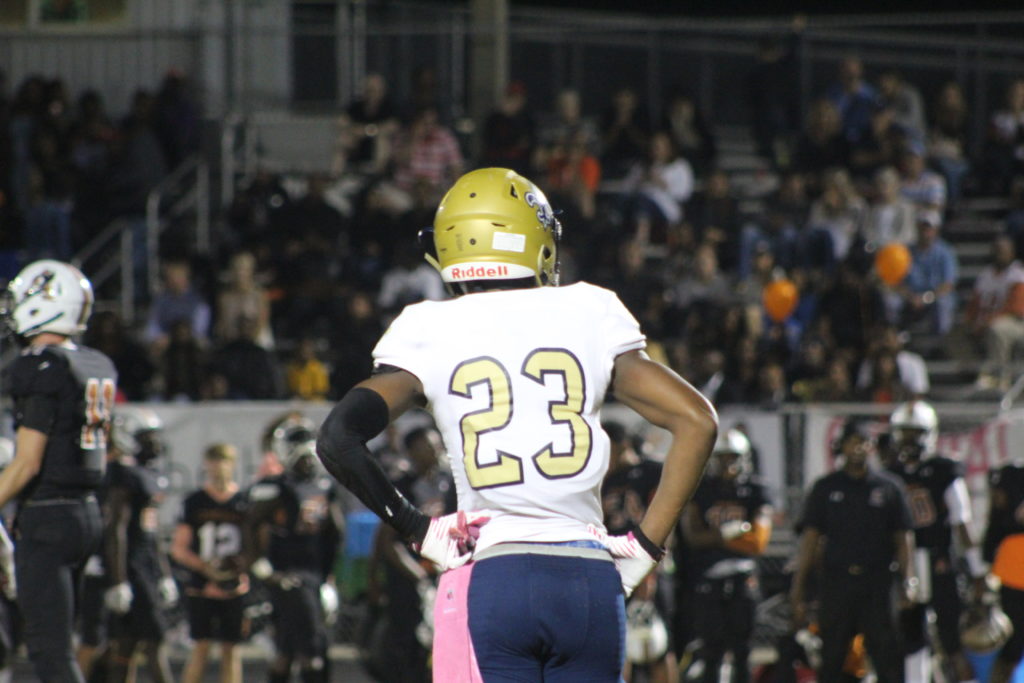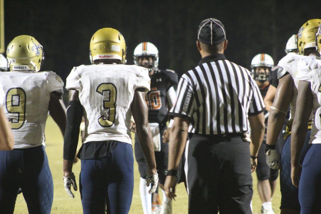 “Win for Joey” now became the battle cry for Atlantic Coast, yet the emotions of seeing a fallen player at the onset of the game may have been too much for them. Especially with a hungry Sandalwood team standing across on the opposing sideline. On the first drive of the game, Atlantic Coast Quarterback Tannor Watson moved the ball well through the air. They drove the ball to the Saints 27 yard line, but was forced to punt. Sandalwood began their drive at their own 20 yard line, and put together promising plays in the beginning as well. Yet they too would fall victim to a turnover as Stingray defensive back Travon Wallace intercepted the Sandalwood pass. The score remained 0-0.