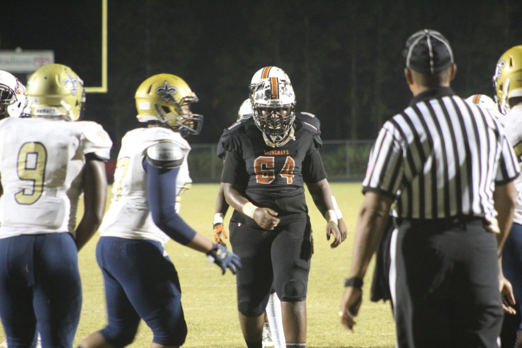 Atlantic Coast High School- Every football player must have it to be successful, and every football team must play with it to win. Passion isn’t something that your season record determines, passion is propelled from the heart. Both the Sandalwood Saints (5-5) and the Atlantic Coast Sting Rays (2-8) came into the last game of the season with nothing to play for but pride. Both were eliminated from playoff contention, but both still had a lot to play for. Sandalwood looked to complete an overall winning record, while Atlantic Coast looked to end the year at home with a win for first year head coach Jimmy Hill. It would take heart for both teams to achieve these goals, yet from the very beginning of the contest one team’s heart was seemingly ripped out of their chest.