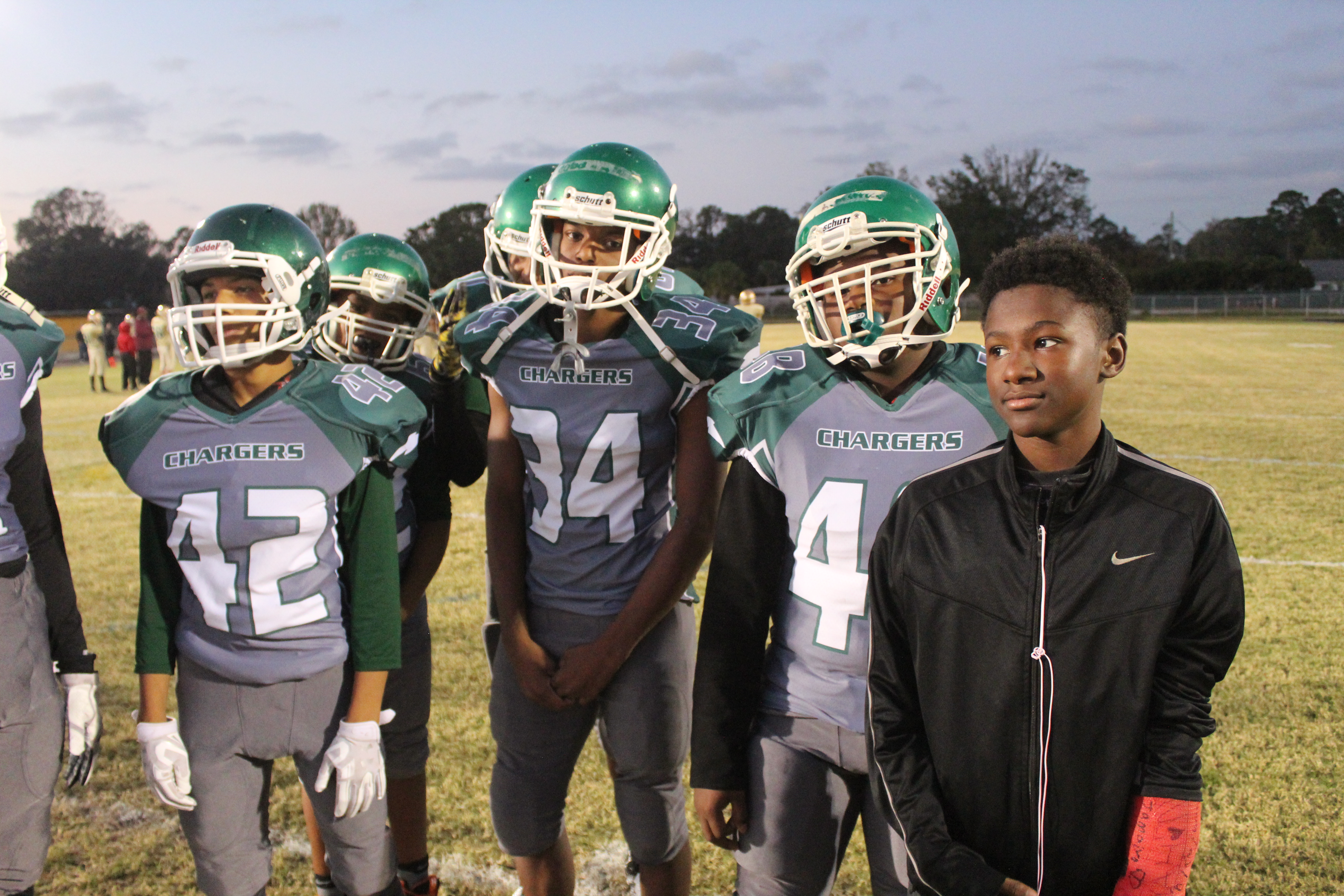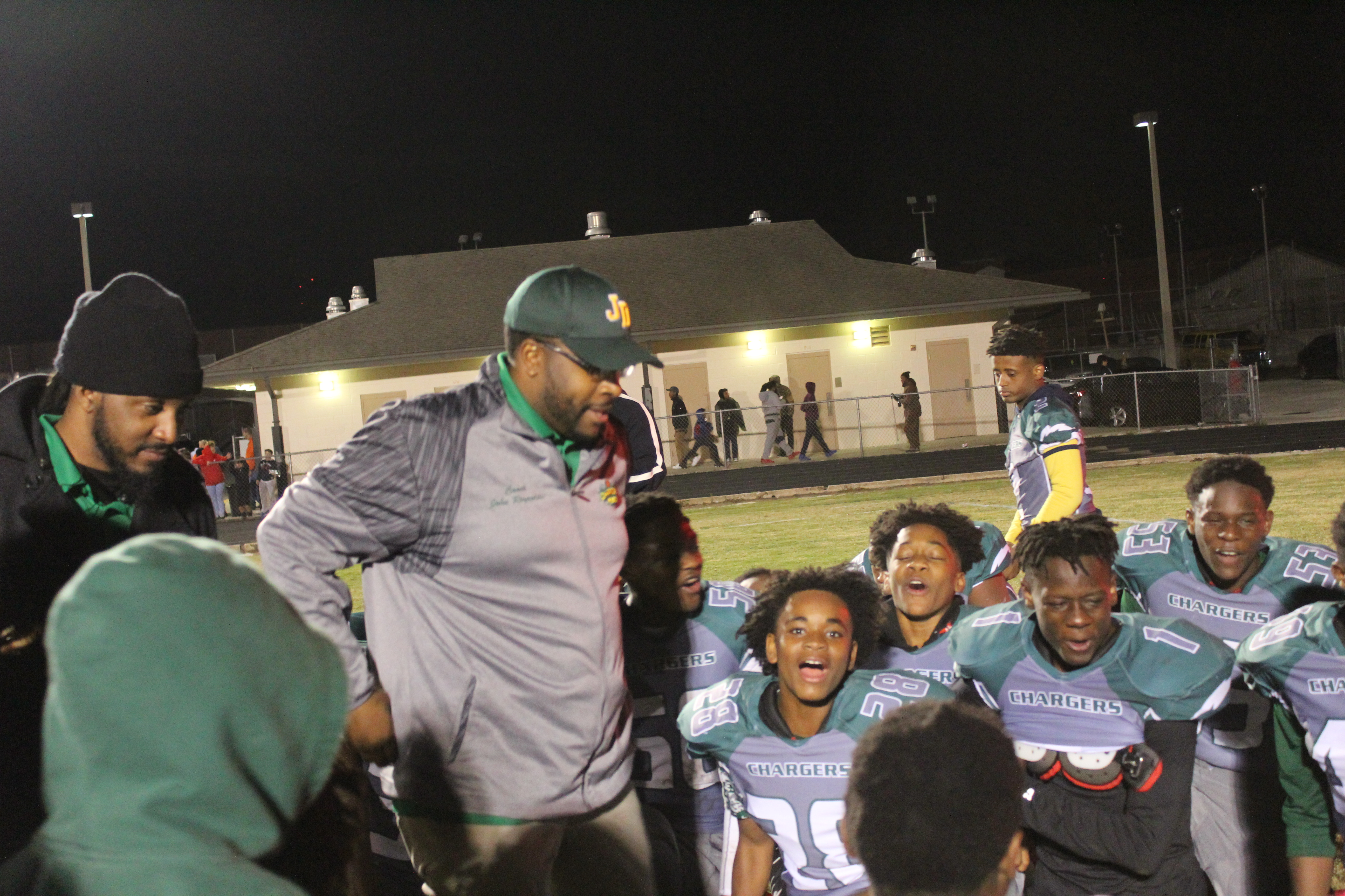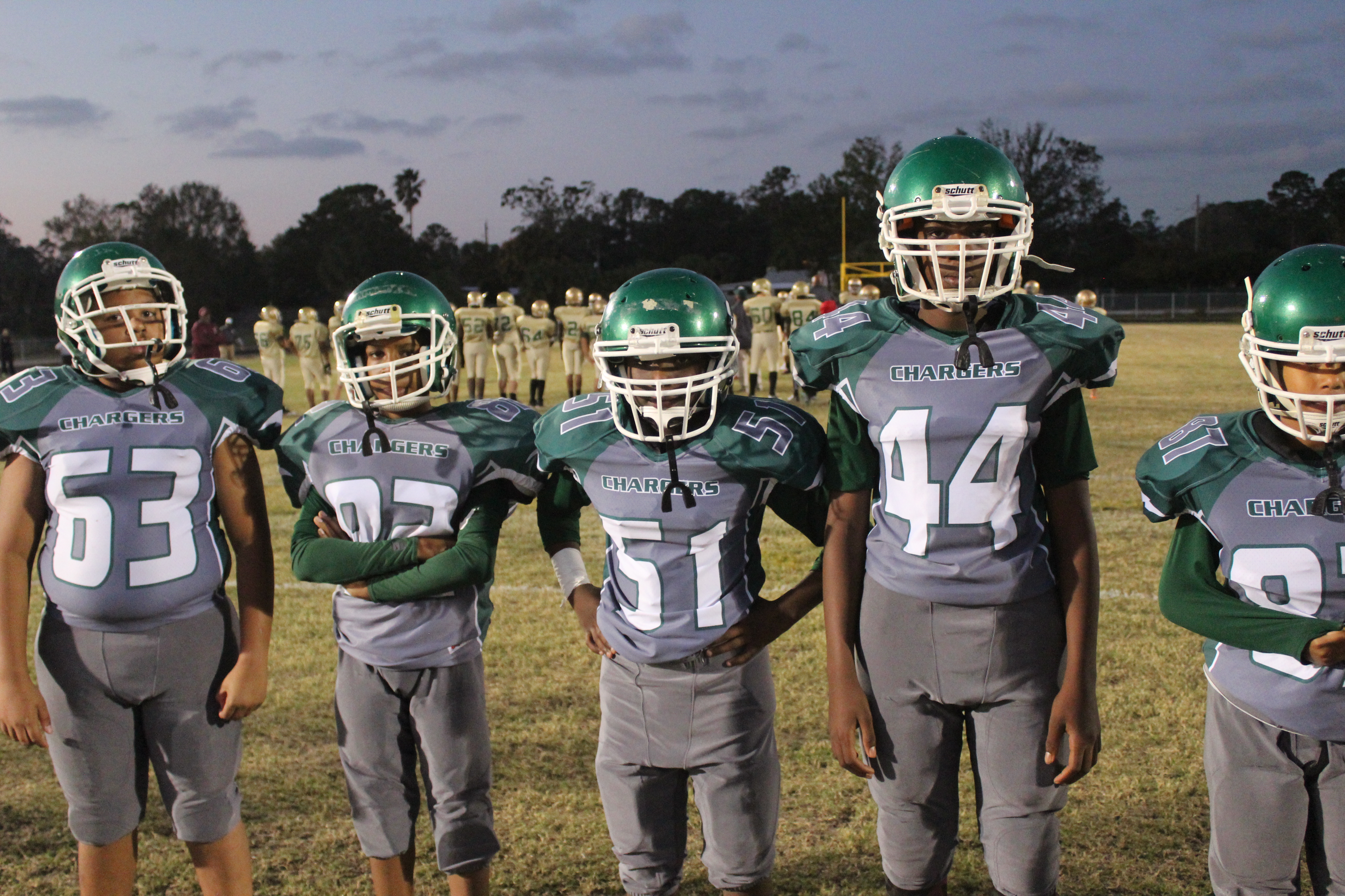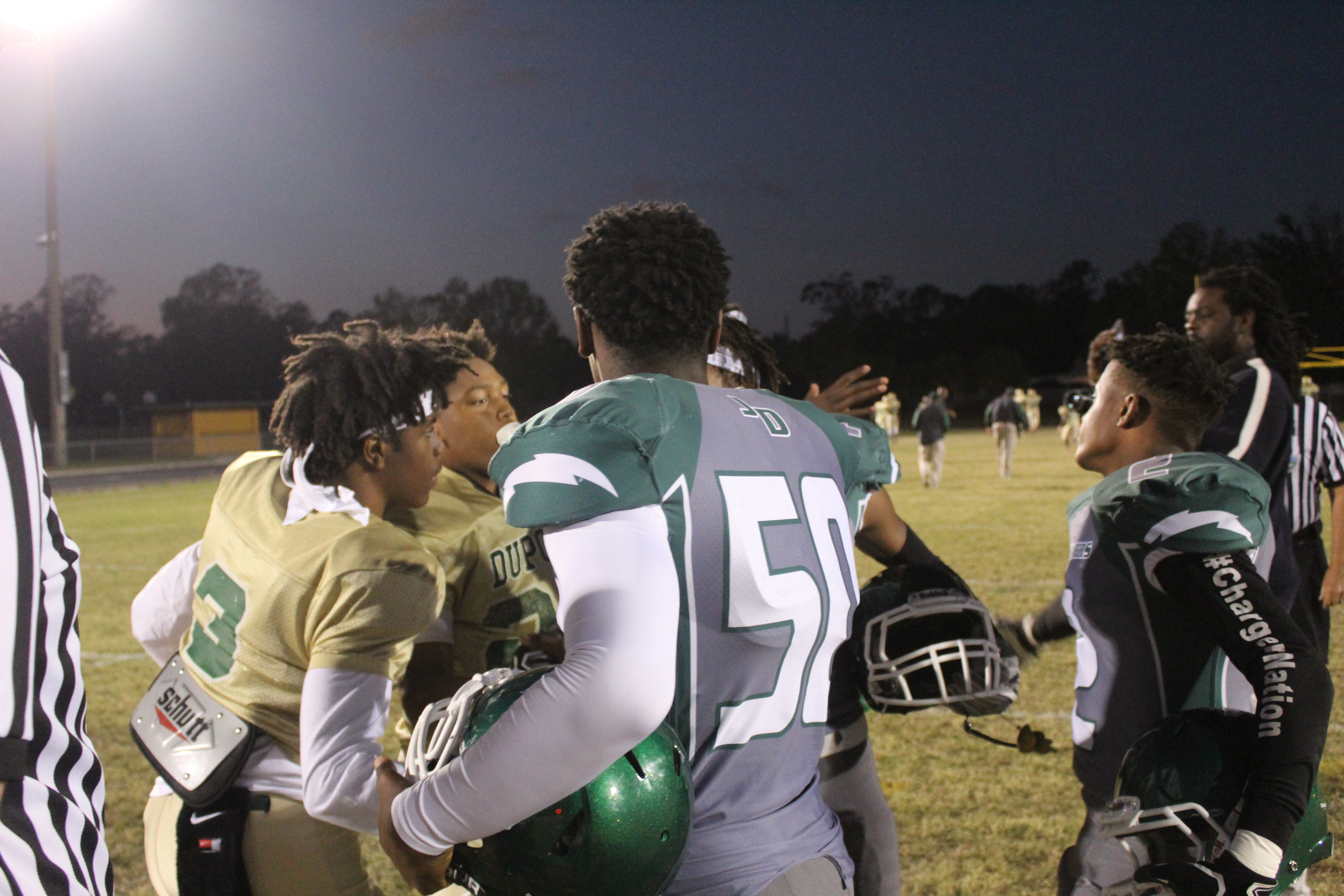 Englewood High School- It was the worst three minutes of football Dupont had played all year, and unfortunately for them, it happened against their best opponent all year. The Jeff Davis Chargers scored 20 points in three minutes en route to a 32-0 drubbing of the Dupont Dragons Tuesday night in the semifinals of the Duval County Middle School Football playoffs. The game, with everything on the line and high stakes at play, turned into a blowout after just one quarter as Jeff Davis completely dominated the affair from start to finish.