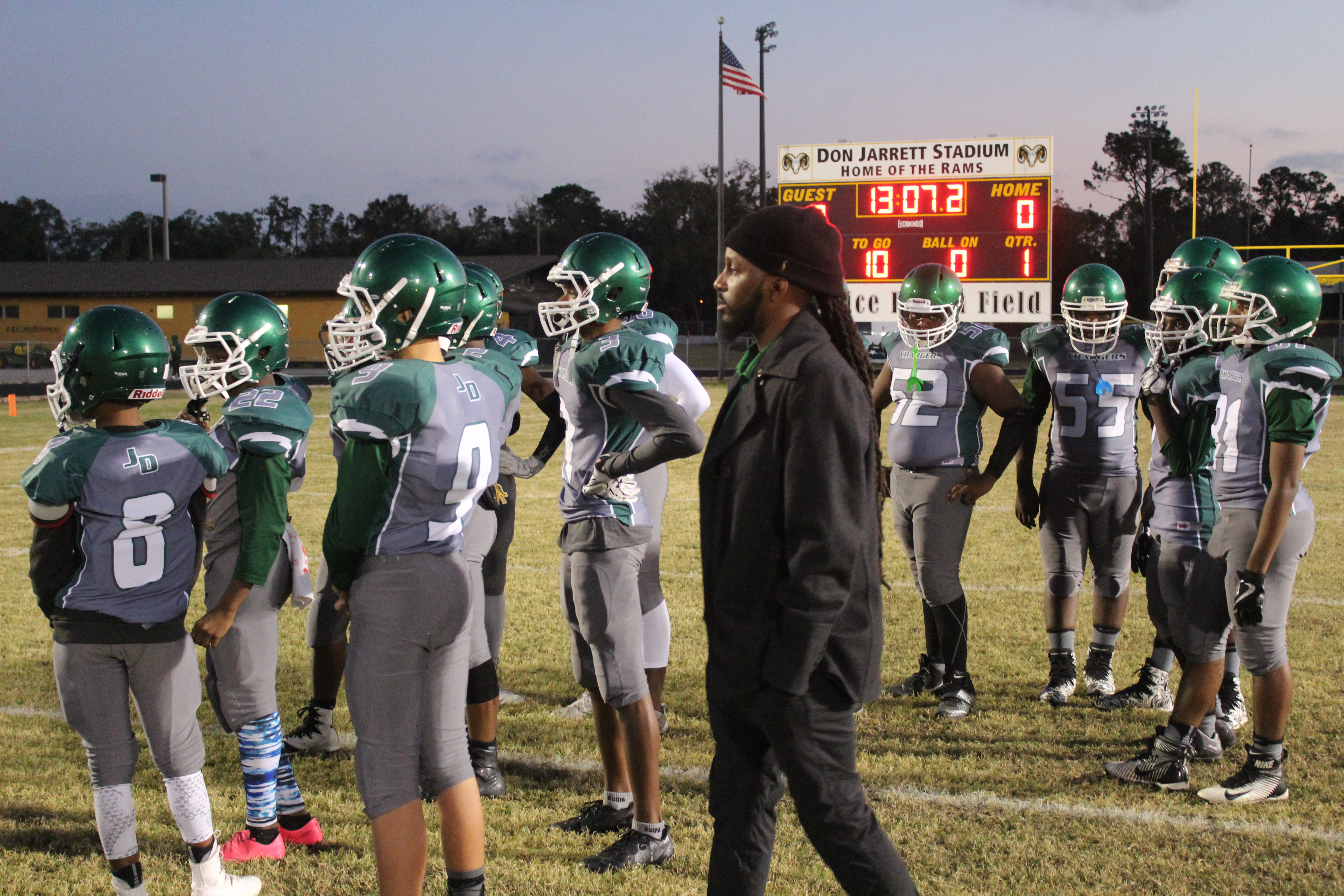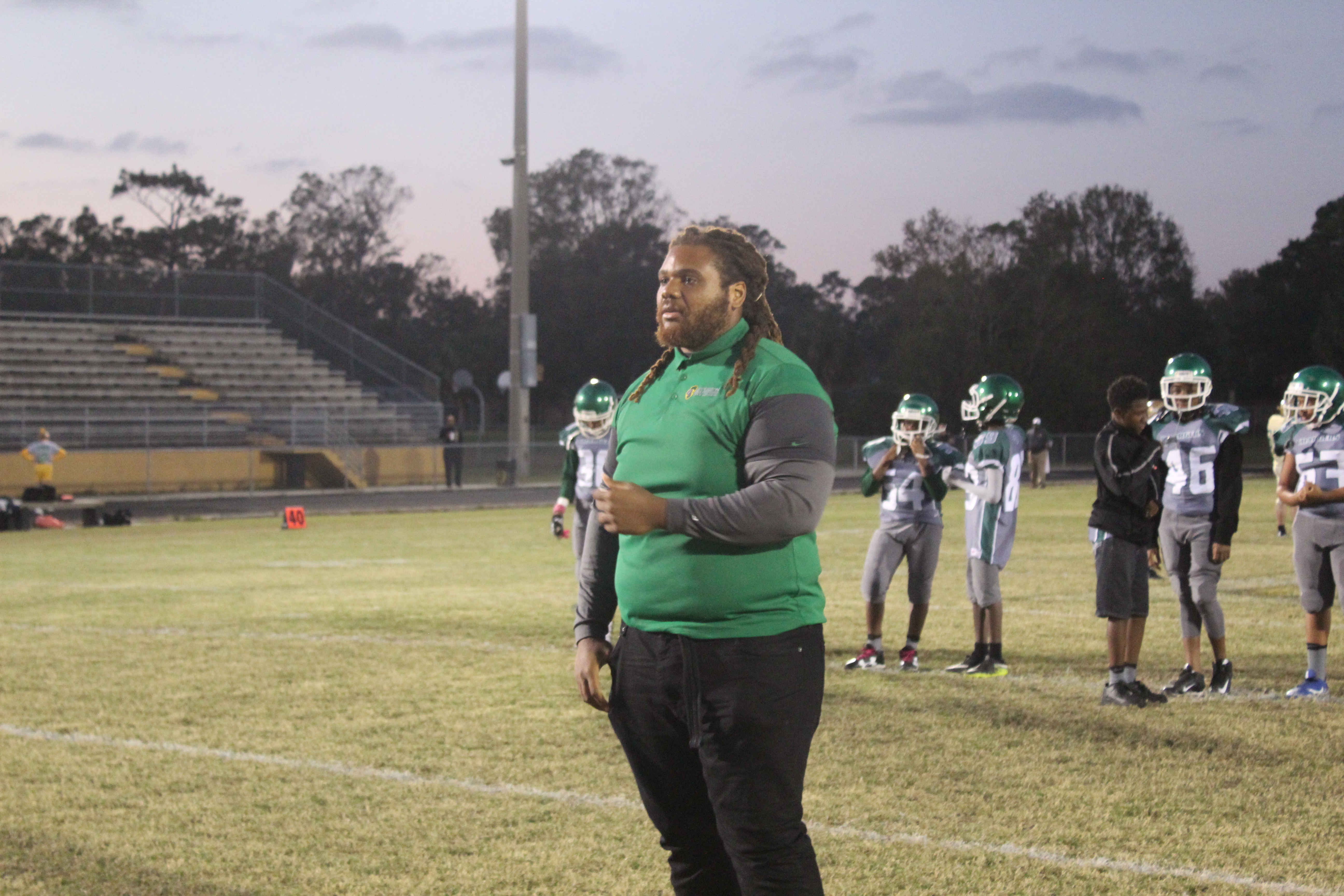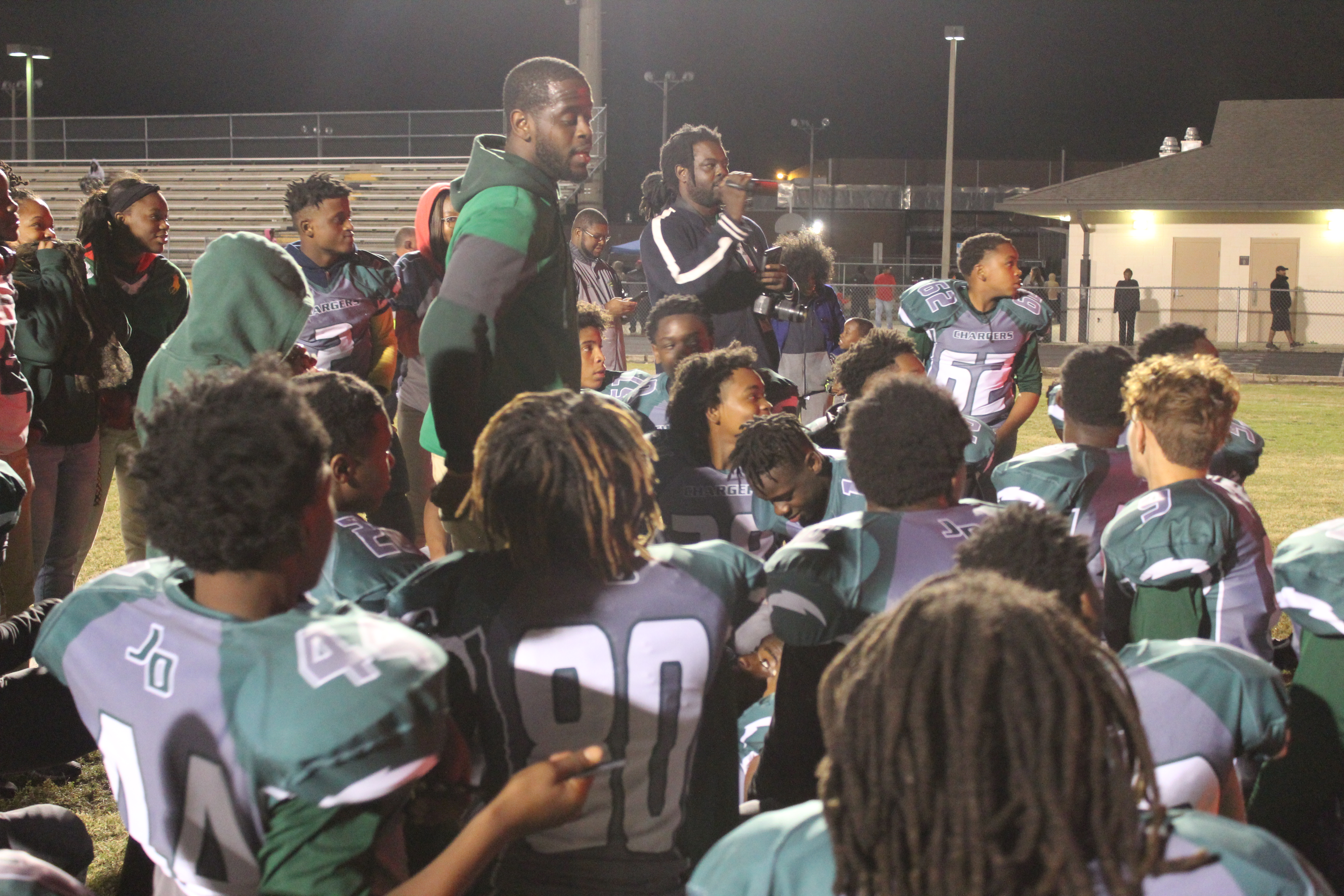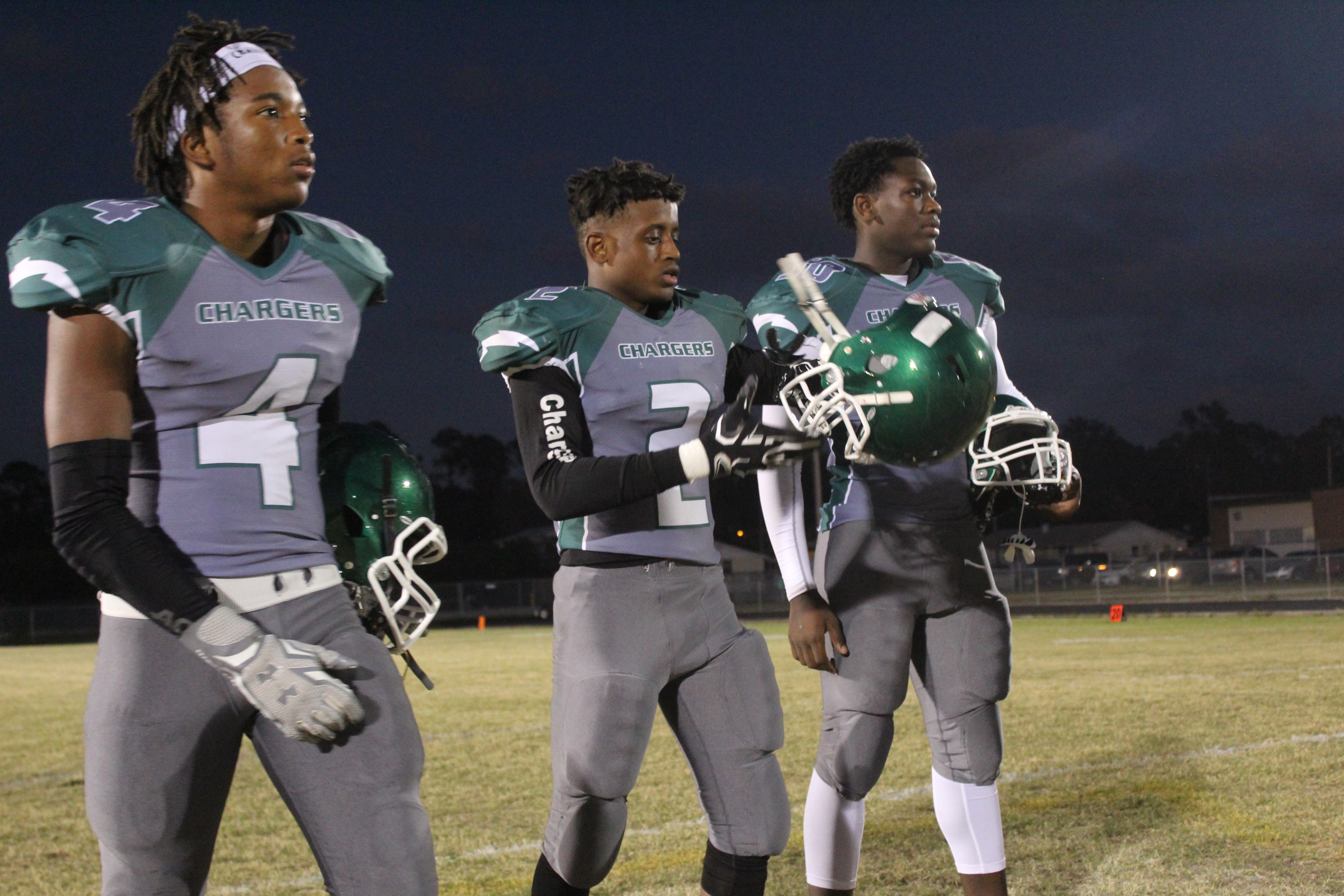 It was a bad dream for the Dragons that would quickly turn into a nightmare on their next possession. Dupont failed to get anything going on offense, and was forced to punt on fourth down. The Chargers executed a block punt and it was recovered by #1 Savion Wells who raced to the end zone to the disbelief of the crowd as Jeff Davis took a commanding 20-0 lead with four minutes left in the first quarter. A stunned Dupont sideline searched for answers, but there would be none on this night. Dupont, who had navigated an undefeated season, and possessed one of the more talented rosters in the city looked completely over matched, and they were. Even though Dupont possessed more size and length, Jeff Davis played faster, were more physical, and extremely confident, a true testament to Head Coach Reynolds and his coaching staff. Said Reynolds after the game. ” If you thought this game was physical you should see our practices. We get after it, so the players are eager to hit someone else”. This strategy seemed to work as Jeff Davis completely overwhelmed Dupont from the trenches to the secondary.