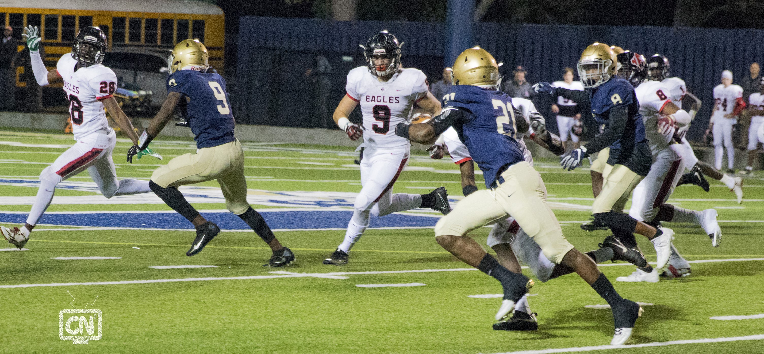 Outlook: These two are quite familiar with each other over the years having been old district rivals for years. Don’t let the most recent score fool you, as Bartram Trail only led Fleming Island 20-16 heading into the fourth quarter. It’s no surprise what both teams are going to do as Fleming Island relies heavily on its defense, while Bartram Trail relies on its high powered offense. For Fleming Island to win Smenda, Surgeoner, Bull and Robinson must have a huge night and not allow either Gatewood or Smith to get out of the pocket. For Bartram Trail to win its quite simple pick apart that loaded defense and put pressure on the Fleming Island offense. Smenda could be the x-factor in the game having taken on a greater role on offense, while also affecting the field position with his dynamic punting. One thing is for sure, Bartram Trail won’t be intimated having been at home all three rounds of the playoffs while also having played in the third round seven times under coach Darrell Sutherland, including four of the last five years. After missing the playoffs the last three years, the Eagles are playing in the third round for the first time since 2010. The Eagles won’t be intimidated either going on the road and knocking off #2 Edgewater 23-7 and #3 Lee 31-26.
