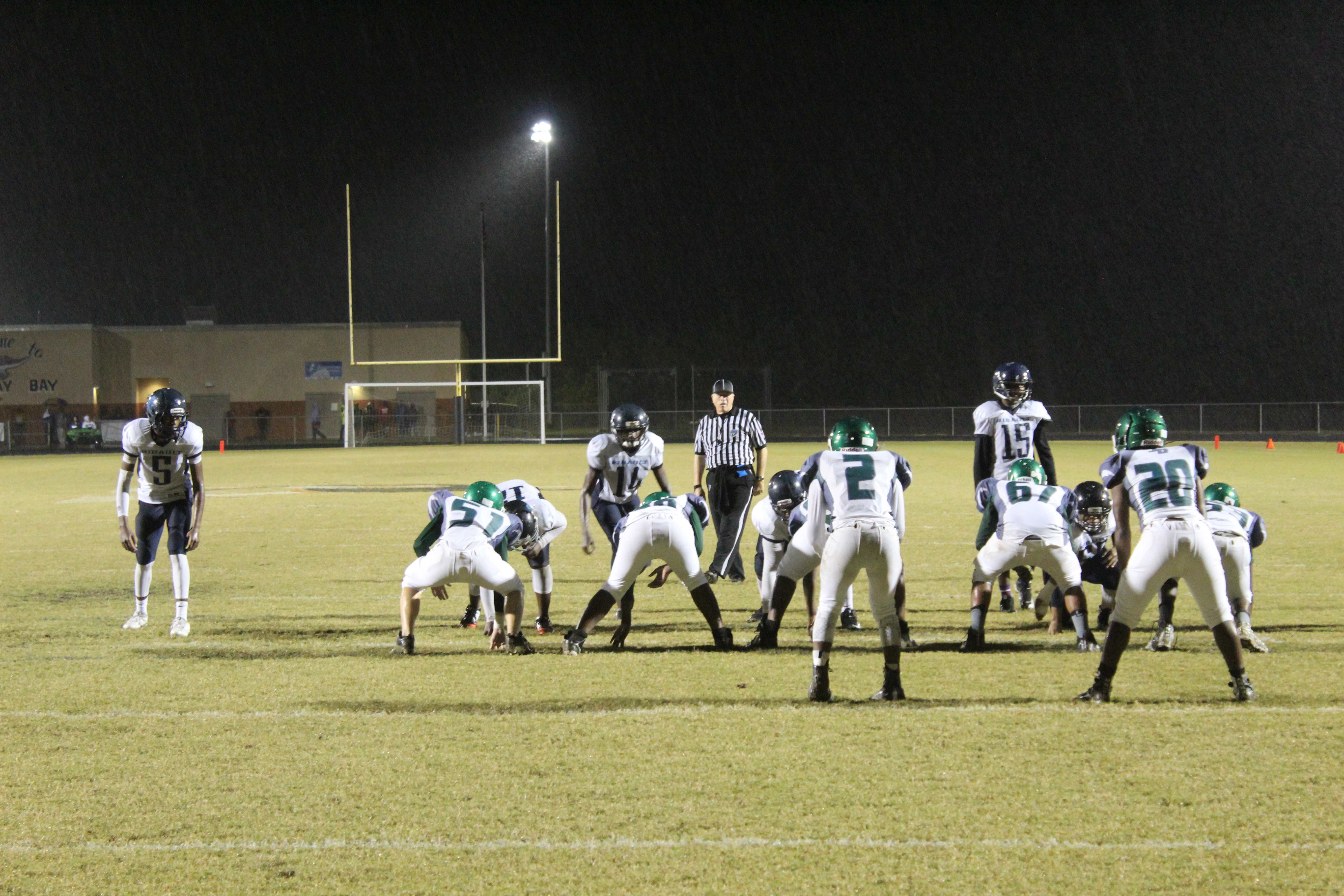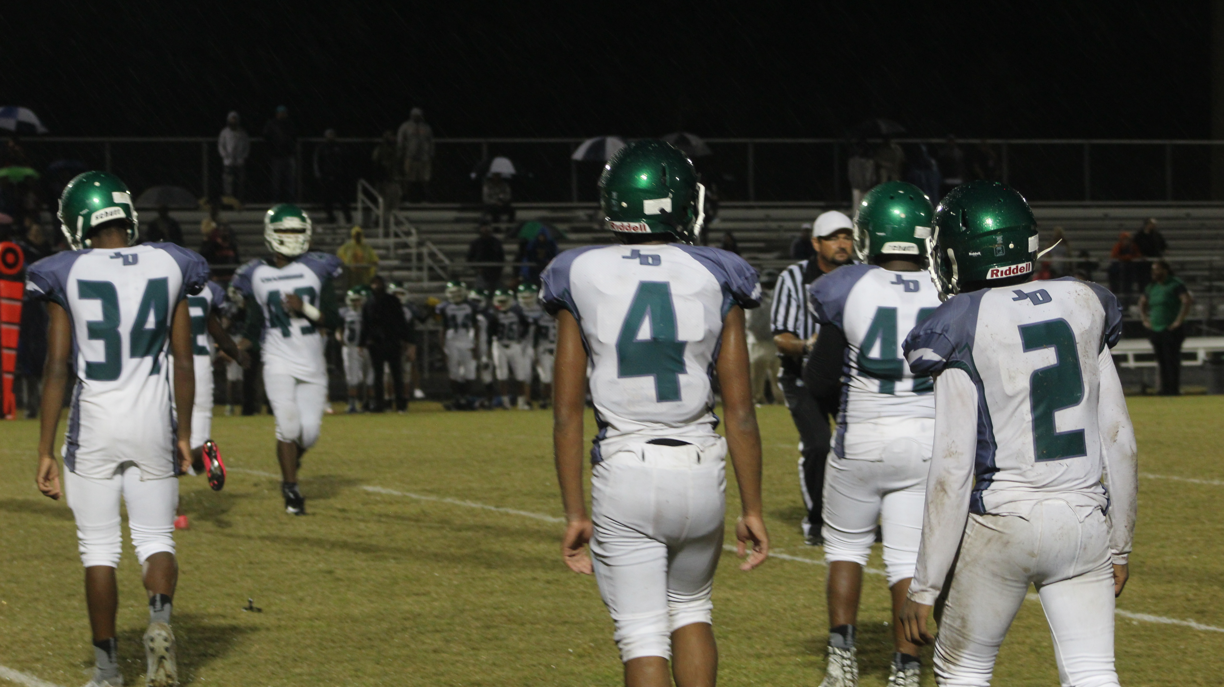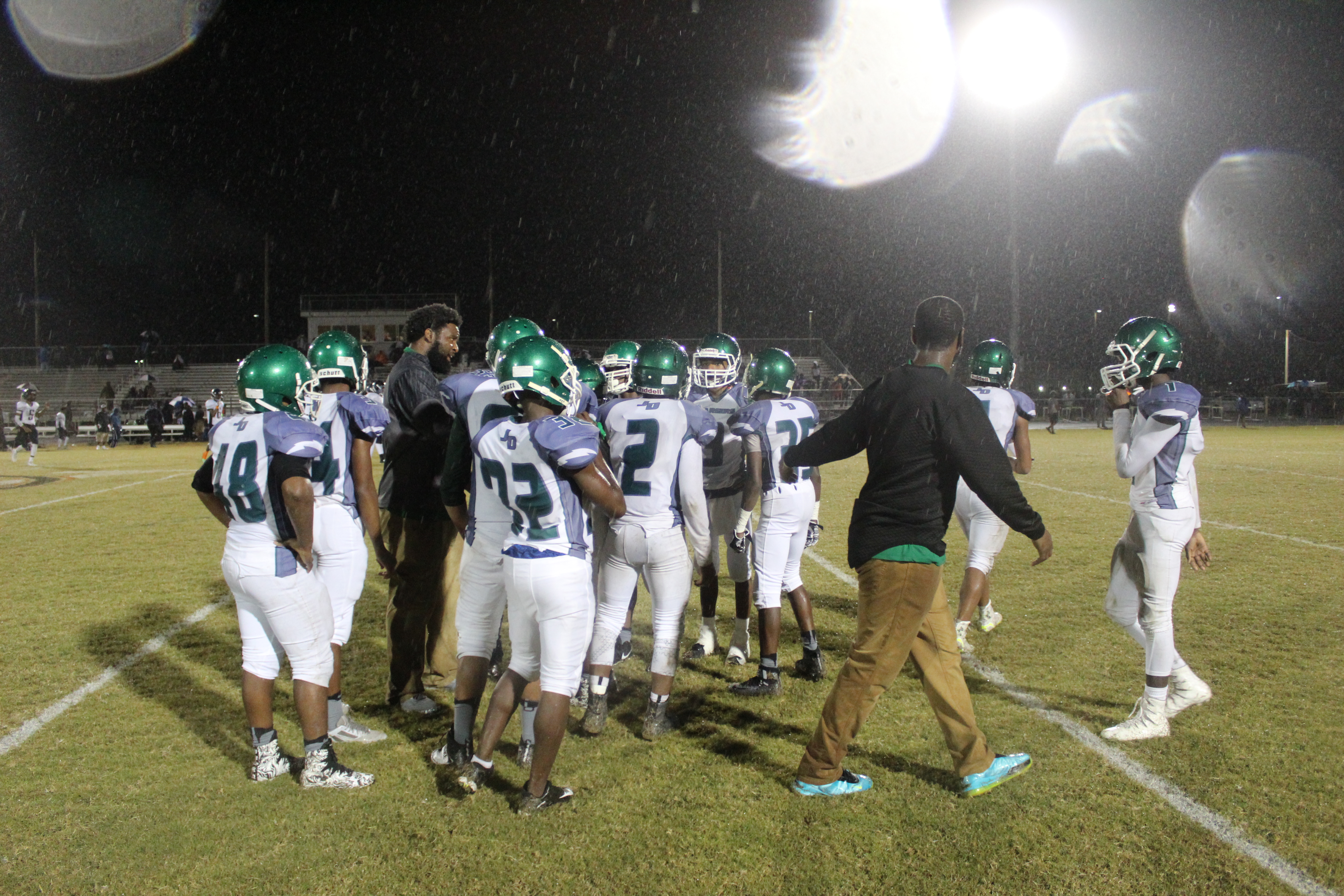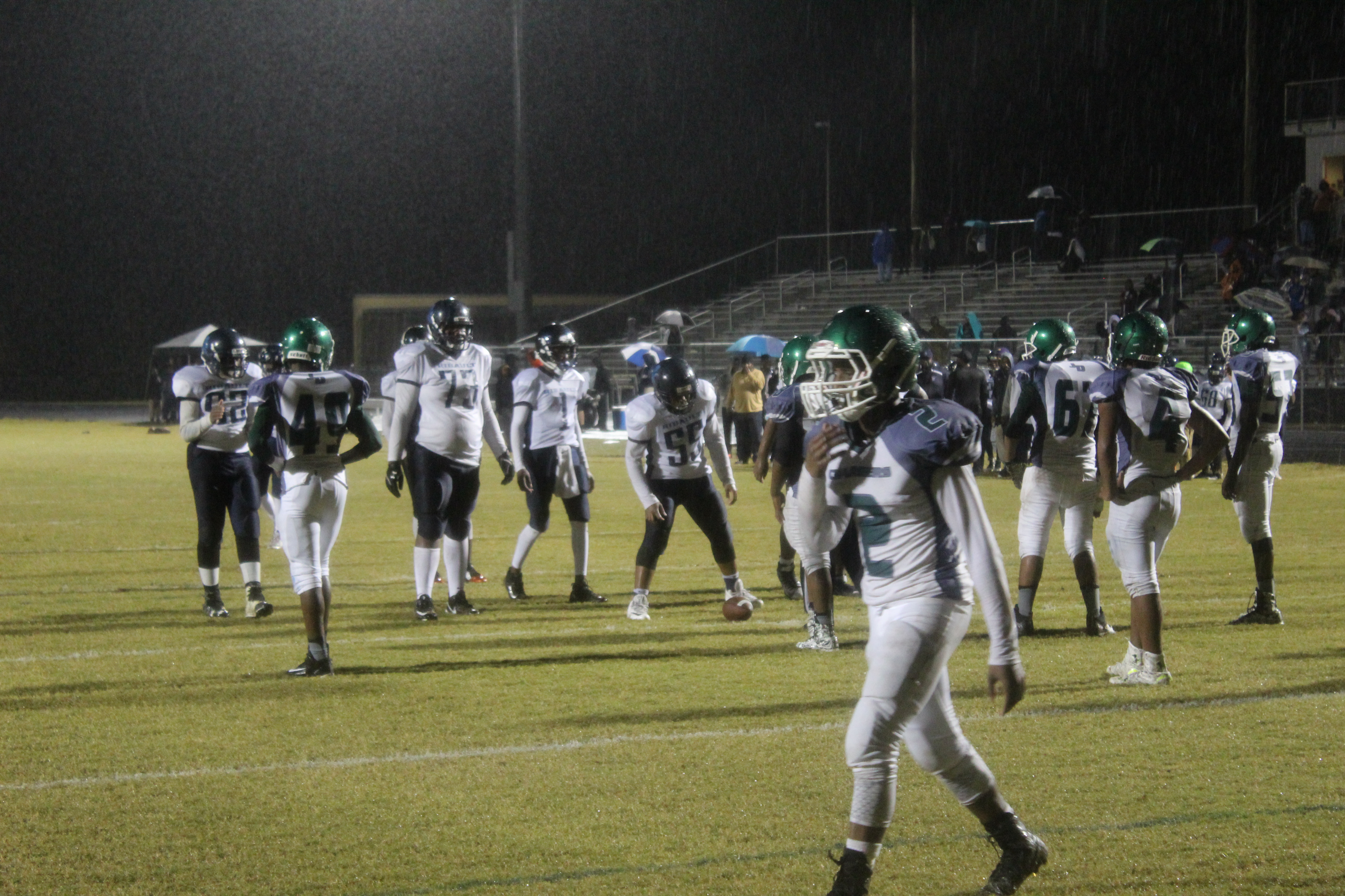 The high powered Ribault offense was held in check by Jeff Davis for most of the game. Quarterback Chris Calhoun hooked up with wide receiver Freddie Manning for a 35 yard reception, their longest hook up of the game. However the rest of the night saw Calhoun unable to elude the Charger rush with his scrambling. The Colts were also unable to run the ball effectively against the Jeff Davis stunting defenders. Kaloun Walker knifed in from his linebacker position to stop #2 Javari Williams.