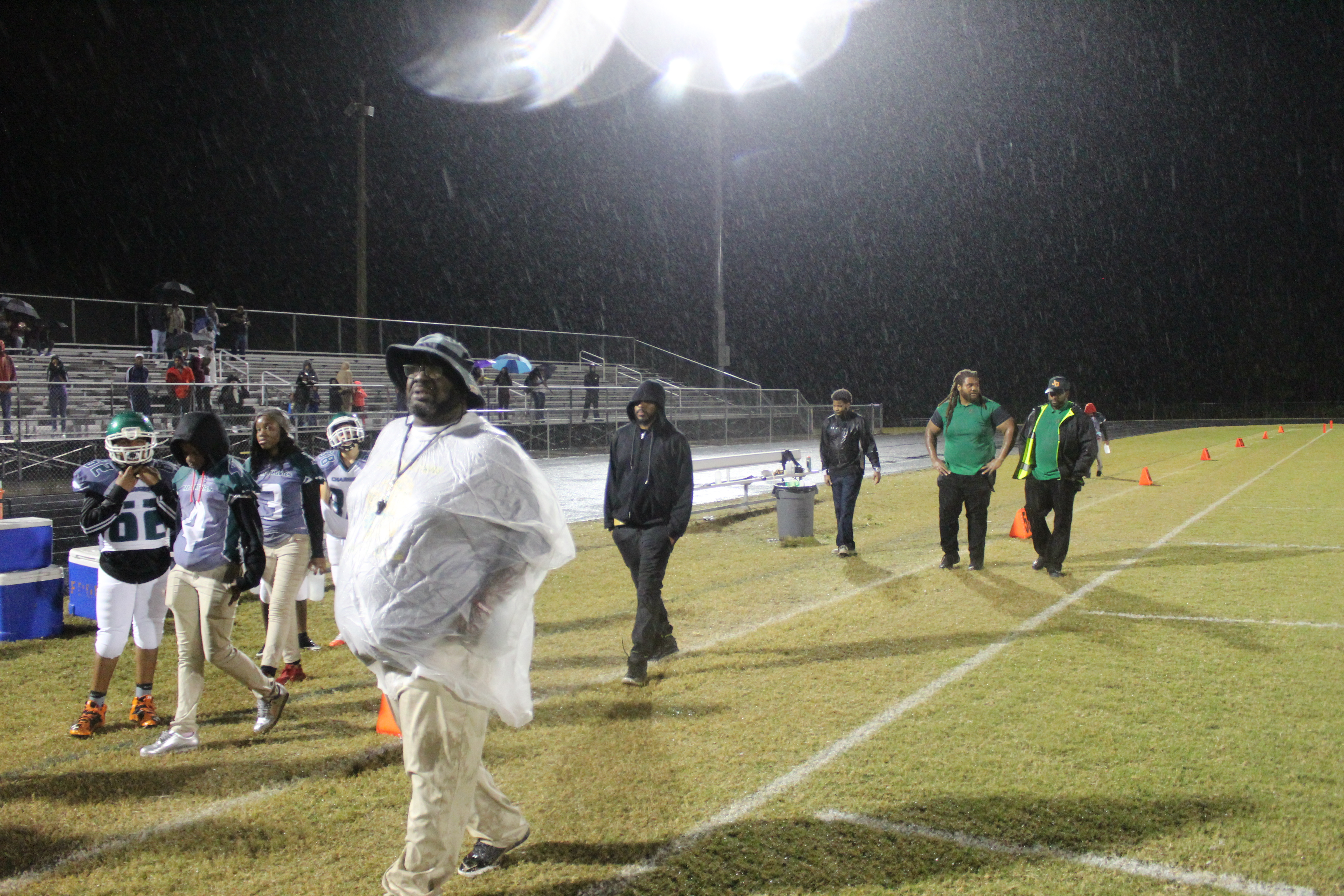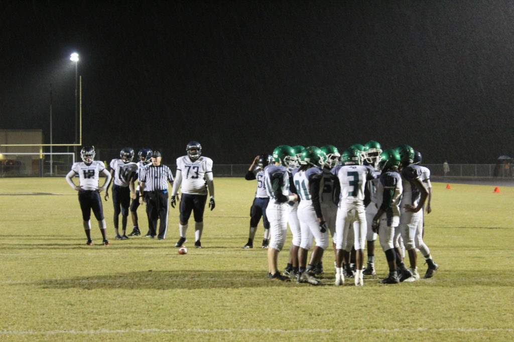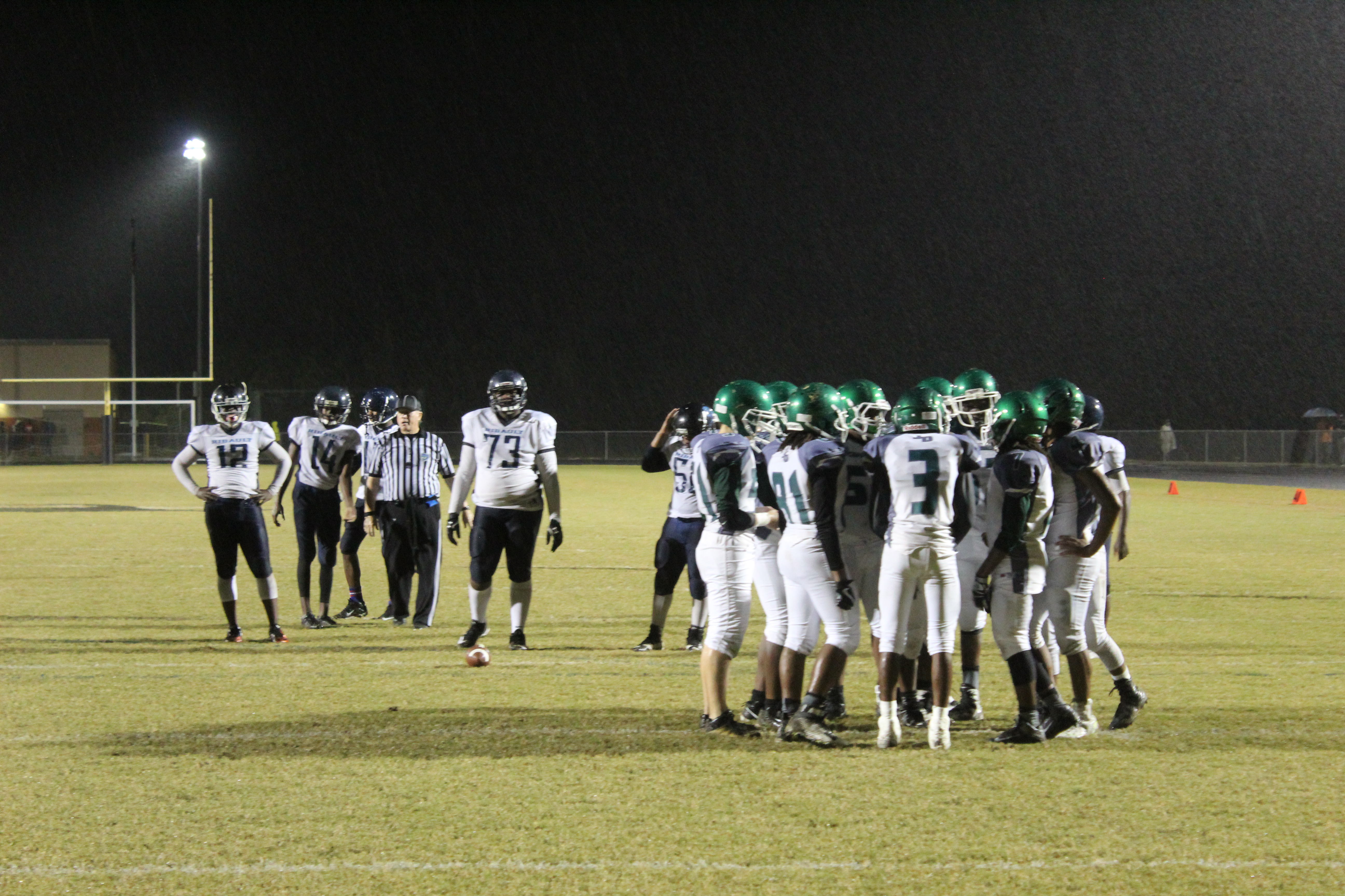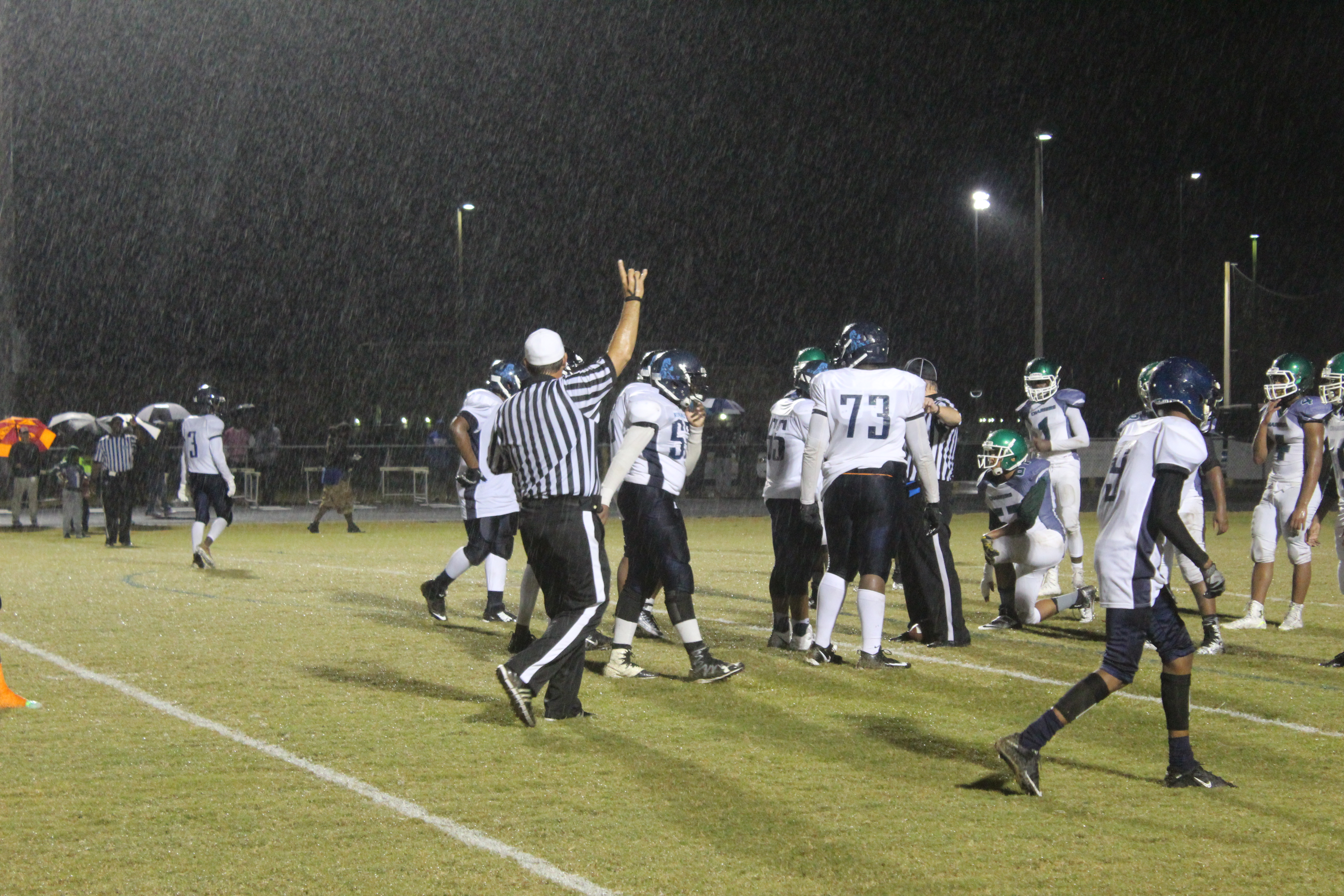 The high powered Ribault offense was held in check by Jeff Davis for most of the game. Quarterback Chris Calhoun hooked up with wide receiver Freddie Manning for a 35 yard reception, their longest hook up of the game. However the rest of the night saw Calhoun unable to elude the Charger rush with his scrambling. The Colts were also unable to run the ball effectively against the Jeff Davis stunting defenders. Kaloun Walker knifed in from his linebacker position to stop #2 Javari Williams.