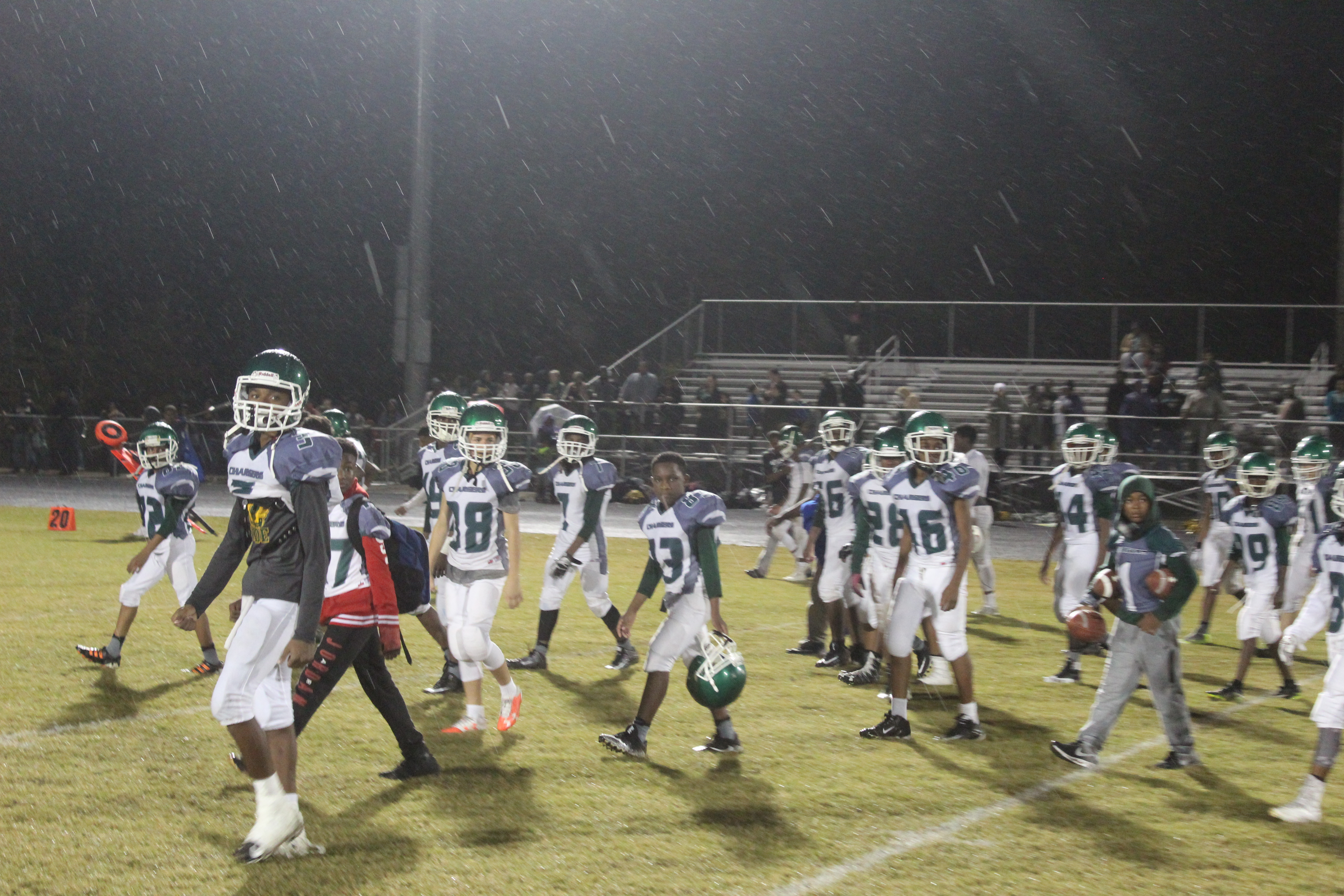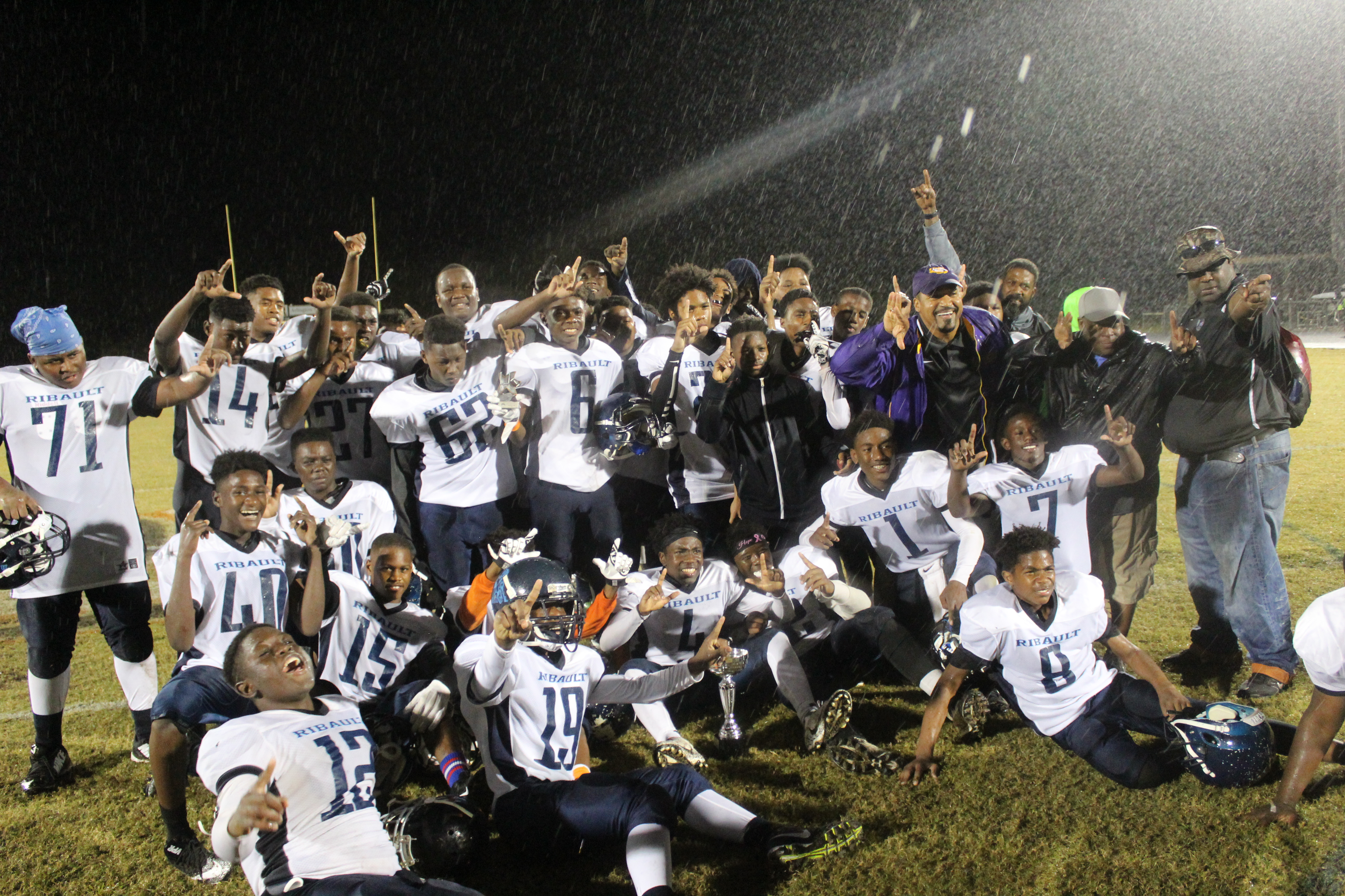 Atlantic Coast High School- Relief, gratification, exuberance, elation these were just some of the feelings in the air when the clock struck zero on the 2017 Ribault Middle School Football season Tuesday night. Relief that after five years in the Duval County Middle School Championship conference, Ribault had finally won the North division over their long time divisional foe. Gratification in knowing that their off-season prediction of winning a title came to fruition. Exuberance in celebration, grasping the reality that the player’s hard work during the season had paid off. Elation in the moment that the Colts of Ribault had weathered a storm in the air, as well as one on the field against the Chargers of Jeff Davis to win the championship.