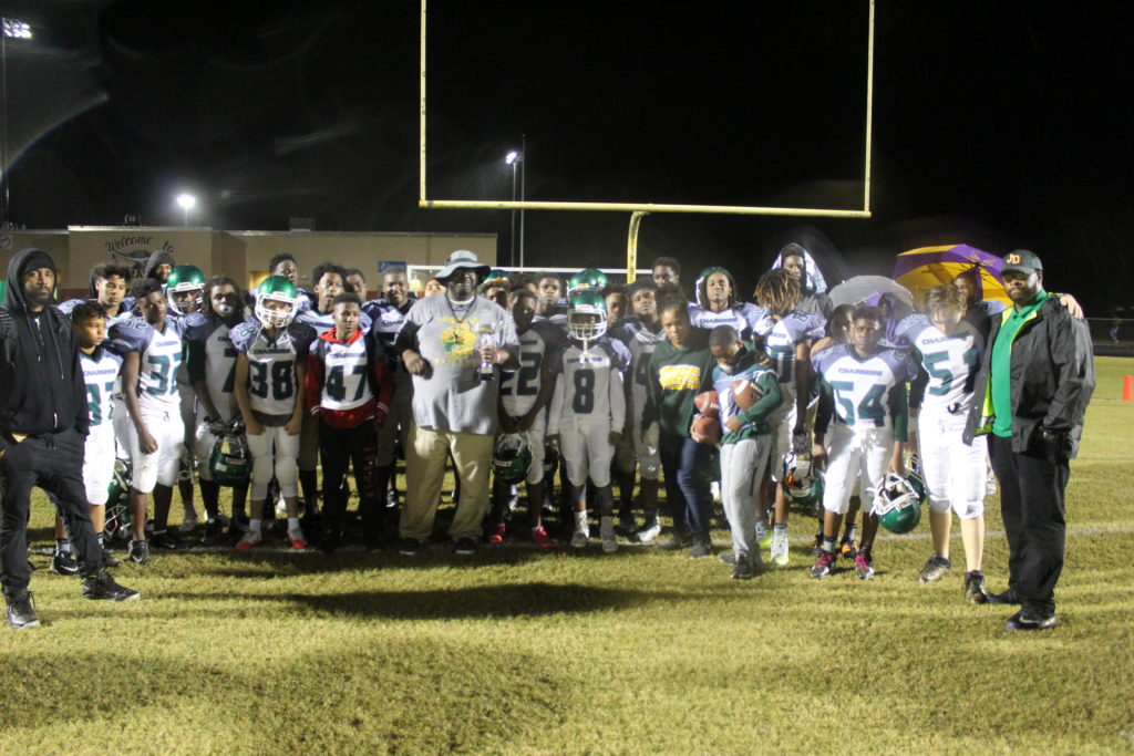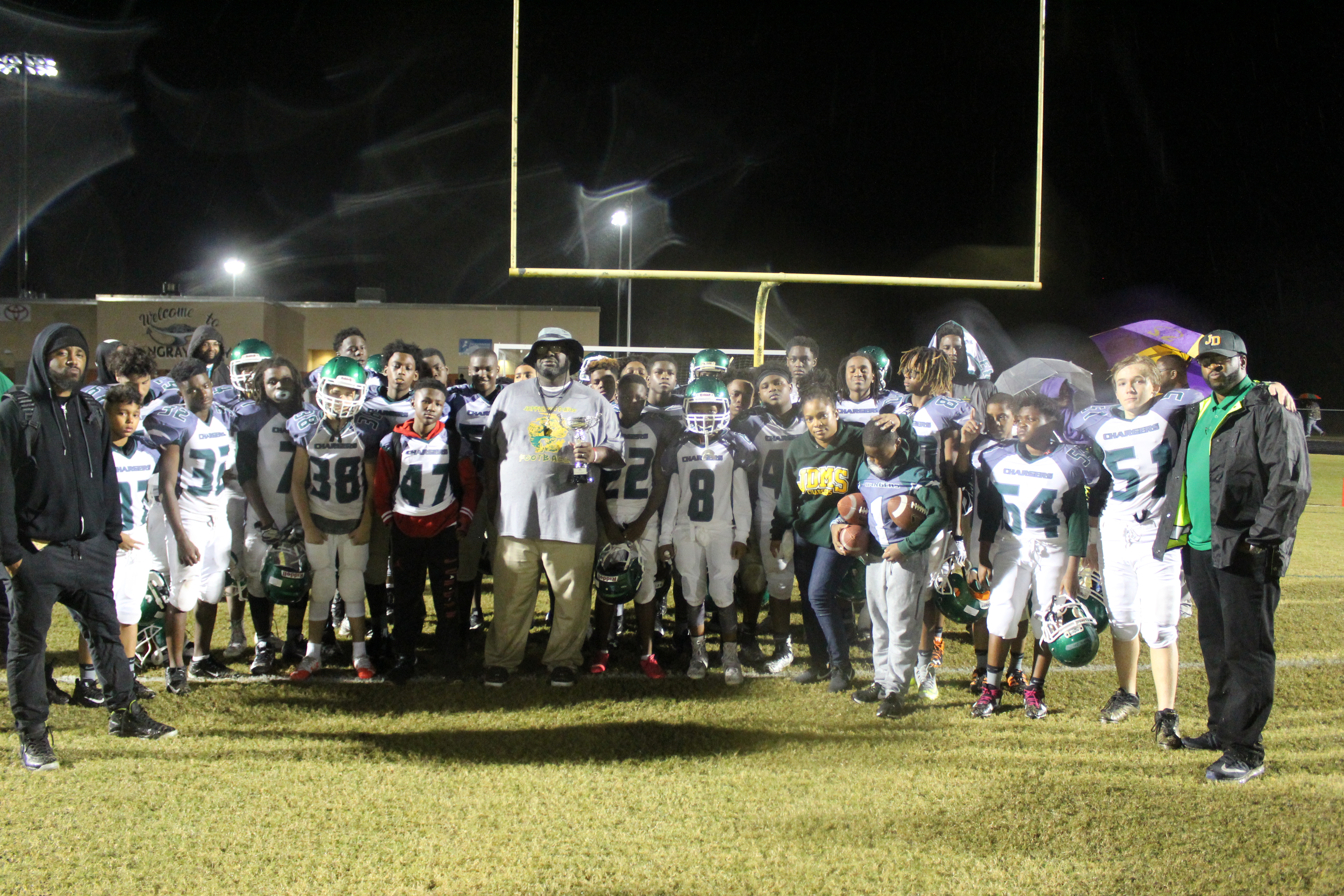 If Jeff Davis was unwavering on defense, Ribault can only be described as being unrelenting on defense in this game. With a minute left in the contest, and Jeff Davis having an opportunity to drive down the field to tie or win the game, the Colts applied massive pressure to stop Jeff Davis. #12 Jerome Manning blitzed up the middle, collapsing the pocket and leading the charge for the Colts to zap the chargers. On fourth down, Jeff Davis would fumble the snap in anticipation of the pressure and turn the ball over on downs. Ribault would erupt in celebration, knowing that they were just a few kneel downs away from winning their first title. Calhoun would kneel in victory formation to seal the victory as Ribault defeated Jeff Davis 6-0 to win the 2017 Duval County Middle School Football Championship.