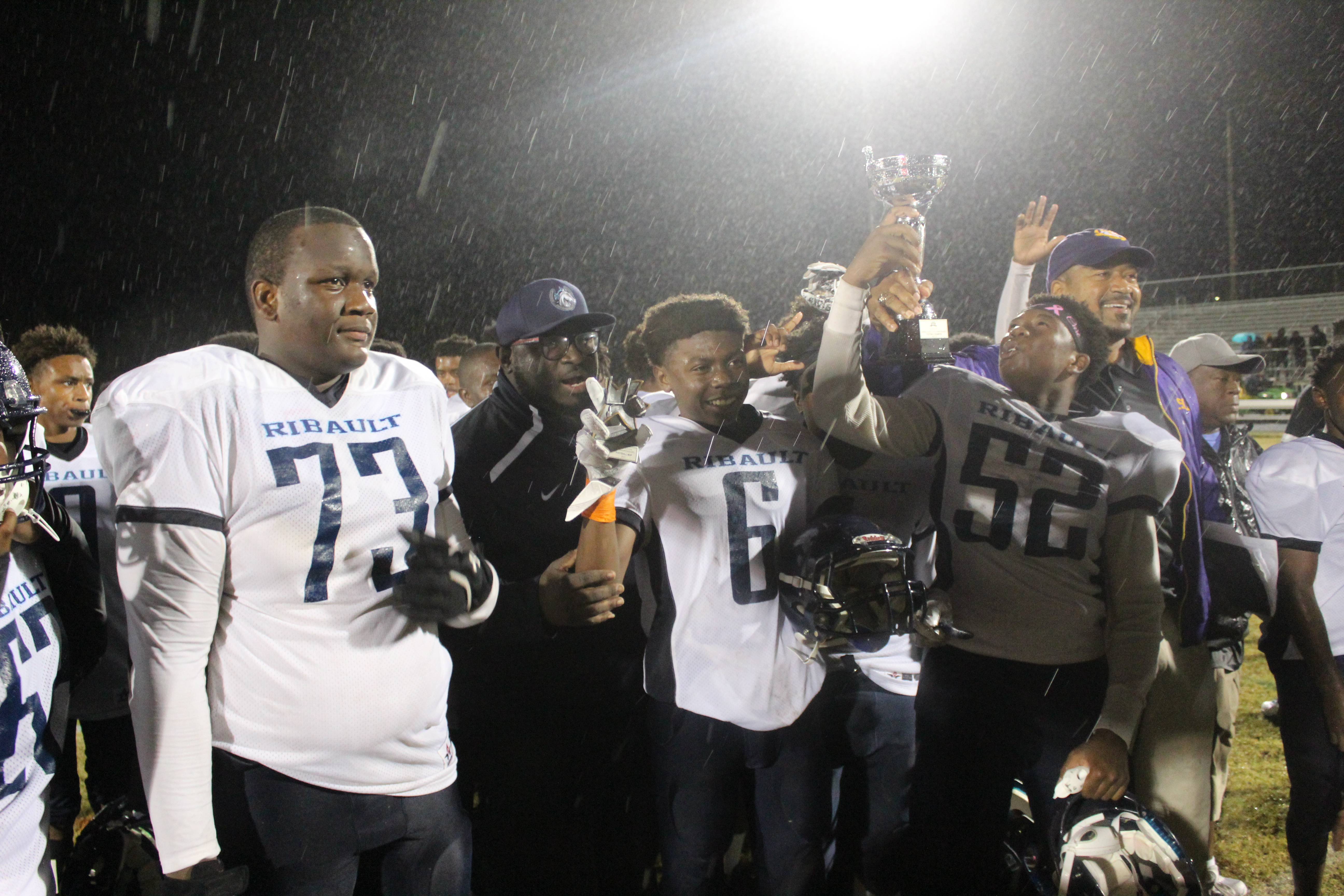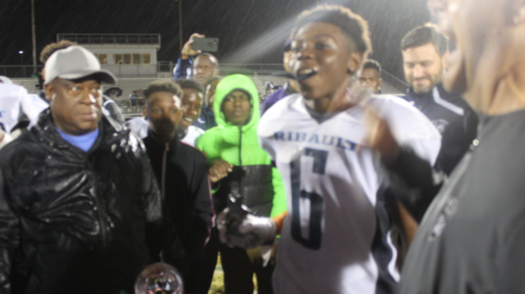 The game was physical, and filled with hard hitting and emotion. That emotion spilled over at the end of the game as Jeff Davis coaches refused to shake hands with Ribault coaches and players alleging that one of Ribault’s coaches spat in a Jeff Davis player’s face during the game. The accusation was unsubstantiated by the officials, and a hard fought championship contest between two great teams was slightly dampened by what seemed to be an emotional overreaction at the end of a heated contest. This epic battle, albeit emotional, featured some of the best athletes the area has to offer. Their efforts on the field, and hard work on the season should be commended, celebrated and respected. A simple hand shake would’ve ensured that. Nonetheless, Ribault and Coach Lawrence earned the respect of every team in the city. An undefeated season and a coveted city championship. The perfect cap to a great season .