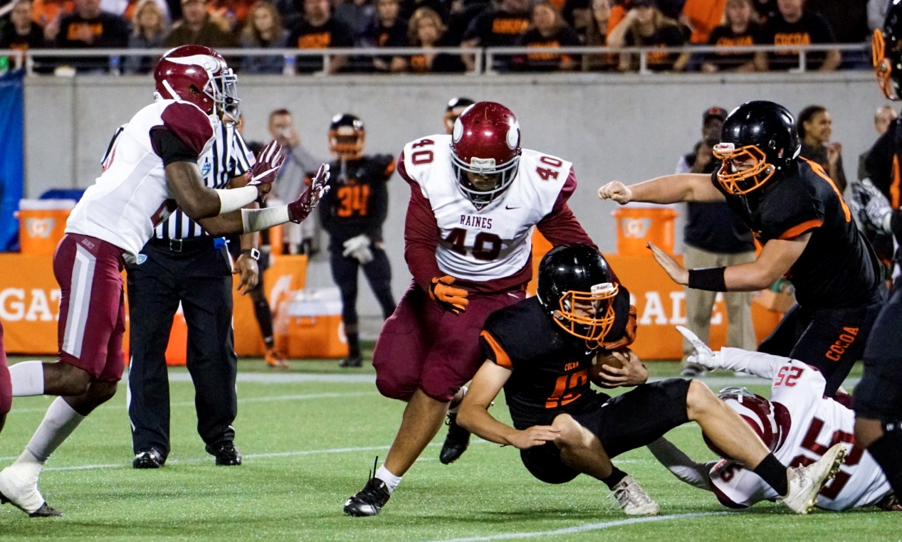 Cocoa came into the contest averaging 313 rushing yards a game. However they were unable to elude the quick and fast defensive front of Raines.