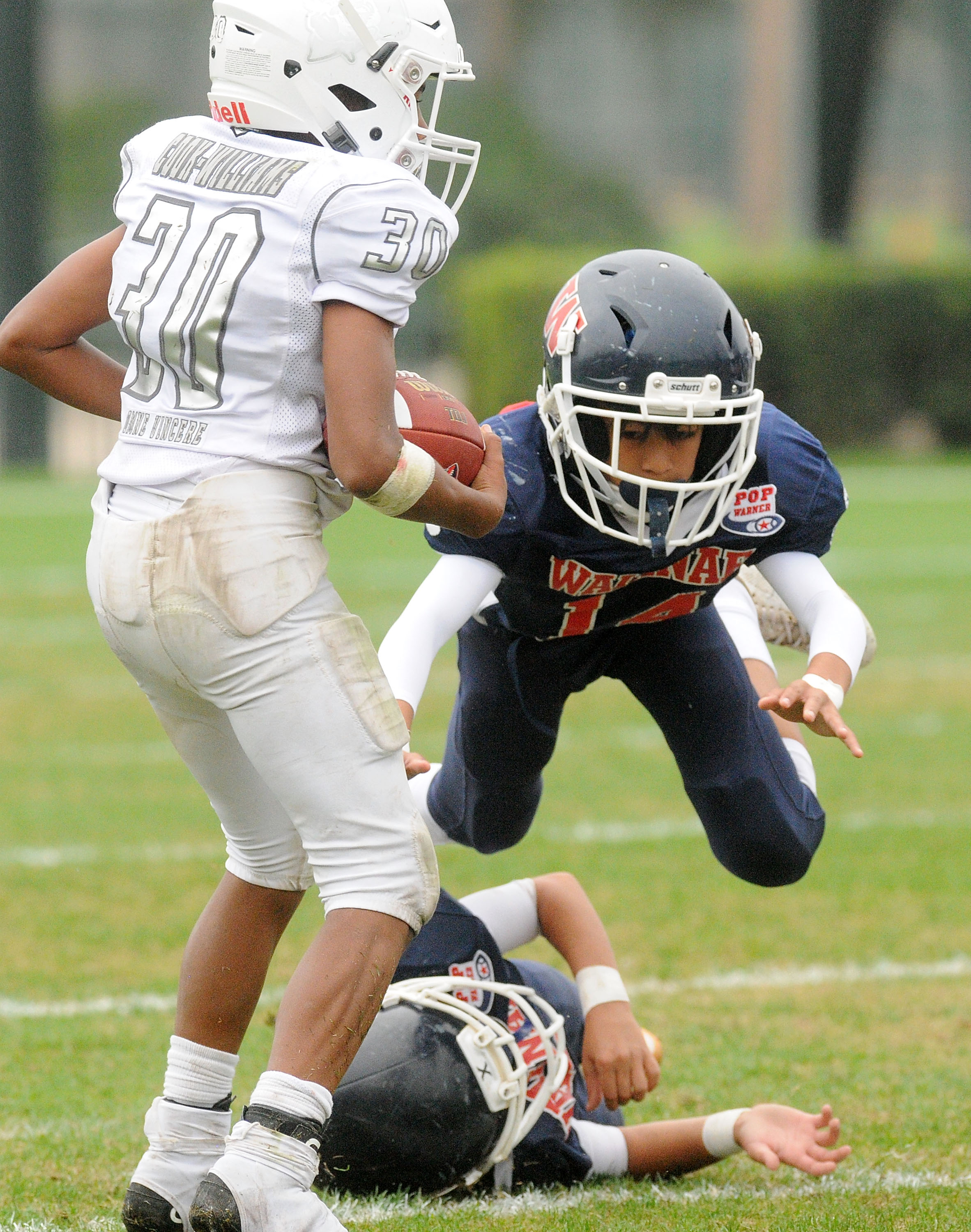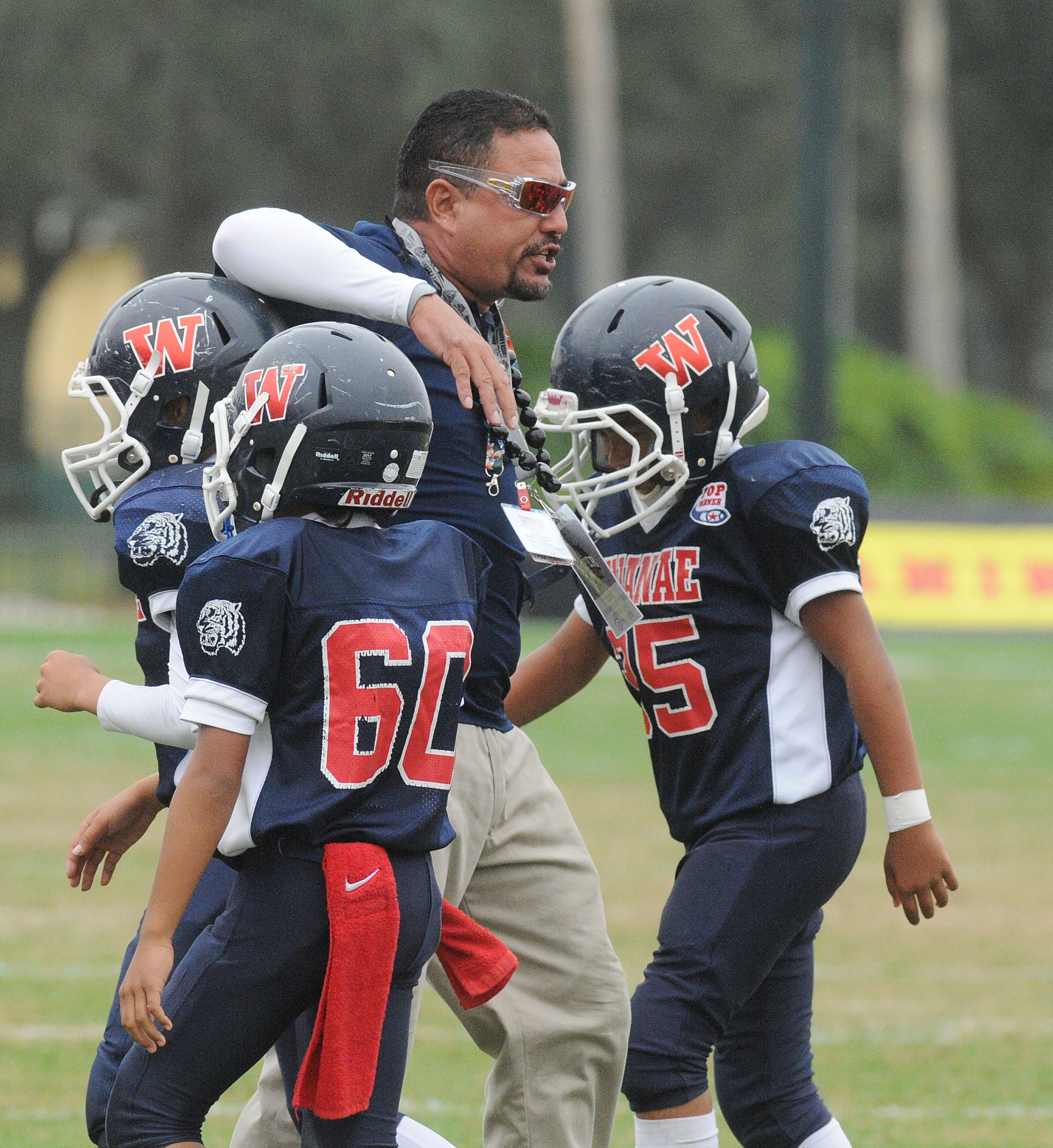 Creeks started the game as they have all year, going up first on the score board. Creeks made it 8-0 in the first quarter but Waianae took the mighty Creeks punch and countered with one of their own to tie the game going into halftime 8-8. It was a defensive contest once again for the outlaws, as they excelled in slowing down the high powered Waiana offense. The Tigers averaged 36.0 ppg in the Super Bowl playoffs, yet were held to just 16.0 ppg by the Outlaws. Waianae found it hard to make their usual game changing plays, as Creek’s bend but don’t break defense forced them to drive methodically down the field. The Tigers would do so by capitalizing on uncharacteristic Outlaw mistakes. Waianae would punch it in from the one yard line for the deciding score to win their the first ever Pop Warner Super Bowl for the state of Hawaii . Creeks falls just short of their goal of winning a super bowl, however they had a tremendous season nonetheless. Congratulations to Coach Owens and the Outlaws as the Super Bowl runners up in D2 Junior Pee Wee Pop Warner.