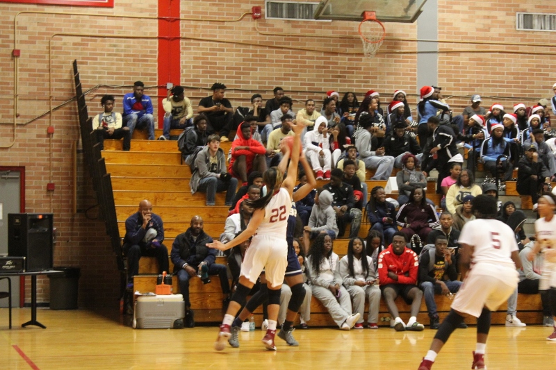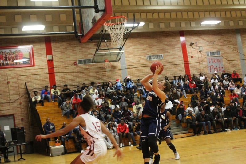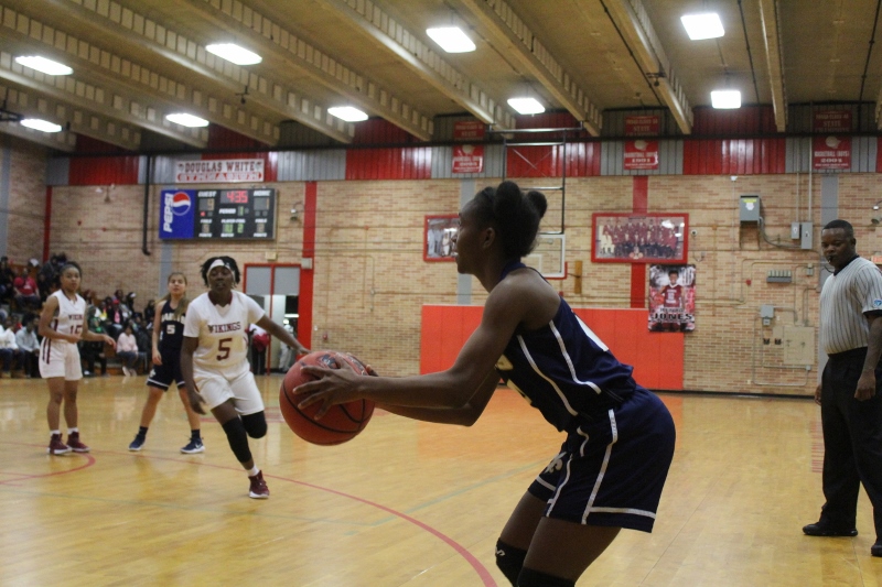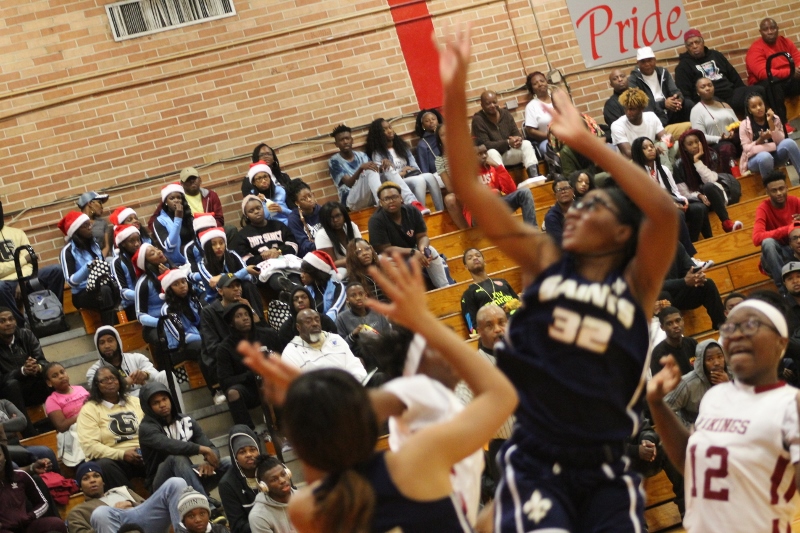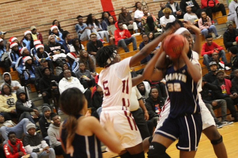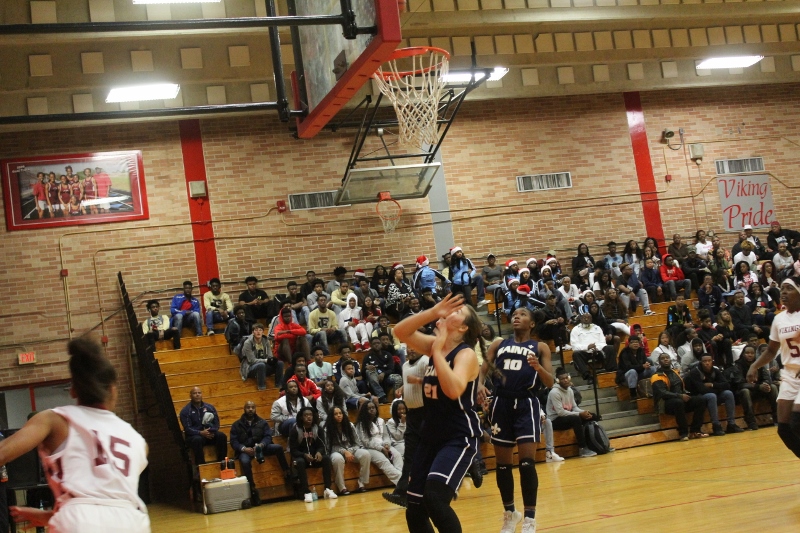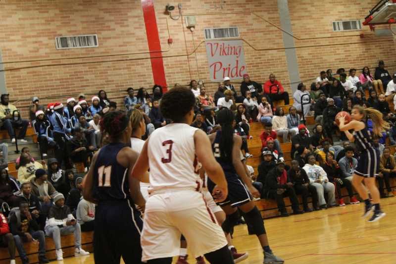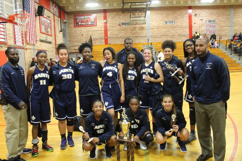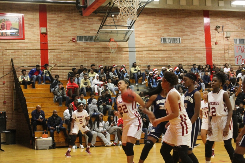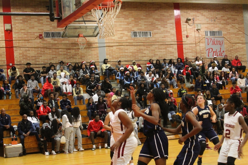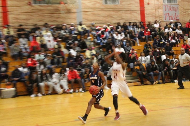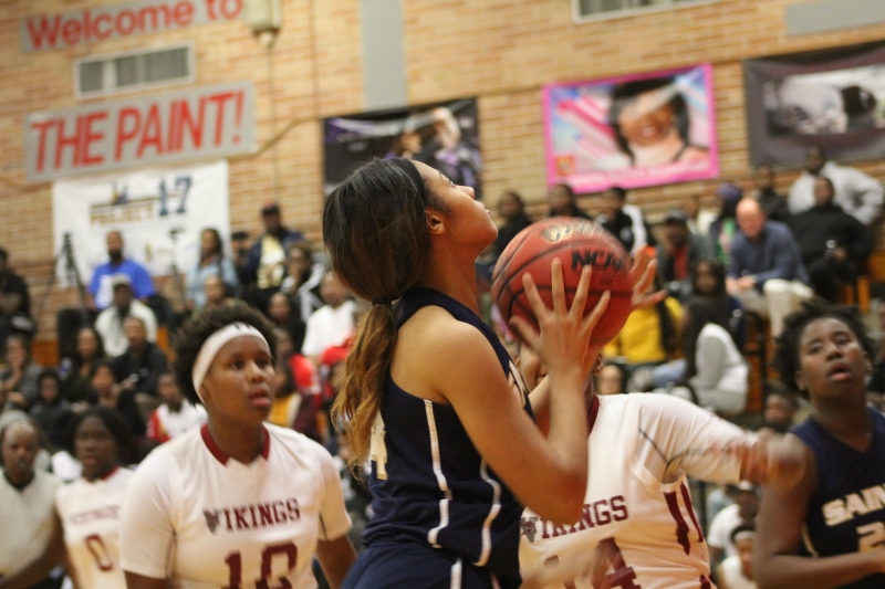 Raines HS– Sandalwood jumped out to a 5-0 lead in the Raines Christmas tournament and never looked back defeating the host Vikings 60 to 31 on Friday night. Sandalwood was led by Auriyah Stewart who had 17 points. Sandalwood had the decisive height advantage which played an important role in the game. The Saints were able to gain second chance points with offensive rebounds, and contest Vikings shots. Lauran Alvarez used her skills to score 13 points for the Saints. They moved the ball extremely well, finding open players to score the basketball. #5 Maria Torres pushed the ball up court and distributed the basketball effectively, while Stewart hit many open shots in the game.