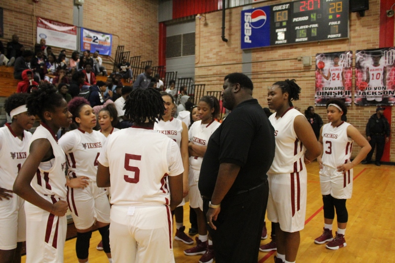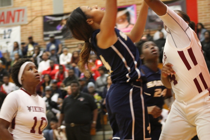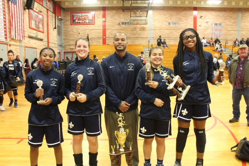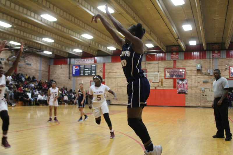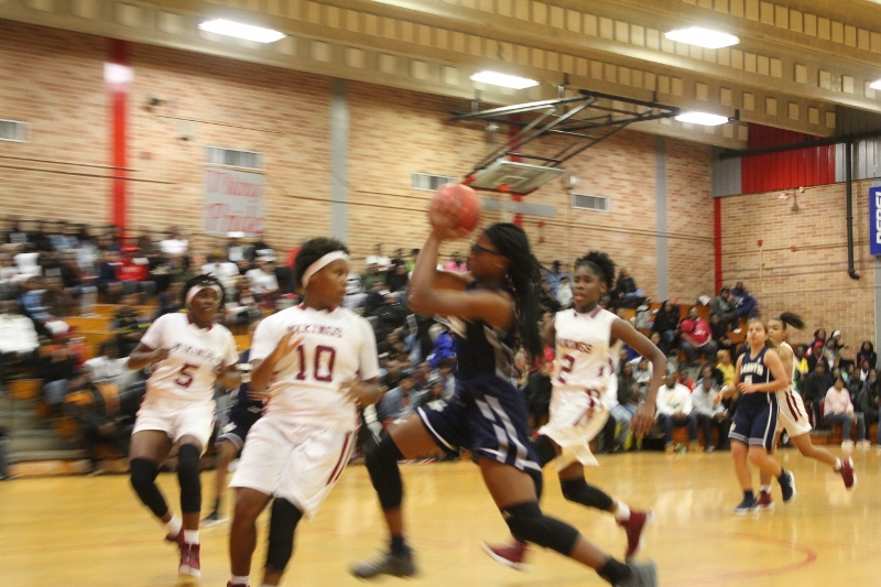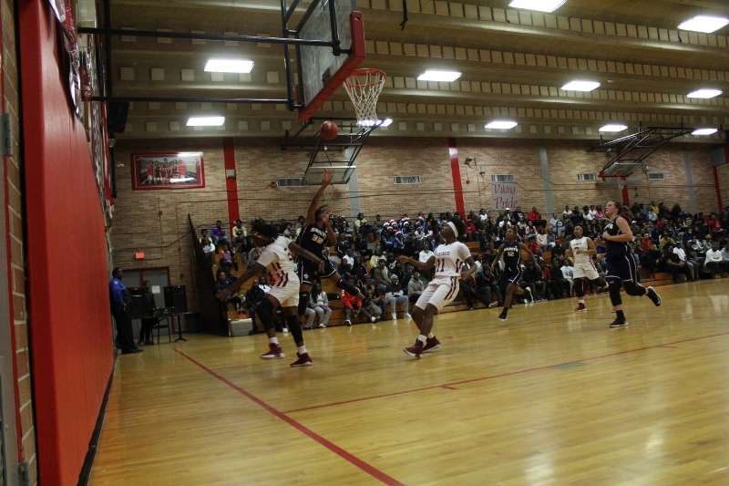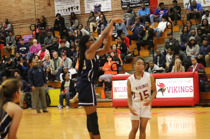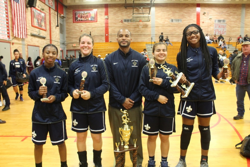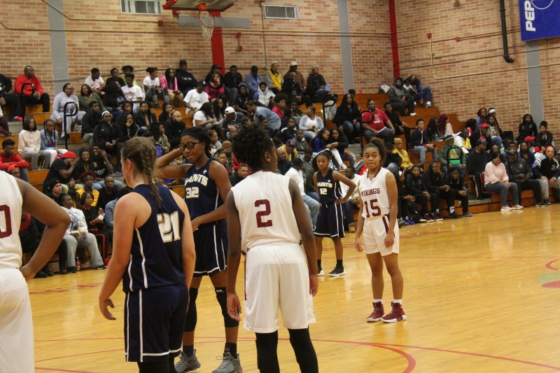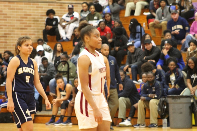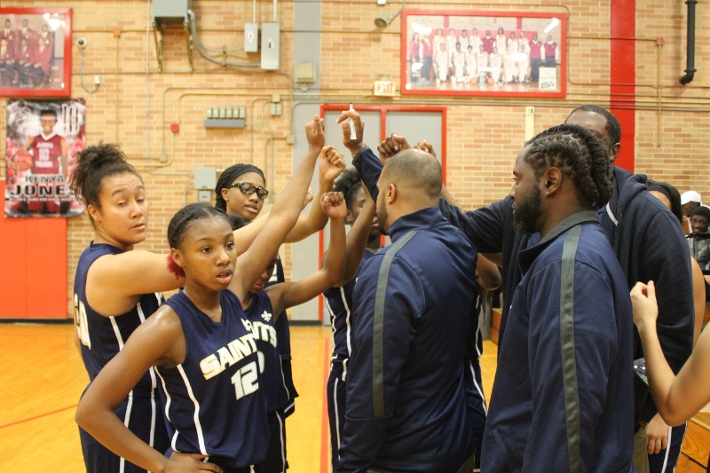 Raines HS– Sandalwood jumped out to a 5-0 lead in the Raines Christmas tournament and never looked back defeating the host Vikings 60 to 31 on Friday night. Sandalwood was led by Auriyah Stewart who had 17 points. Sandalwood had the decisive height advantage which played an important role in the game. The Saints were able to gain second chance points with offensive rebounds, and contest Vikings shots. Lauran Alvarez used her skills to score 13 points for the Saints. They moved the ball extremely well, finding open players to score the basketball. #5 Maria Torres pushed the ball up court and distributed the basketball effectively, while Stewart hit many open shots in the game.