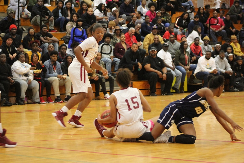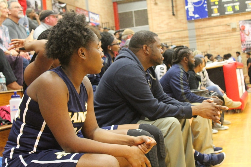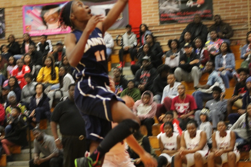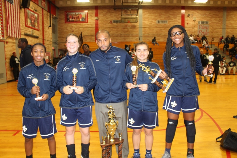 The Saints capitalized on careless passes by Raines as Stewart made them pay, knocking down big shots from the perimeter. Her effort helped push a third quarter lead to 31 points. #32 Caitlin McGee showed her incredible versatility as a center in the game by dominating the boards, controlling the paint, and even stealing the ball on fast breaks. A third quarter steal by McGee (6’1) saw her take it all the way to the hole with incredible speed, outracing Raines standout guard #15 Nyla Allen for the lay up. McGee (Landmark) and Allen(Highlands) met in the Duval County middle school championship game two years ago, and showed in this tournament why they are two of the best players in the area even as sophomores. Raines is not short on young talent and will be a force to be reckoned with in the years to come. However this year the force is strong with Sandalwood as they improved to 13-0 on the season.