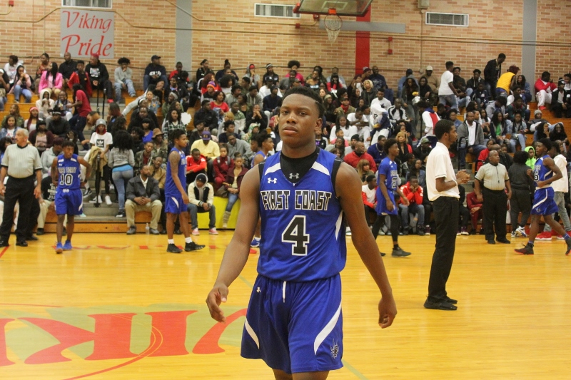 Raines HS- First Coast erased an early 7-0 deficit to take the lead and the championship game against Ribault, winning the annual Northwest Classic Tournament 59-53. First Coast was led by #4 Naseem Khaalid’s 16 points and #1 Jalen Shuman’s 12 points as they were able to knock down their open looks to the basket. Ribault’s Devon Matthews hit a big three pointer to pull the Trojans to within six points with less than a minute remaining, but First Coast played keep away effectively forcing Ribault to foul. First Coast then knocked down their free throws to put the game away.