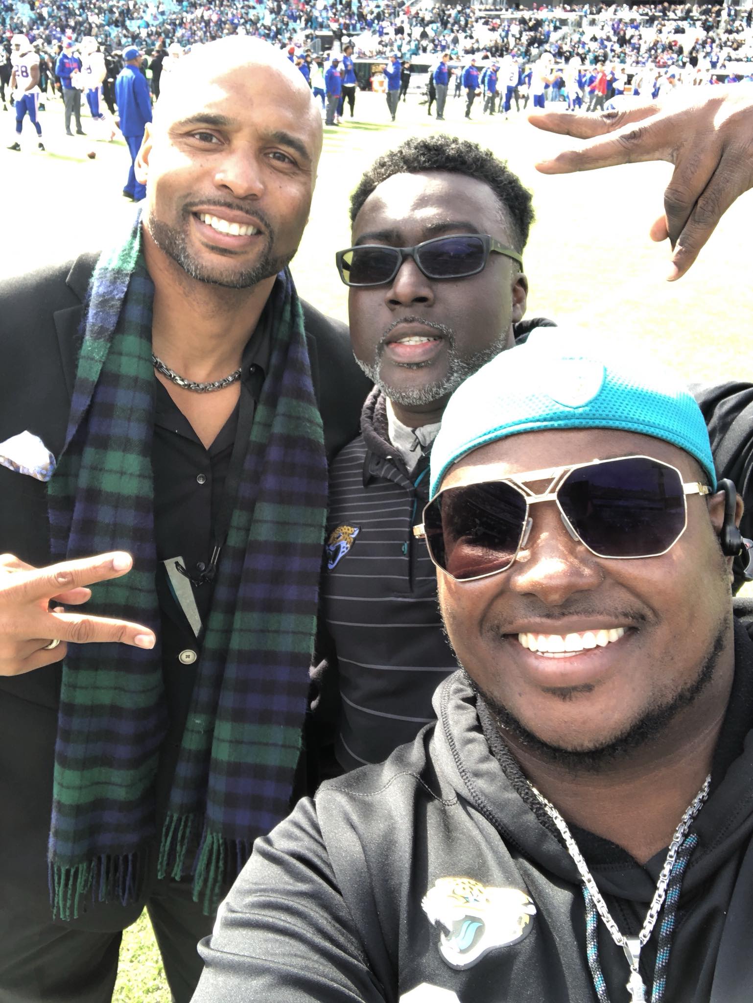 Jacksonville Fl– Coach Rickie Simon Jr and Coach Tim Terry, two youth football coaches in Jacksonville were awarded two incredible gifts Sunday at the Jacksonville Jaguars home playoff game. Before the wild-card game which the Jaguars defeated the Buffao Bills 10-3, NFL Commissioner Roger Goodell, Jacksonville Jaguars Owner Shahid Khan along with long time Jacksonville Jaguar Donovan Darius presented two Super Bowl LII tickets to Simon and Terry in appreciation for their hard work and dedication with youth football in the area.