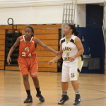 The Mustangs and Buccaneers traded baskets for most of the first half as Mandarin led 18-12. Both teams showed tremendous hustle and intensity stemming from their head coaches. This style kept First Coast close for most of the first half, as #3 Jazmyn Robinson led her team with 9pts. But careless turnovers by the Bucs made way for Mandarin to take advantage. #10 Totiyana Rock’s infused her team with 9 first half points. And in the second half the Mustangs pulled away as # 24 Jainmee Morgan added to her 12 first half points with lights out shooting. With the win, Mandarin advances to the next round to face Ribault at Wolfson on Wednesday.