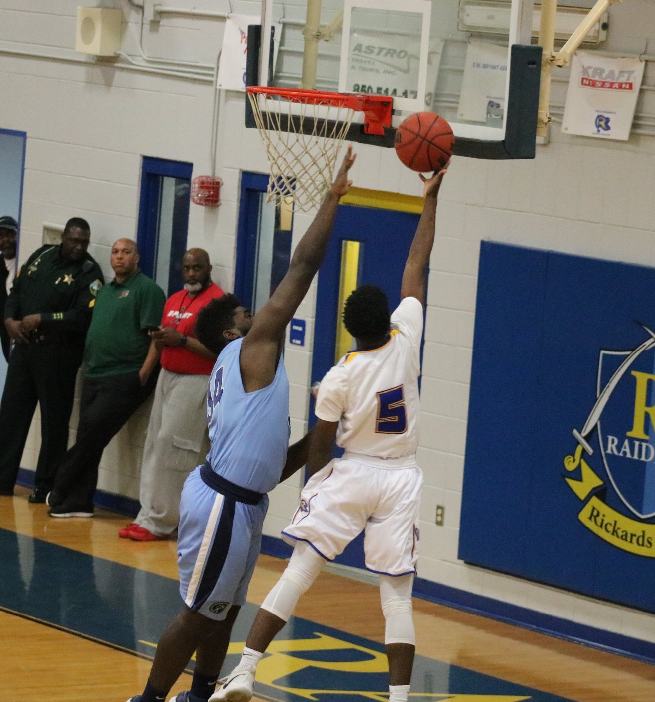 He and McCray were instrumental in the offense for Rickards, however the difference in the game was the defense that the Raiders played. Rickards out scored Ribault 17-13 in the second period and 16-10 in the third. #10 Tri’Mel Charleton (Sr) scored on fast break points and added some big shots to score 12 points in the game for Rickards. The big man Malik Darisaw (Jr) scored 6 points and defended the rim effectively along with power forward Alec Troutman(Jr). Troutman scored 5 points but added 5 blocks in the contest. Said Head Coaach Eli Bryant of Troutman “People give my boy a hard time, but he’s just 16 years old, he’s just a junior and he is getting better every game.”