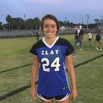 ARLINGTON – Quarterback #13 Ciara Zino threw a touchdown pass and ran for another, leading her Clay Blue Devils to a 21-0 victory over Terry Parker (10-2) in the FHSAA Class 1A Regional Semifinals. Zino was spectacular, dissecting the heralded Braves defense with completion after completion. She would hook up with five different receivers in the game, showing both her accuracy with short throws and strength with deep throws.