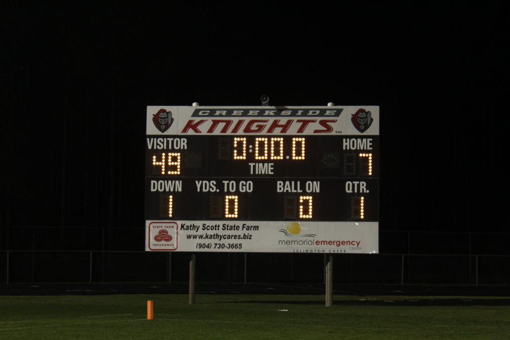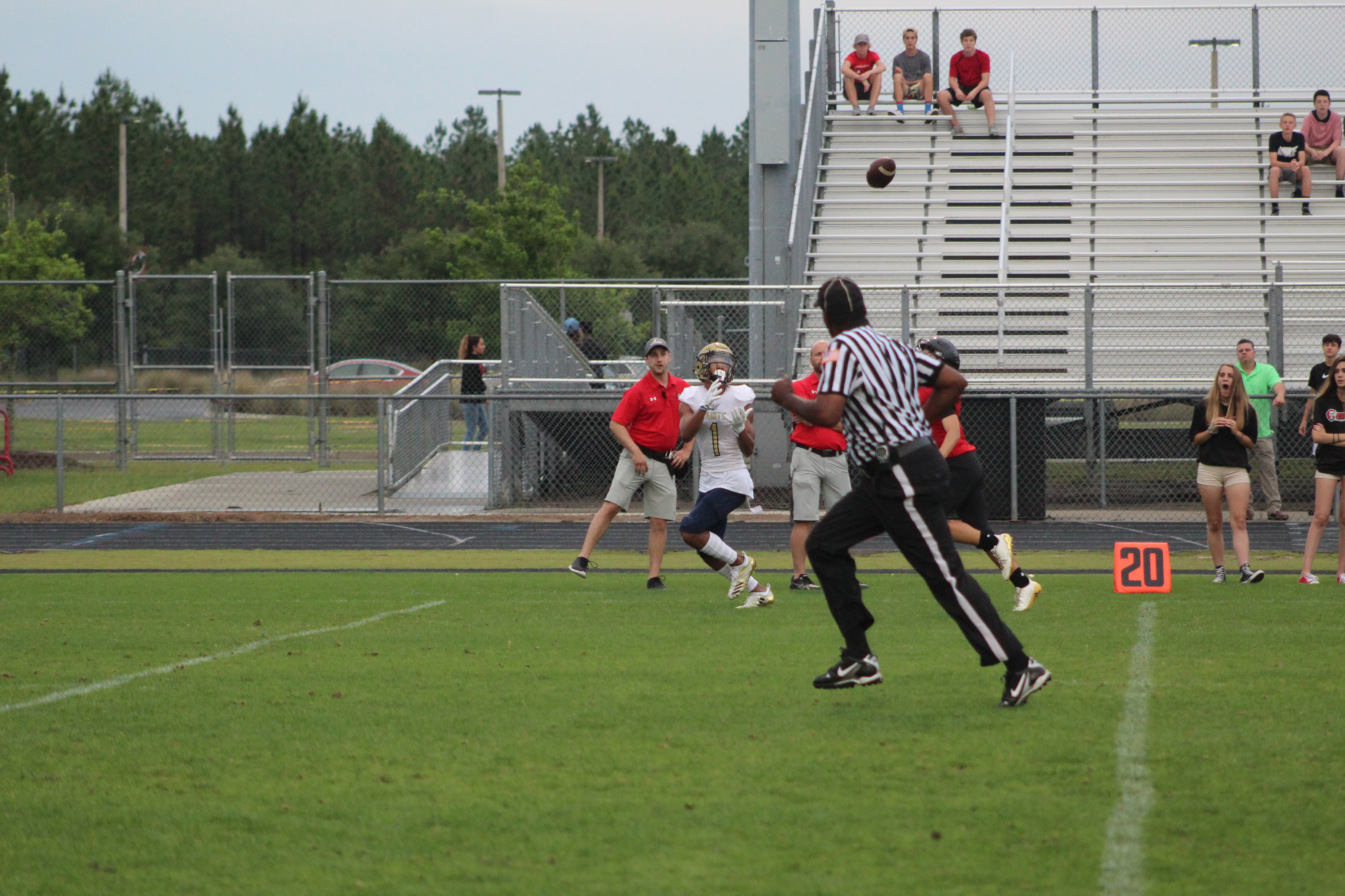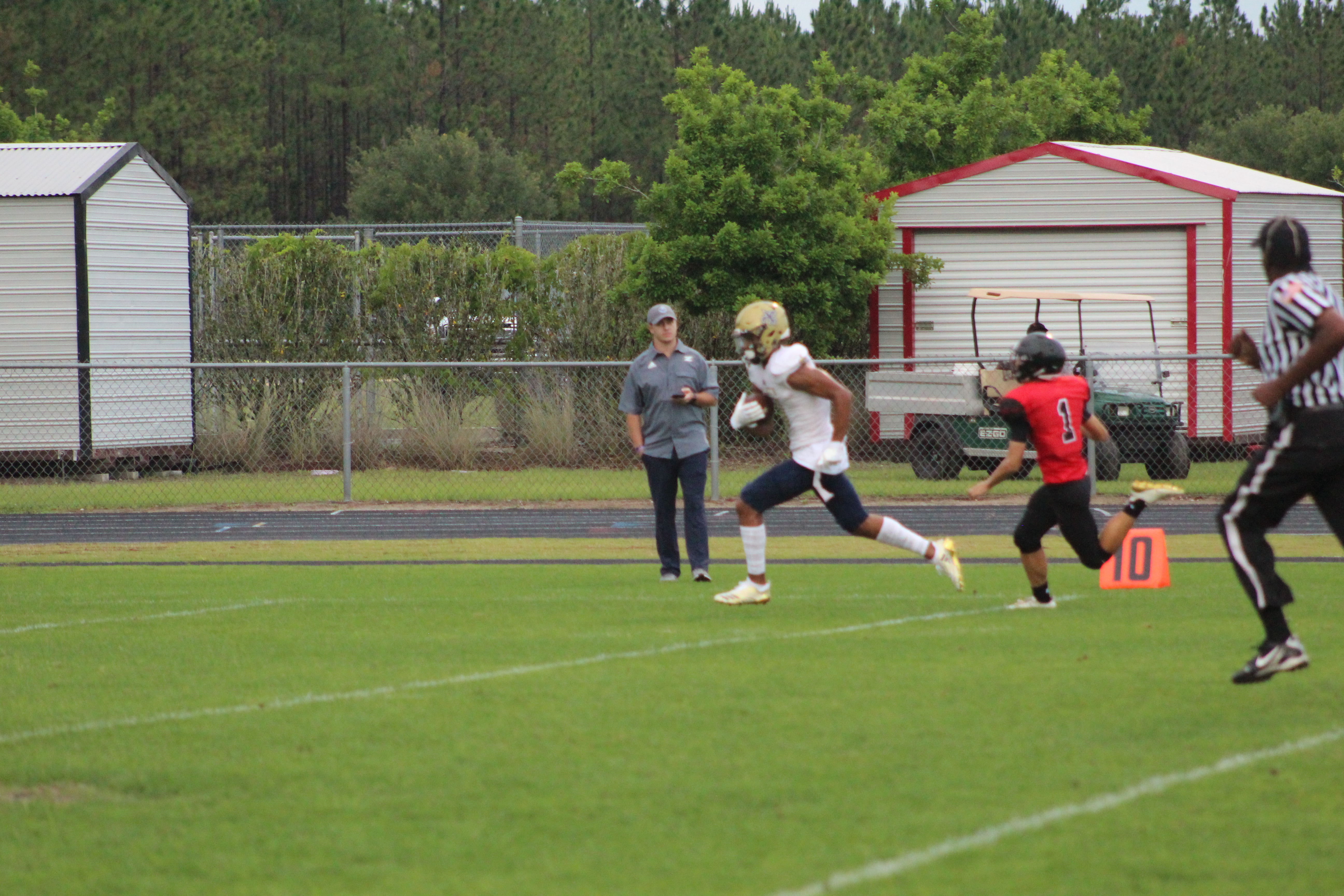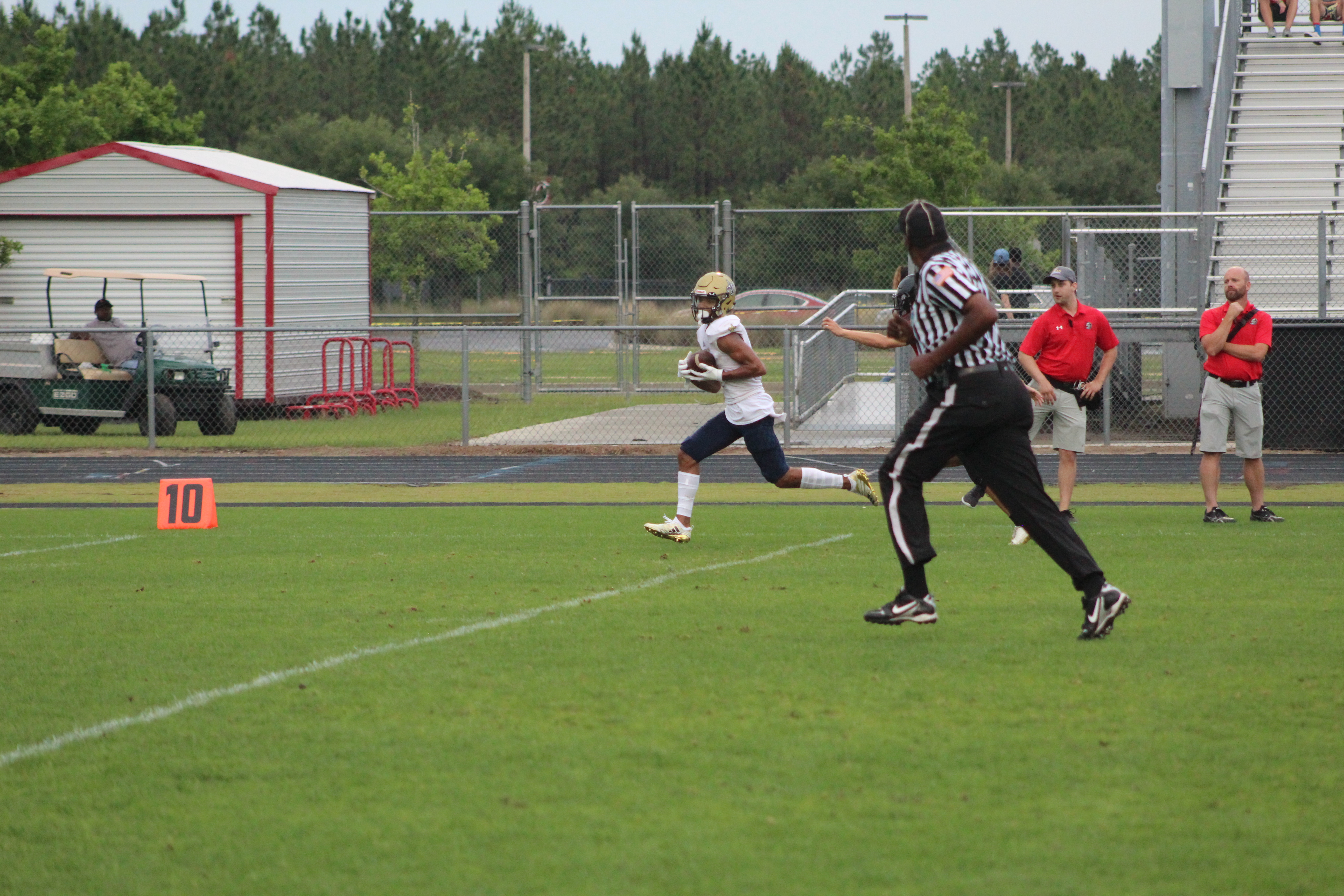 James was able to find an open zone for his quarterback to exploit as Sims rolled to his right throwing a high arching pass on the money for his fourth touchdown of the first half. Yet he was not done, as Sims found his big play receiver Kaloeb Parker again, but this time it was for a long touchdown ballooning the lead to 42-7 . Parker redeemed himself from the first play of the game where he was caught from behind before scoring. Sims impressively tossed six touchdowns against Creekside. Five of them in the first half, where he put his team up big and putting Creekside on a running clock.
