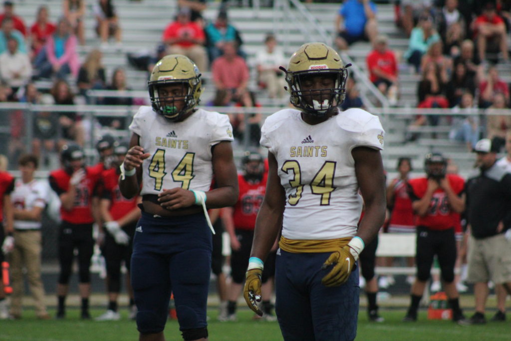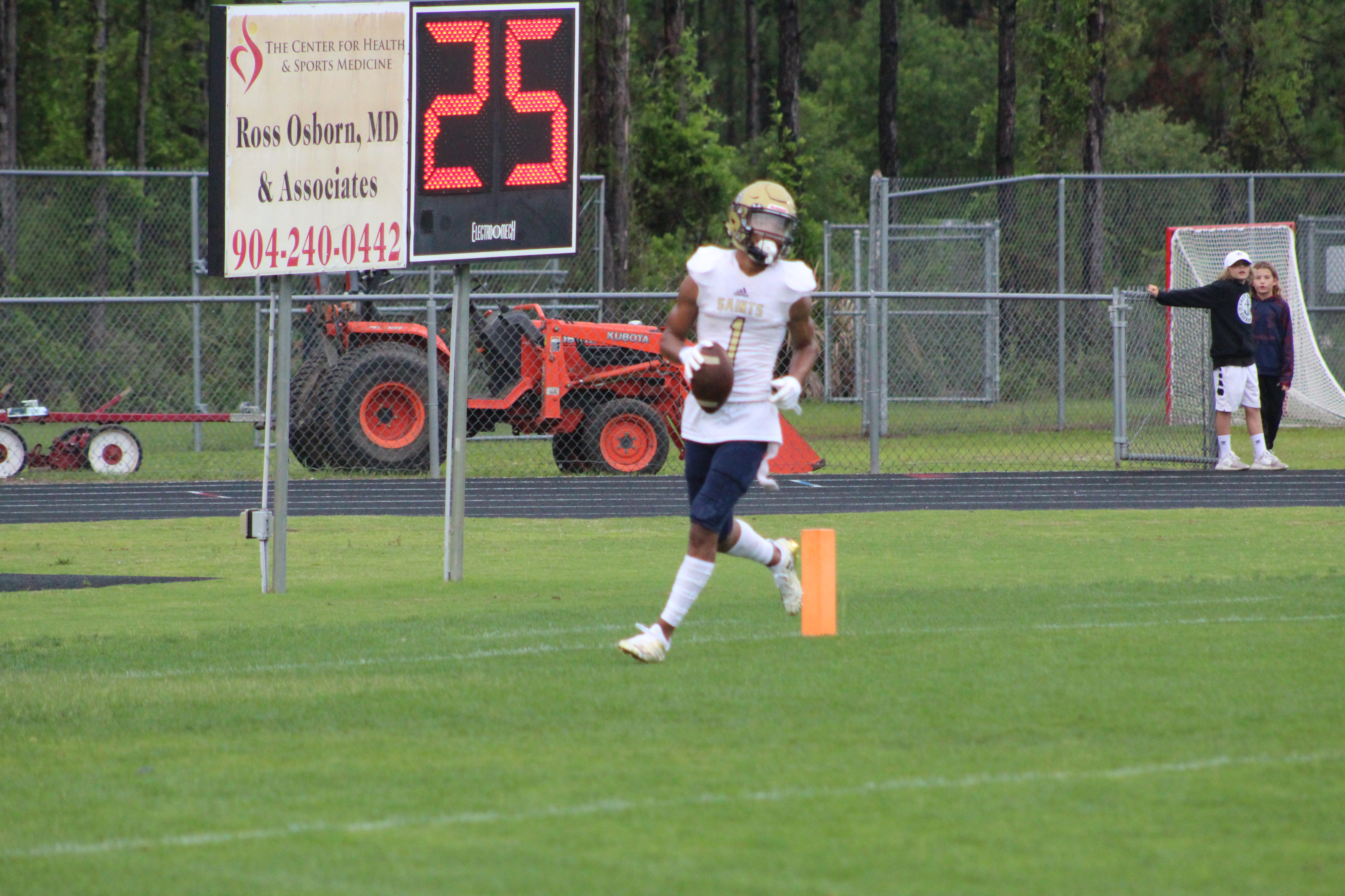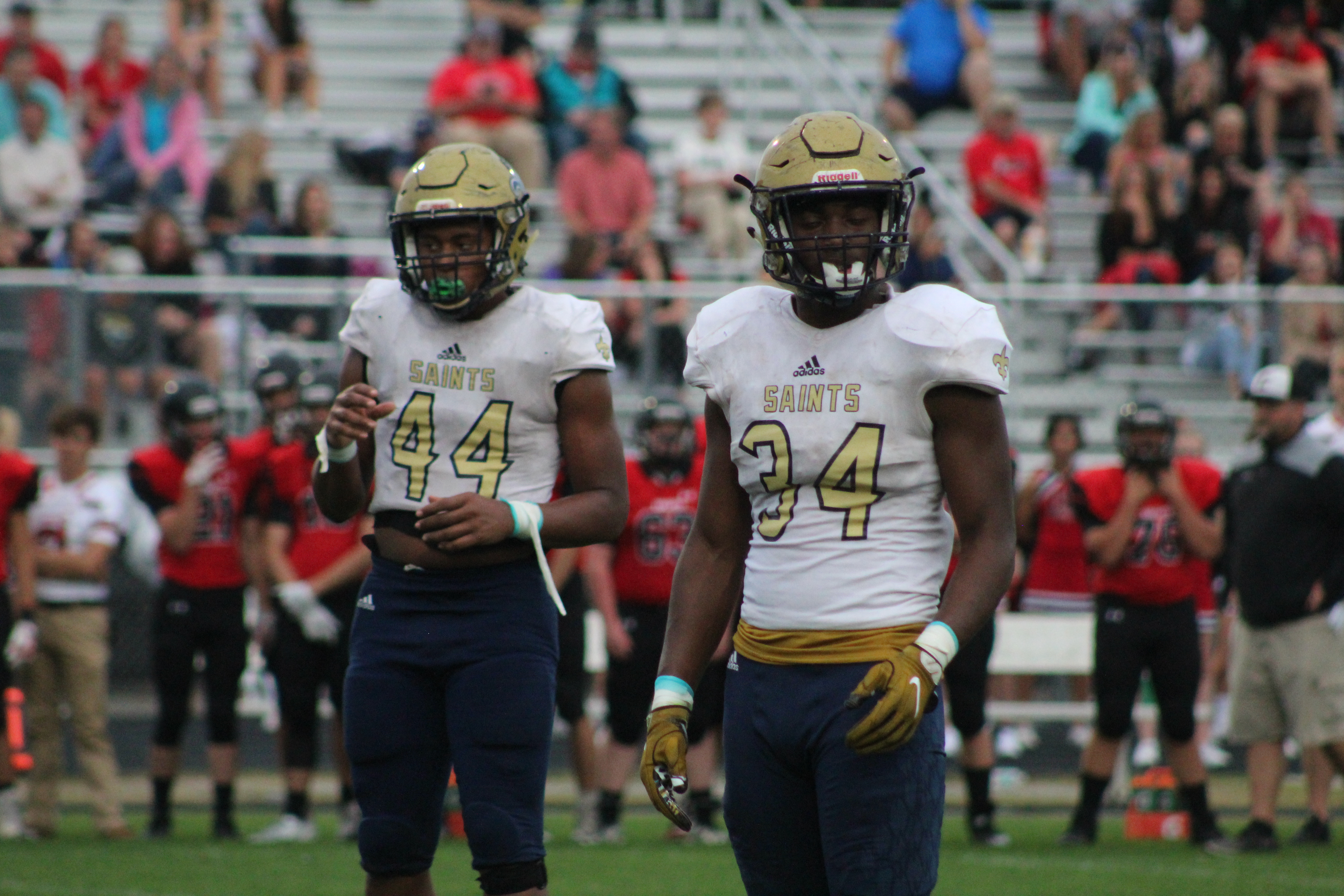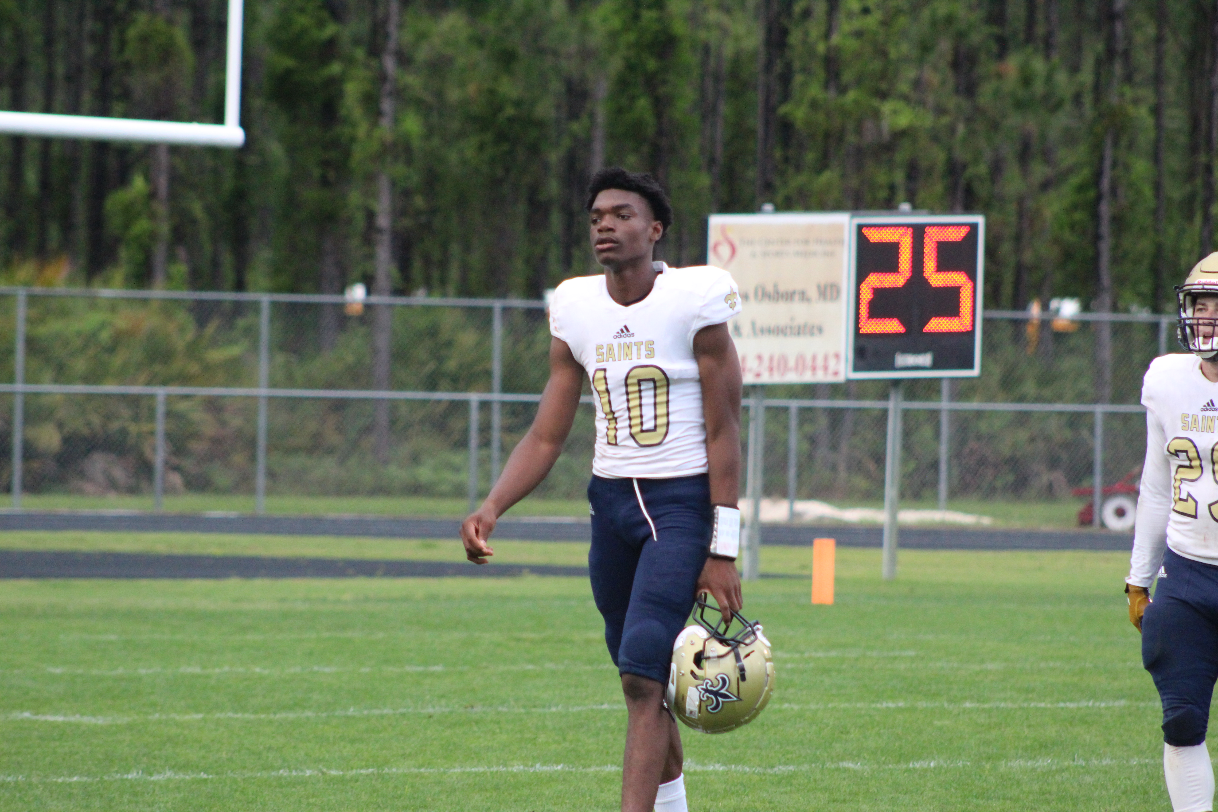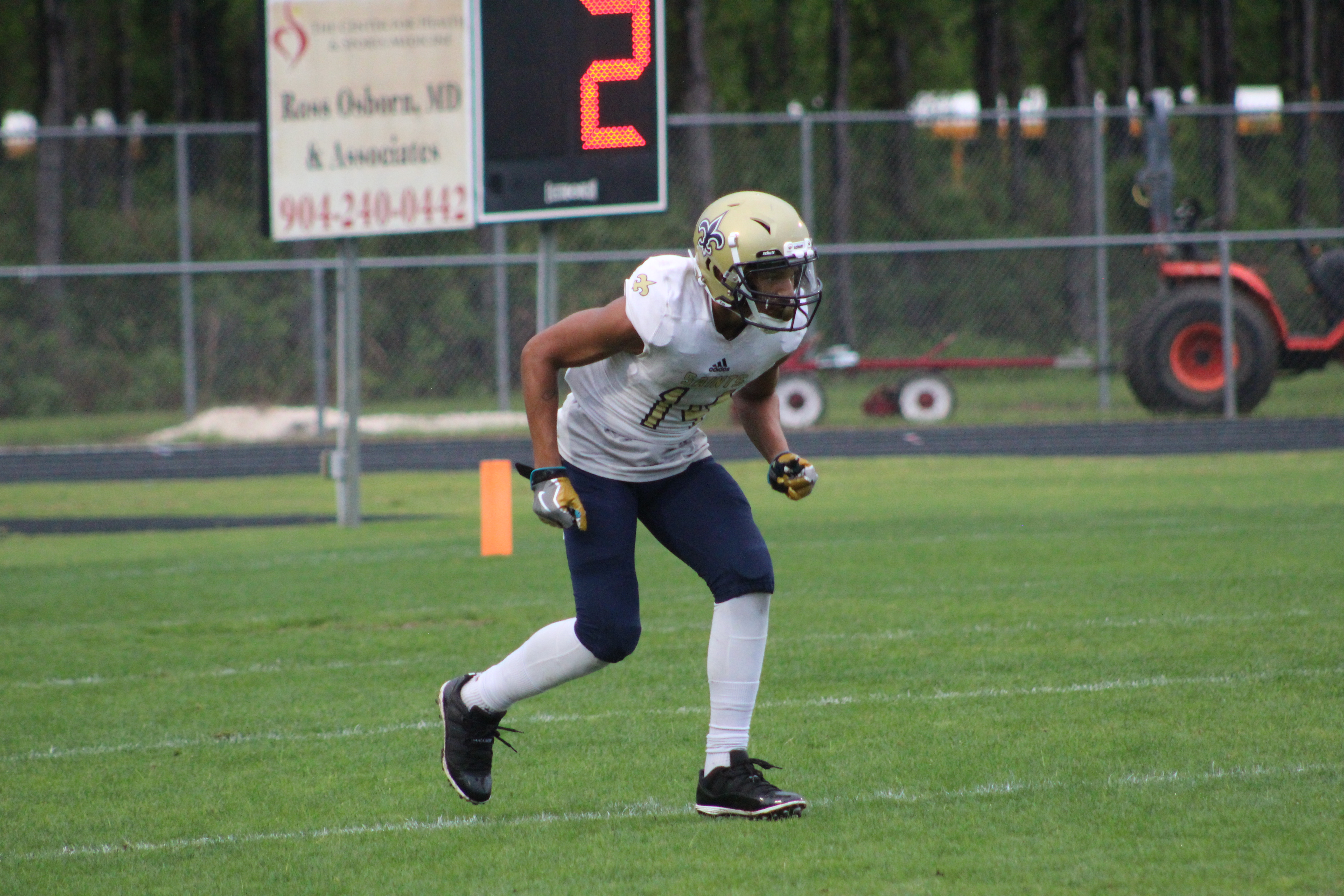 Some of the players that made big impacts for Sandalwood were senior running back Jared Geis, who scored the first touchdown of the game less than two minutes into the contest. Geis displayed quickness and swiftness in the game that the Saints will utilize this year. The touchdown by Geis was set up by a catch and run by Kaloeb Parker. The 6’4 , 210 lb wide receiver caught pass and took it 65 yards deep in to Creelside’s redzone. Two plays later Geis would run it in for the score to put the Saints up 7-0. Parker showed his ability to use his large frame to create a wide radius for Quarterback Jeff Sims to hit. Sims showed early on that this tandem could be something special this fall.
