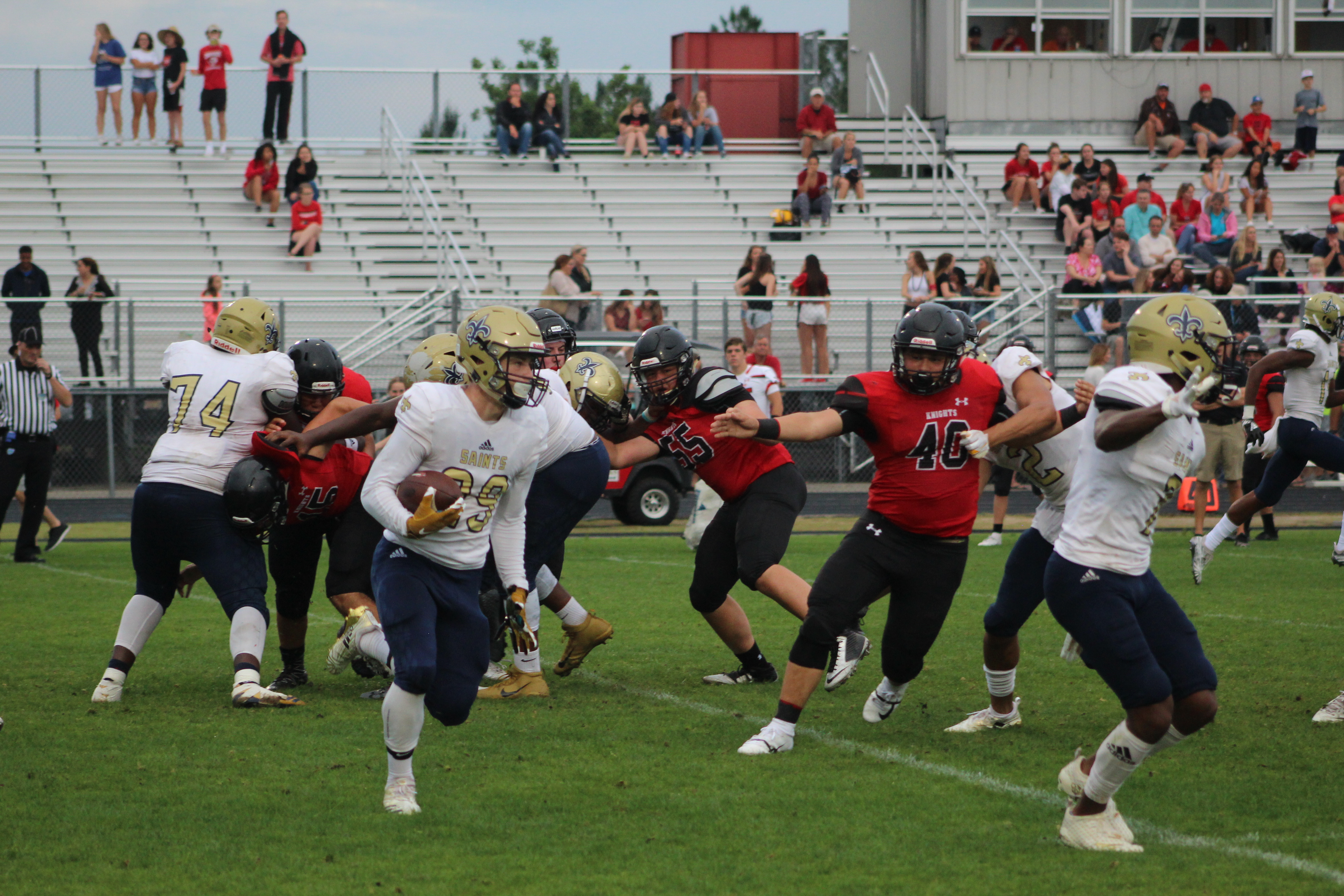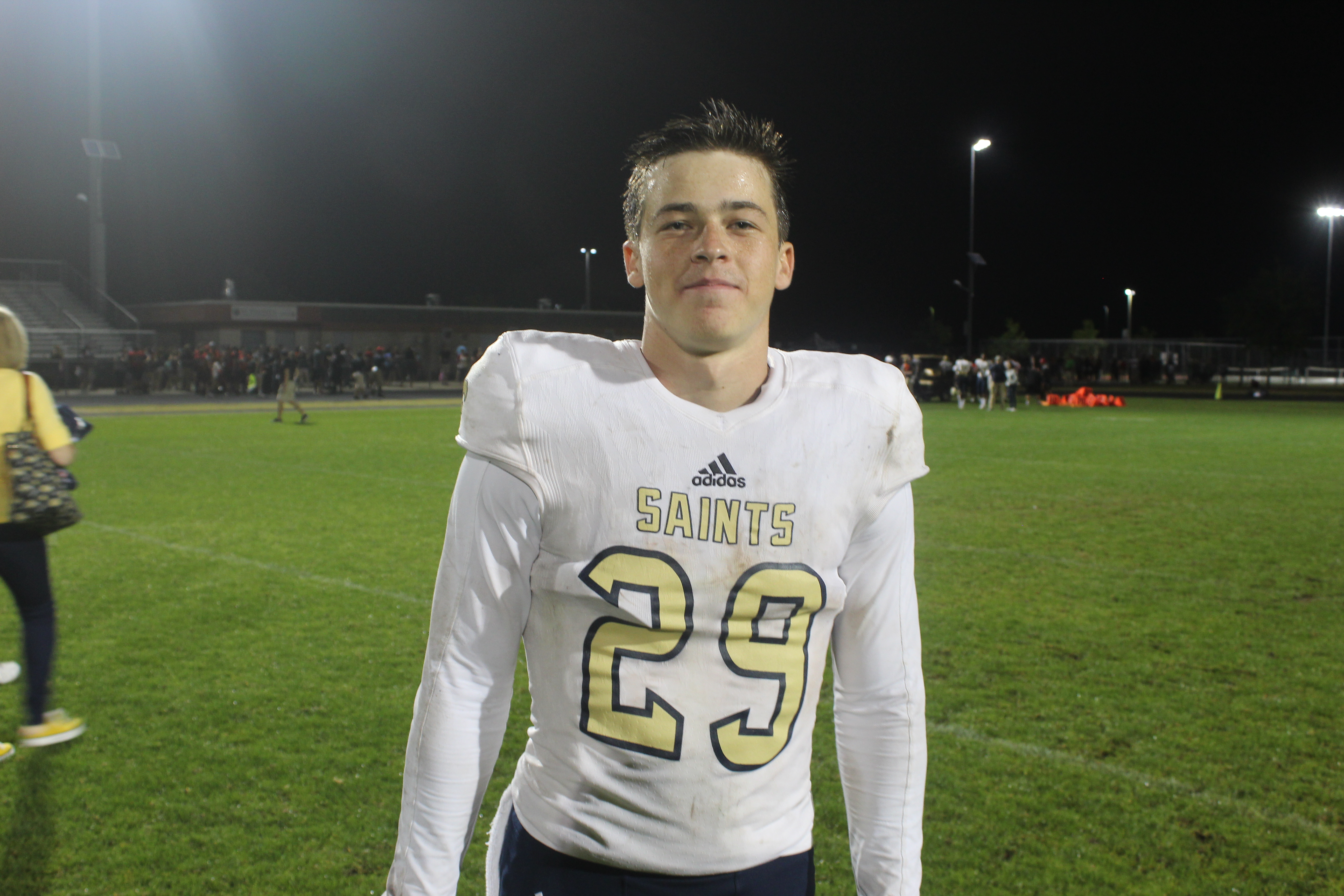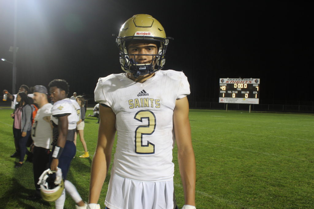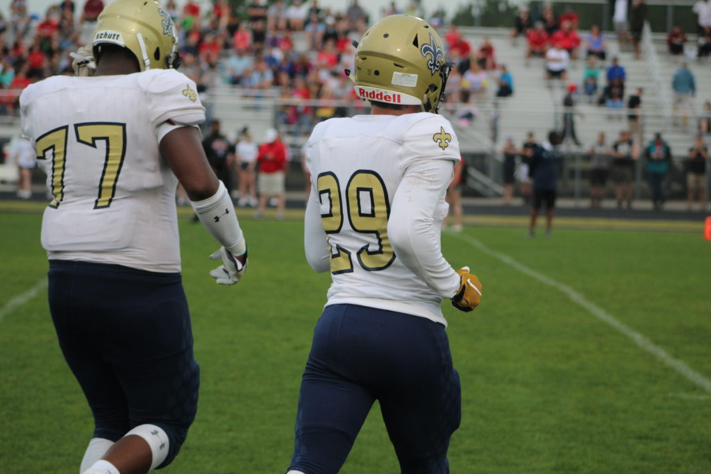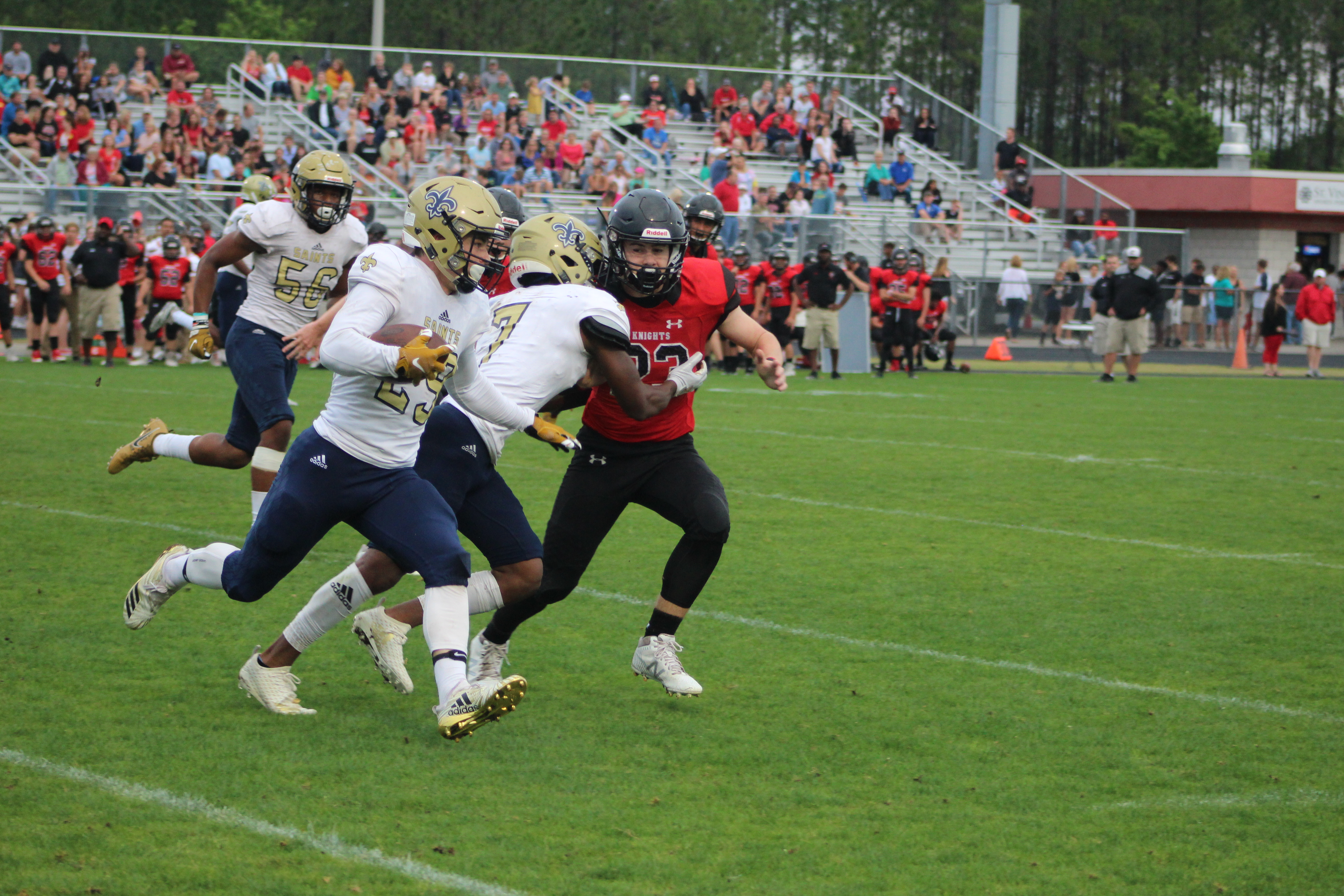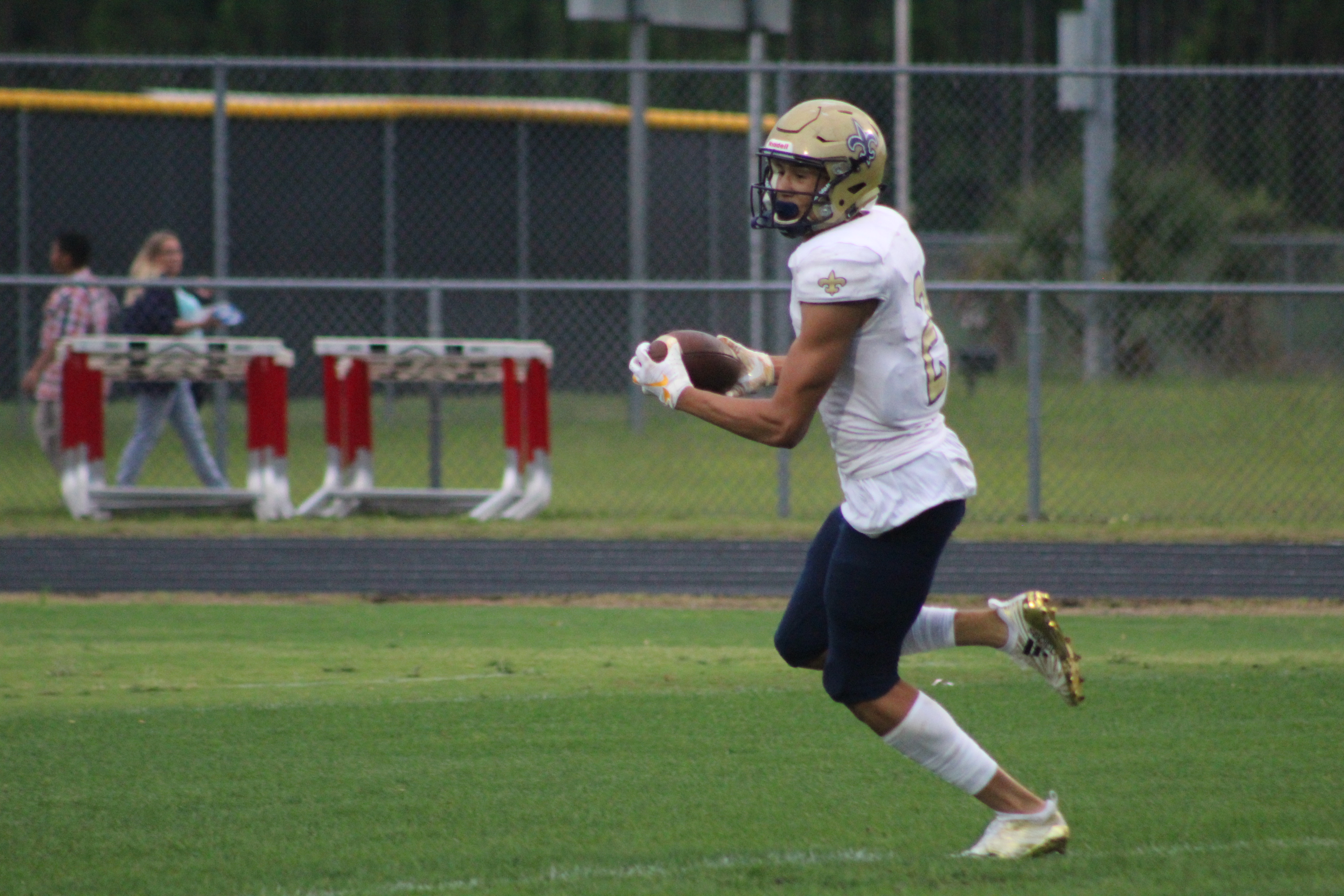 Some of the players that made big impacts for Sandalwood were senior running back Jared Geis, who scored the first touchdown of the game less than two minutes into the contest. Geis displayed quickness and swiftness in the game that the Saints will utilize this year. The touchdown by Geis was set up by a catch and run by Kaloeb Parker. The 6’4 , 210 lb wide receiver caught pass and took it 65 yards deep in to Creelside’s redzone. Two plays later Geis would run it in for the score to put the Saints up 7-0. Parker showed his ability to use his large frame to create a wide radius for Quarterback Jeff Sims to hit. Sims showed early on that this tandem could be something special this fall.