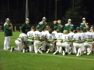 With one swing of the bat, on Lanoux’s 106 pitch of the game, Derek Barone changed that, Barone lined a 2 RBI double over the head of center fielder Drew Wilkerson allowing visiting Strawberry Crest to stun host Fleming Island 2-0 in nine innings to advance to the Class 7A Final Four.
