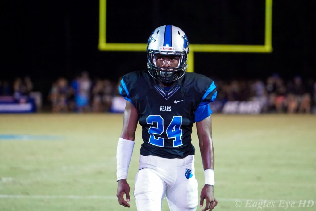 Missed opportunites by Bartram would plauge the Bears on the night. After driving to the Apopka 25 yard line on the ensuing drive, the Bears would fail to convert a 4th and 5, giving the ball back to the Blue Darters. Apopka would make them pay as the law-firm of Hamilton, Brown, and Wright would get first downs running the ball. With the ball on the 7 yard line, #88 Jalen Carter would score with a 7 yard rushing TD. Apopka increased their lead over Bartram Trail 26-14. Carter showed the versatility of the Apopka arsenal. He played H-Back, Defensive End, and is on the hands team for special teams. Jecoryan Davis-Hamilton scored a touchdown and would be put in at safety late in the first half and secured an interception. The ability to make plays on both sides of the ball gave Apopka the advantage in the first half with a score of 26-14.