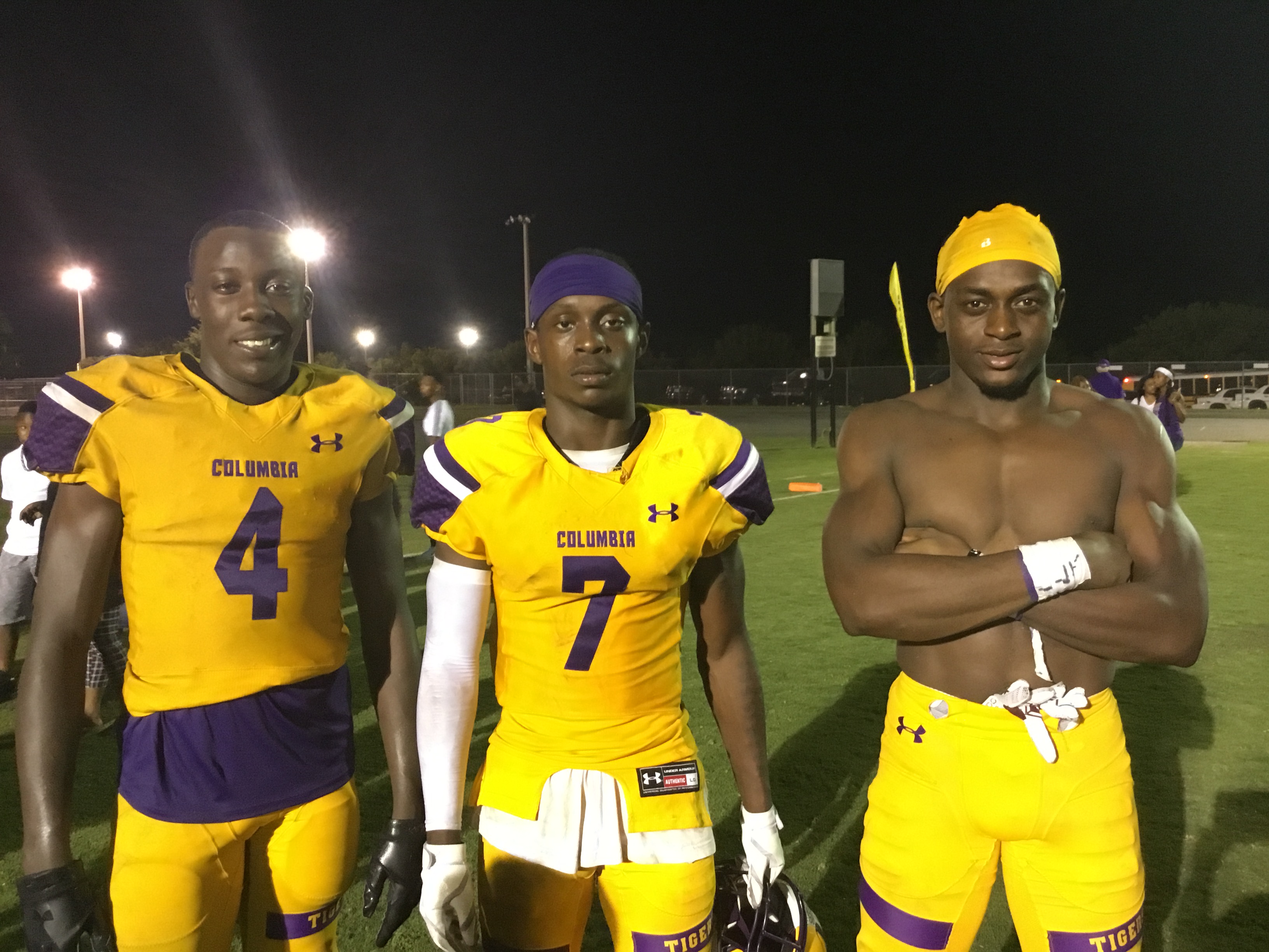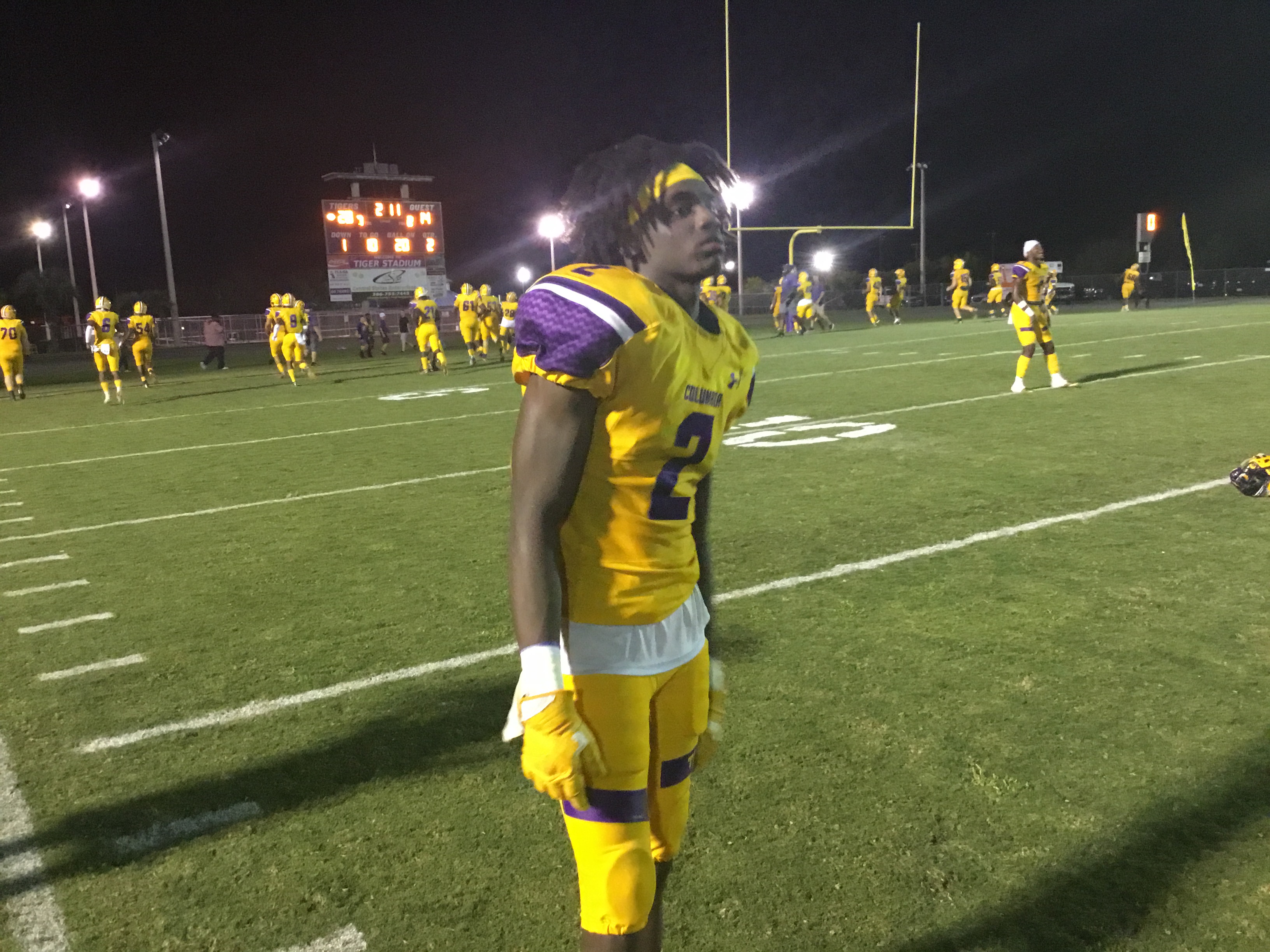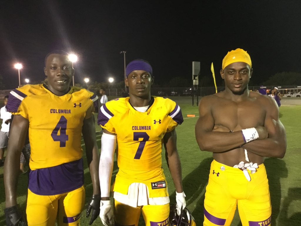 The game got off to a extremely fast start with Columbia striking first. With 10:30 left on the clock, Quarterback Jordan Smith hit wide receiver Marquez Bell for 36-yard score and just like that Columbia was up 7-0. The quick score was something that the Tigers knew they needed to do. ” It felt good to send a message” said senior Wide-Receiver T.J Jones. “We haven’t beat these boys and everybody is looking to see what we are gonna do, what I am gonna do”. Well all Jones did was score two touchdowns himself, adding to the one by his partner Bell. Jones would score on a 26 yd touchdown reception and then on a 69 yard reception in the game.