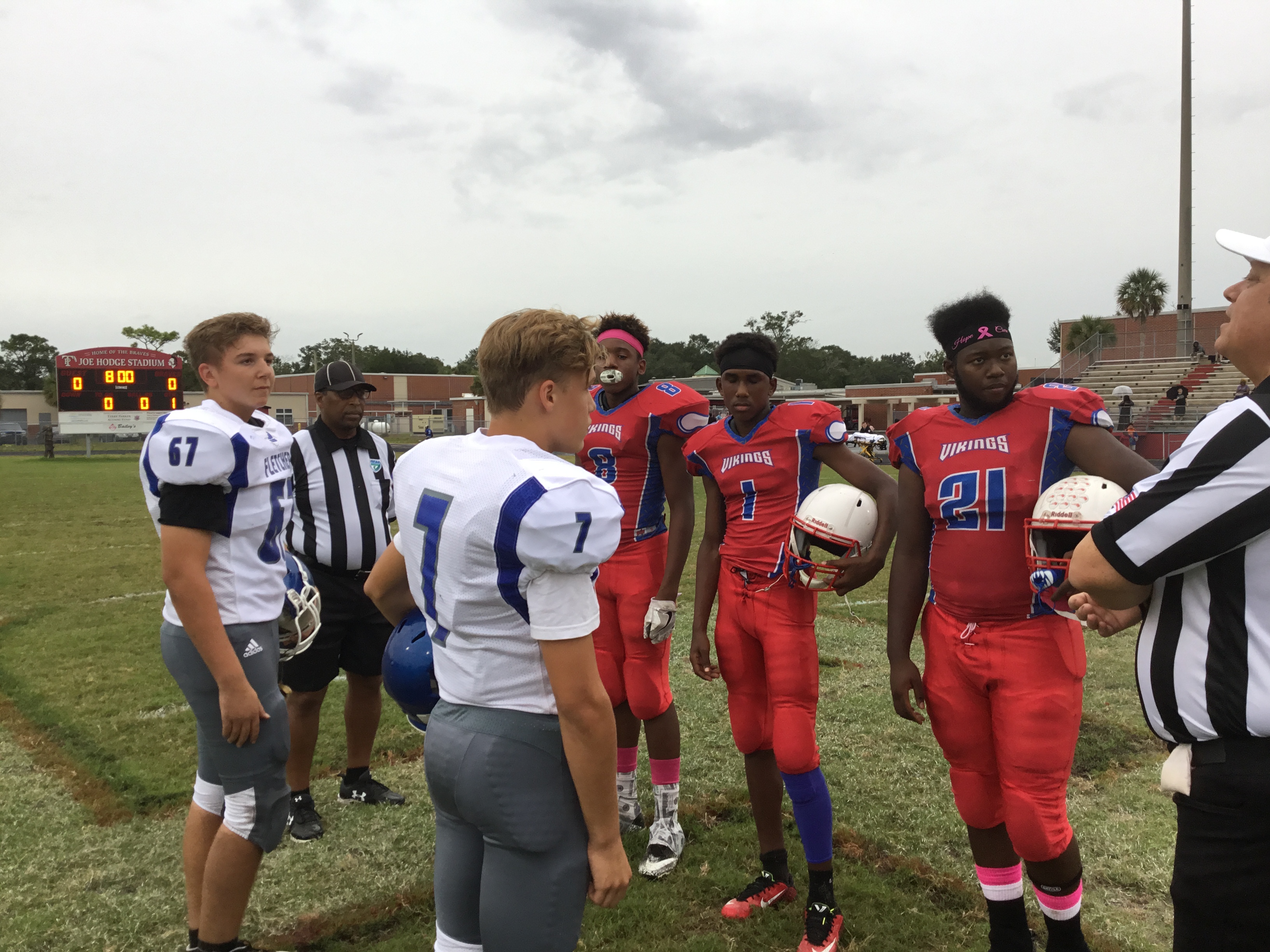 Arlington MS- Leading with a score of 8-0 over Arlington late in the 4th quarter, Fletcher’s defense began to buckle. A 56 yard run, and a 21 yard run by running-back Sayvion Blount, put Arlington deep in Fletcher territory. Kmorie Gilchrist would score on a one yard touchdown run to make the score 8-6 as Fletcher held a 2-point advantage. Fletcher needed a stop on defense to keep the advantage and Arlington needed a score on offense to tie. Arlington would turn and give the ball to the man that had guided them all season, the 6 foot 3 inch 220 pound Blount. Blount would run right then cut up field, but standing in his way was the 5 foot 6 inch 150 pound Marshall Evans. Evans would win, as he tackled Blount just one yard shy of the goal-line, keeping the score at 8-6. The play would sum up the game, as Fletcher made all the right plays when it counted defeating Arlington 22-6 to be crowned Duval County Middle School Conference Eastern Division Champions.