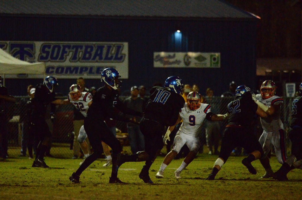 WESTSIDE – Surprisingly locked in a tie at the half, Trinity Christian used the torrential down pour to its own advantage by turning up its defensive pressure enabling the Conquerors to run away from visiting Bolles 34-7 Friday night.