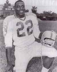 Robert “Bob” Lee Hayes attended Matthew Gilbert High School (now a middle school) in Jacksonville, where he was a backup halfback on the football team. The 1958 Gilbert High Panthers finished 12–0, winning the Florida Interscholastic Athletic Association black school state championship with a 14–7 victory over Dillard High School of Fort Lauderdale before more than 11,000 spectators. In times of segregation laws, their achievement went basically unnoticed, yet 50 years later they were recognized as one of the best teams in FHSAA history. (Courtesy Wikipedia)