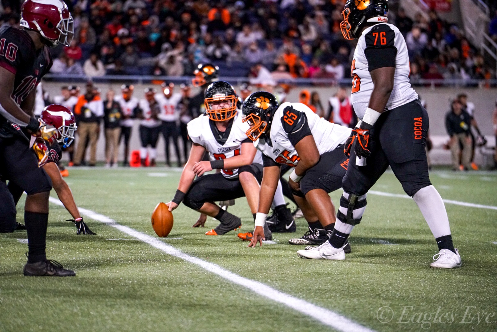 It was a sloppy start for both teams in the game as penalty flags riddled the field. Raines was flagged for 10 first half penalties which stifled their offense that gained big plays. Starting quarterback Jacorey Rivers gained 20 yards on a 3rd and 23 early in the game. When Raines punted, Cocoa would muffed the punt and the Vikings recovered at the 11 yard line. Three penalties pushed Raines back however, and a fourth down pass was incomplete squandering an early scoring opportunity.