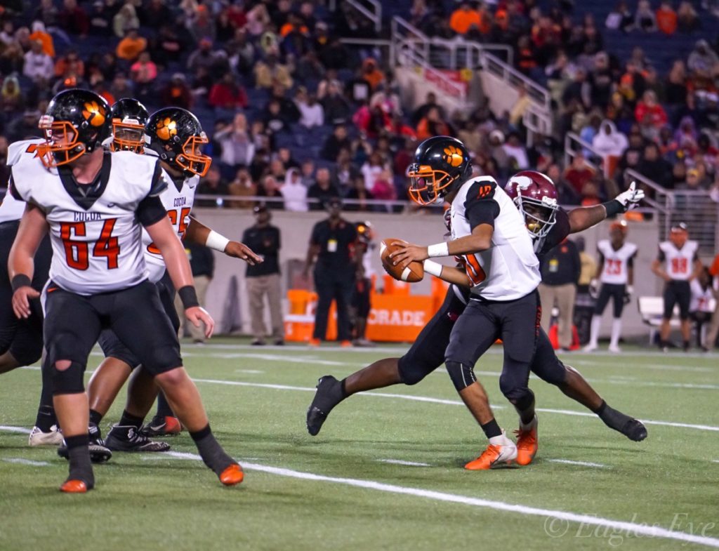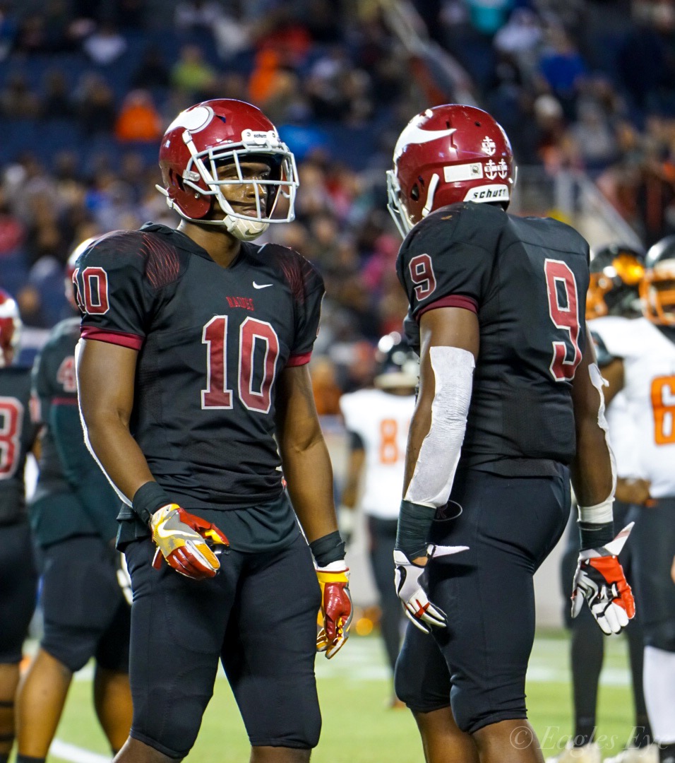 Needing a spark on offense Coach Deran Wiley went back to the young man that had guided his team most of the season quarterback Barren Coates. Coates was benched in favor of fellow quarterback Jacorey Rivers in the playoffs simply due to matchup mismatches. In the biggest game of his life, Coates would come in and observe a major mismatch of his own. Said Coates ” On the sidelines I saw that they weren’t covering Brandon (Marshall) in the passing game, so when I got in I got it to him”.