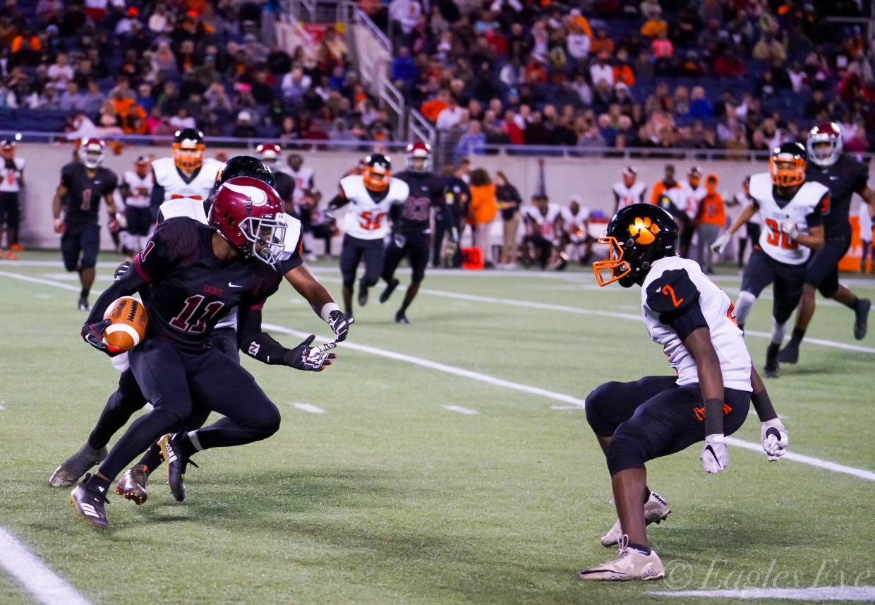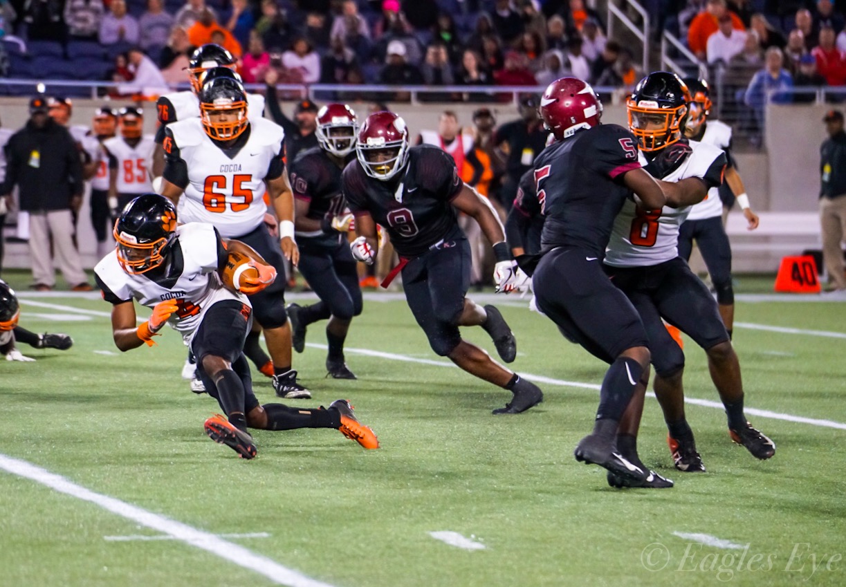 In the second half Raines would run away with the game thanks to its opportunistic defense. A defense that had only given up 9 points in the playoffs continued the dominating trend as they hounded Cocoa players. Cocoa would come out of halftime determined on passing the ball and the strategy seemed to work in the beginning. On the first play from scrimmage in the second half Arroyo would hit Latrell Pace on a big 49 yard pass. He would then hit Willie Gaines for an 18 yard completion to get the ball to Raine’s 11 yard line. Yet Raine’s defense would stuff the Tigers thanks to a tackle for loss and pressures by DE Janorris Robertson. Cocoa was forced to attempt a 24-yard field goal but missed wide. the score remained 14-7 Raines lead.
