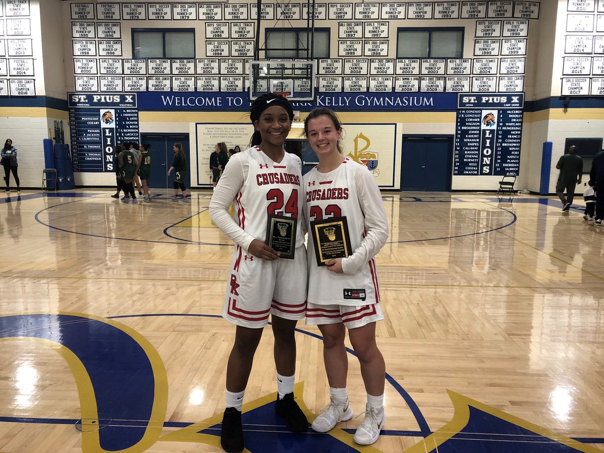 Note: The streak has reached 10 in a row now after sweeping their way through the St. Pius Christmas Classic in Atlanta over the weekend. In the opener, Rose Dolmovich, Lindsay Miller and Jasmyne Roberts led Kenny in scoring with 12 points each, while Cara McCarthy and Maddie Millar chipped in with 9 points and 8 points respectively. Down 27-23 heading into the fourth quarter, Kenny rallied from behind with a 19-10 run to pull out the semifinal win over host St. Pius thanks to solid contributions from Jasmyne Roberts (16 points, 11 rebounds), Maddie Millar (11 points) and six points each from Lindsay Miller and Cara McCarthy. In the title game, Jasmyne Roberts led the Crusaders with 30 points and 11 rebounds, while Cara McCarthy added 8 points and 10 assists to take the tourney title.