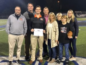 According to his head coach Jim Stomps, Reeves was chosen the recipient of the $500 scholarship, after being selected by a committee based on his merit off and on the field, his volunteering, 4.6 GPA, 1350 SAT score and essays he and Stomps wrote.