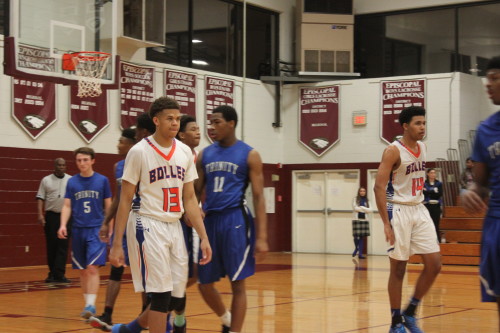 Lorenzo Lawrence (#0) scored 22 points to lead the Bolles Bulldogs over Trinity Christian Friday Night at Episcopal. Bolles controlled most of the game as they dominated with their height and length. Trinity closed the gap late in the fourth quarter thanks in part to #1 Shaun Wade’s 15 pts. But Bolles knocked down their free throws at the end to win the game.