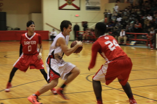 This game featured a thick atmosphere filled with suspense and enthusiasm from the Kenny student section and the Baker adult section! The actual game was just as suspenseful. A back and forth contest with several lead changes came to a surprising stale-mate with under a minute left in the game. Baker had their chances but could not hit their shots down the stretch to win the game. Instead it was BK’s Chris Joyce with 14 points and Chris Carlyle’s 12 points that allowed BK to squeeze past Baker 44-42. #5 Charles Ruise led Baker with 15 points.