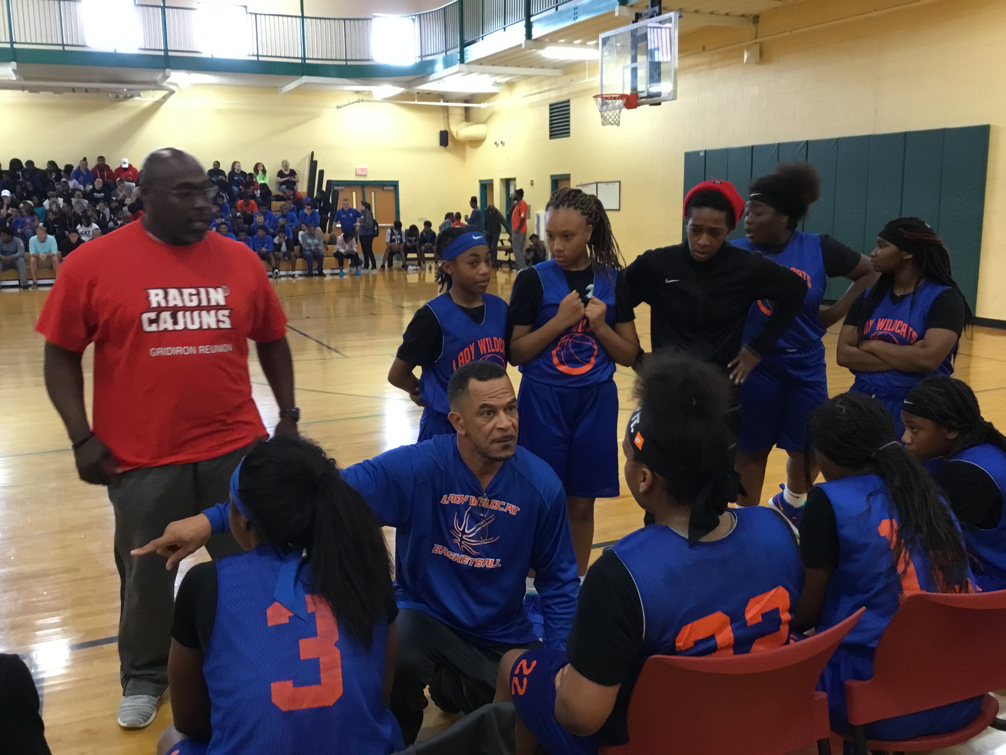 In girls action, Highlands defended their 2018 Legends Center Championship by defeating Kernan handily. Asiana Britt (#3) led the charge scoring points, and providing pressure on defense. The Wildcats suffocated Kernan, forcing turnovers and easy fast break points.
