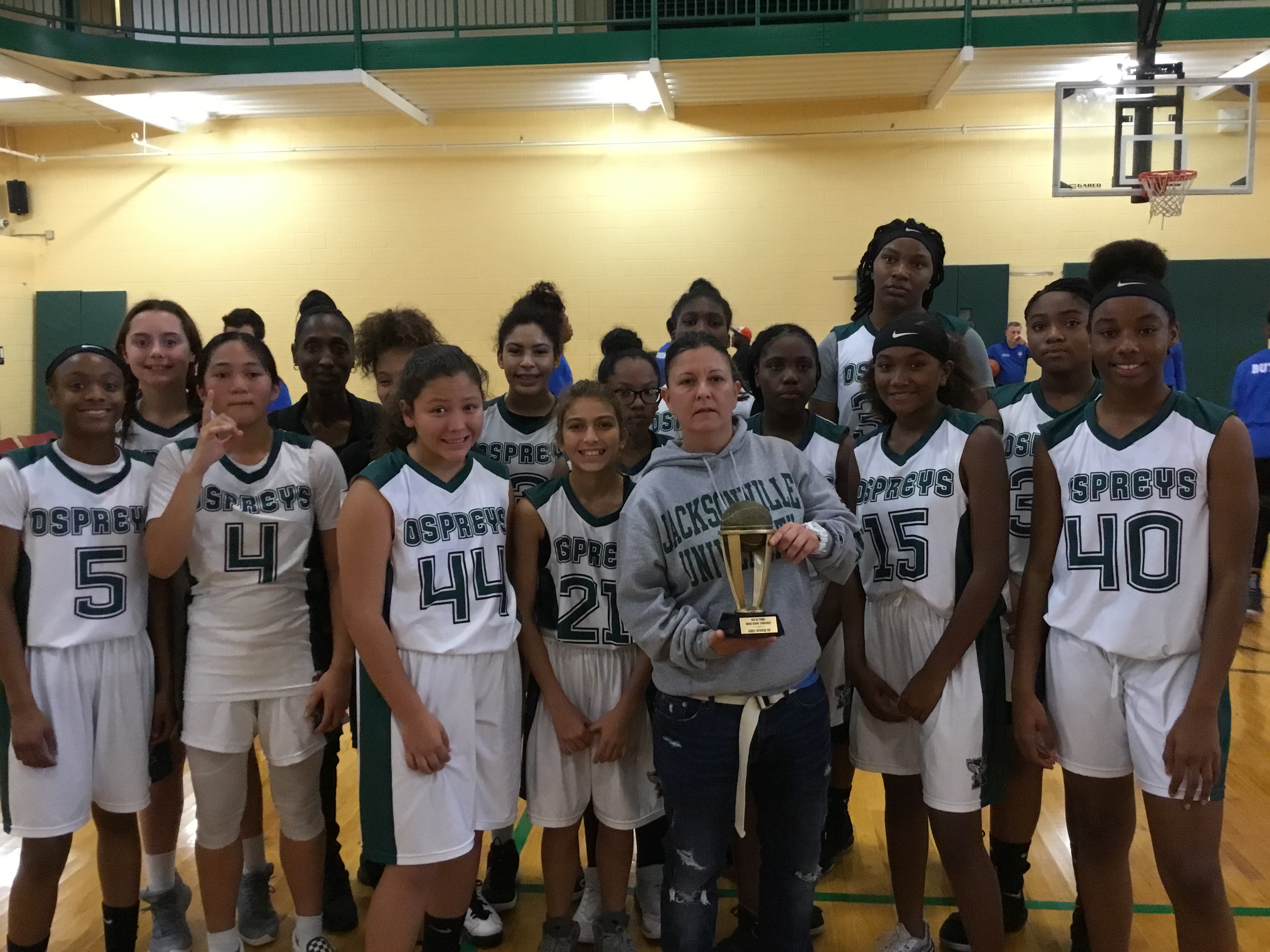 Jacksonville FL- The 2019 Duval County middle school basketball season is gearing up, and teams finished their last tune ups preparing for the regular season. One exhibition of note was held at the Legends Center on Jacksonville’s Northside, which the City of Jacksonville hosts annually. The tournament pits some of the best middle school basketball programs in the area against one another in friendly competition for the coveted championship trophy. Recreational Specialist Kevin Coleman oversees the tournament for the city, and it was another great success as parents and fans filled the Legends center for the games.