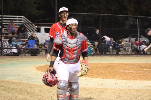 innings as both teams played very impressive ball. Englewood attempted to assert their power early as #25 Travis Sayago threw the eat from the mound. His quick release and the ability to rebound on the mound fast, kept Parker’s batters off balance for most of the first few innings. Terry Parker got pretty good play from the mound as well, but their strongest effort in the game came from their in-field play. As Englewood started to connect with the ball, Parker found themselves with the bases loaded. Catcher Brandon Douglas, or Dougie as his teammates affectionately call him, caught a foul ball then rifled it to first base to throw out the runner, then received the throw to out the 3rd base runner who attempted to score off the tag. An incredible tripple play by the Braves. Not to be upstaged, on the very next series Englewood pulled off a sweet double play as TP could not score with runners on 1st and 3rd.
