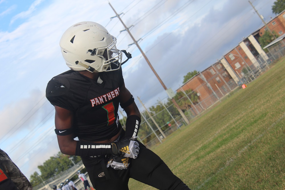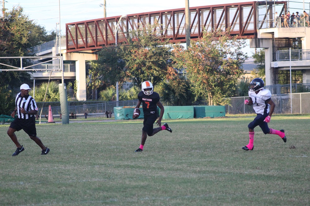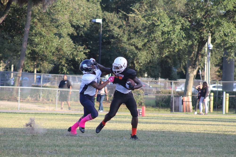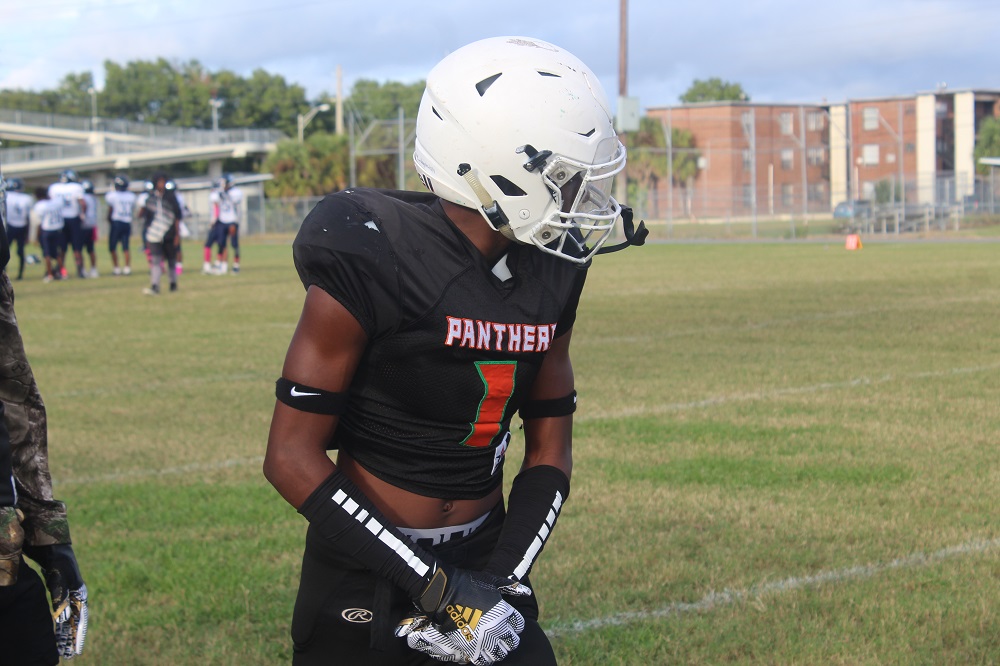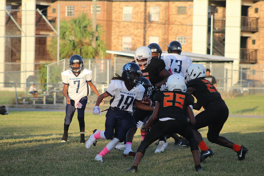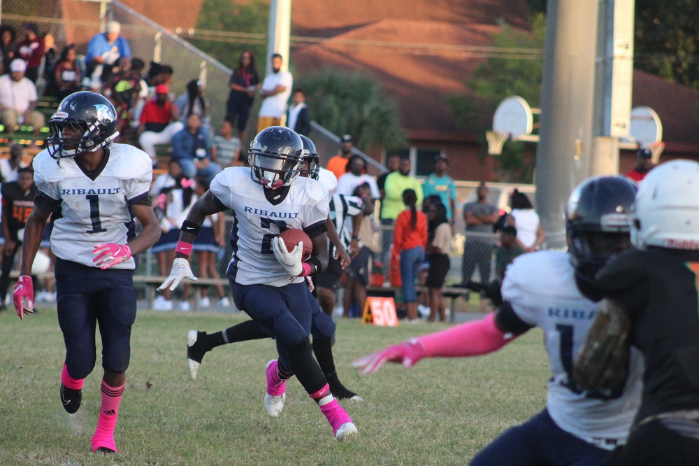 The game was a defensive struggle from the start as both teams attempted to establish the run. On Gilbert’s first drive, the Panthers were not able to get their patented running game going. That’s because Ribault’s defense was relentless. #1 Charles Irvin shut down the outside making tackles on the first drive.