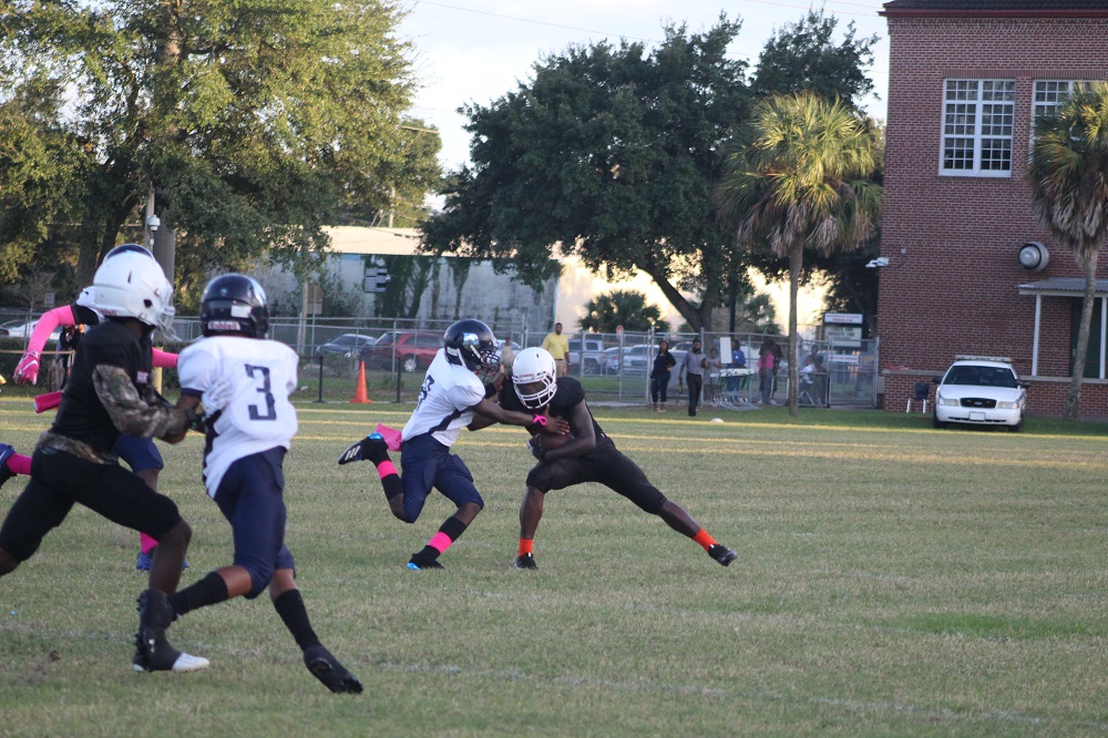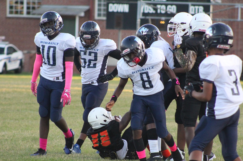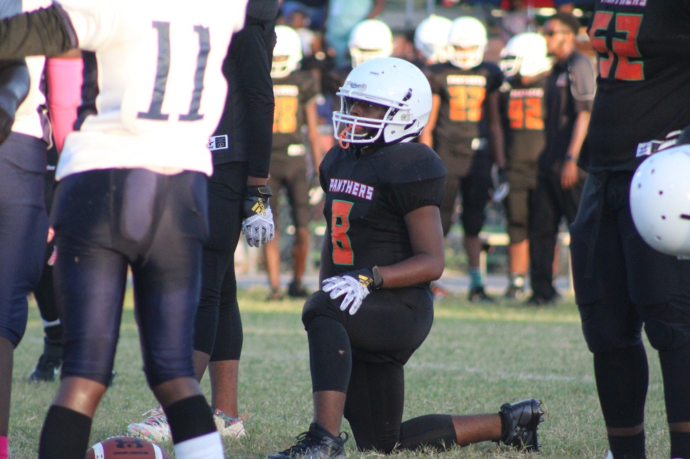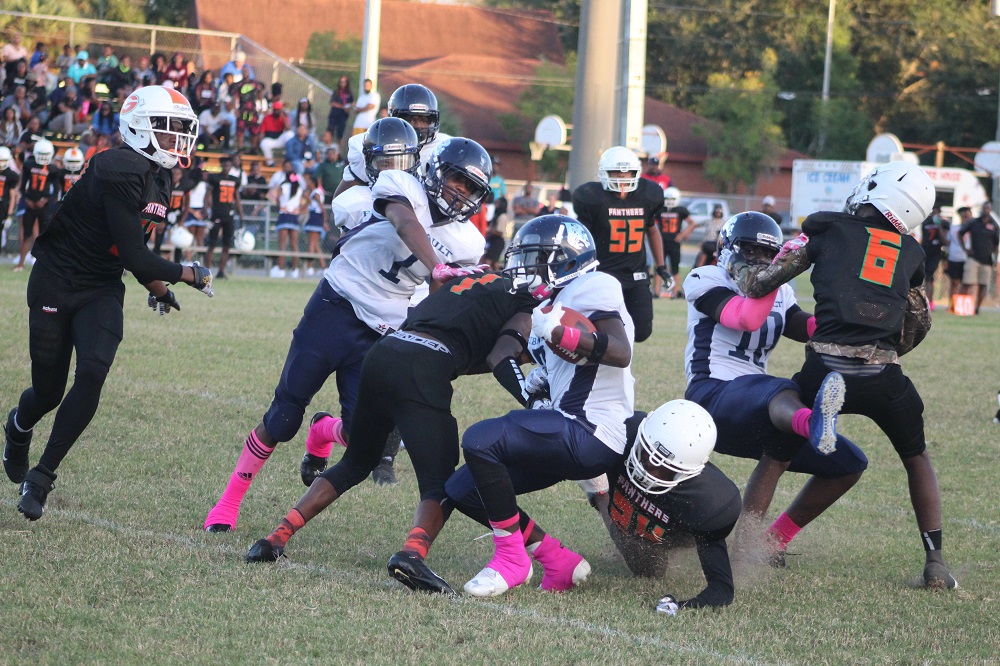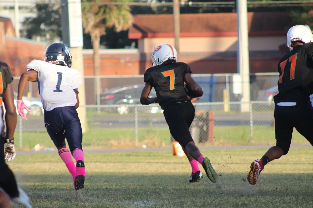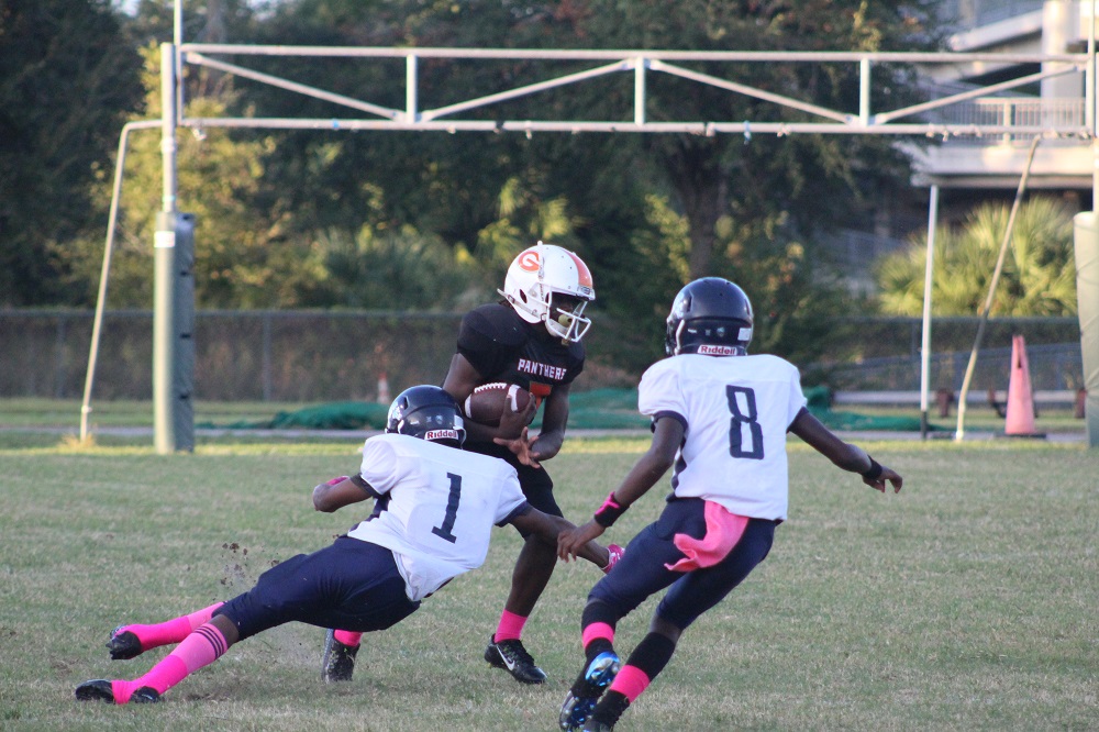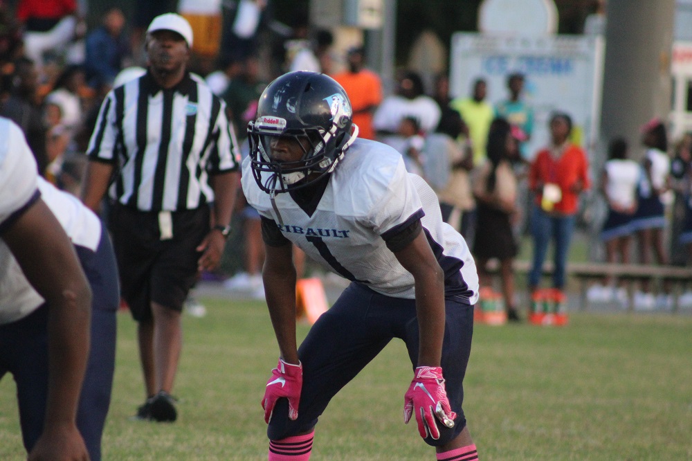 The game was a defensive struggle from the start as both teams attempted to establish the run. On Gilbert’s first drive, the Panthers were not able to get their patented running game going. That’s because Ribault’s defense was relentless. #1 Charles Irvin shut down the outside making tackles on the first drive.
