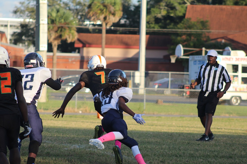 Ribault’s offense stalled in the second half as well. Running lanes were cut down and big plays were made by several defenders. #12 Omar Holcomb Jr intercepted a pass and almost returned it for the tying score, but was tackled.