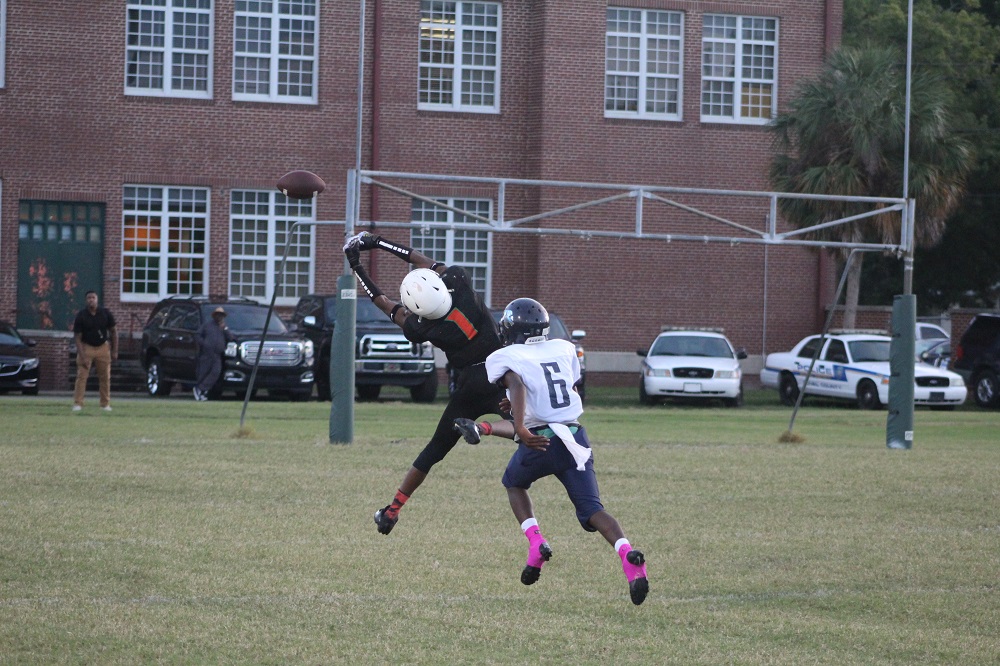 Eastside– With just seconds remaining on the clock and trailing by four points, the Mathew Gilbert Panthers needed a touchdown to win the game and remain undefeated on the season. With the ball at the Ribault 30 yard line, Panther quarterback #7 Davion Brown broke a tackle in the pocket and rolled left firing a pass toward the end-zone. The pass was caught by receiver #22 Deiondre McDonald at the one yard line, but Ribault defensive back #6 Raquan Bacon tackled McDonald at the one yard line as time expired. Ribault would edge Gilbert with a 6-2 victory as the Colts remained undefeated on the season.