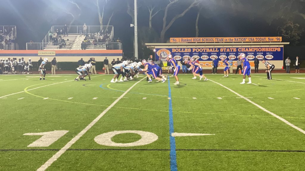 Jacksonville Fl- Patience, that’s what the Bolles Bulldogs displayed Friday night in the Class 4A FHSAA state semifinal game. Trailing for most of the game and struggling on offense, patience was the virtue that paid off for Bolles. The tenacious defense of Gadsden County kept Bolles at bay for as long as they could, shutting the Bulldogs out for three quarters.