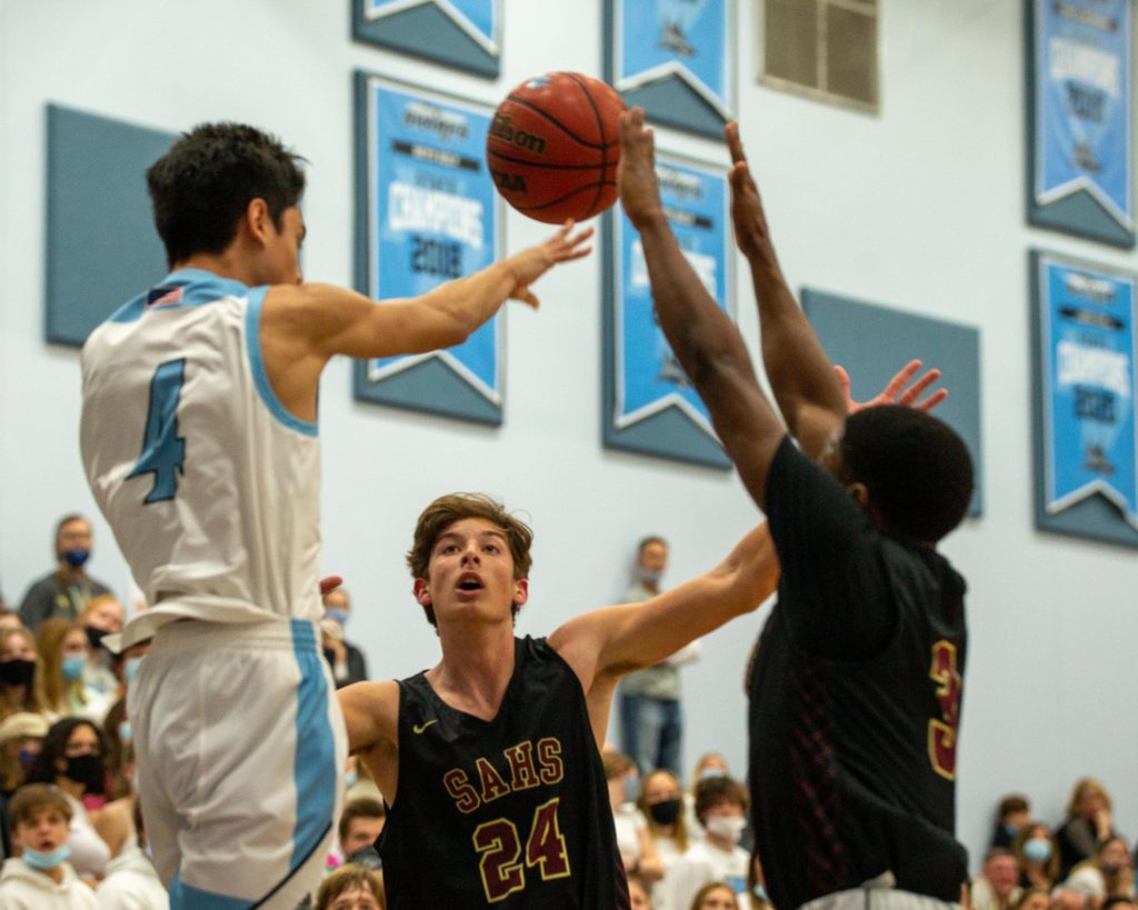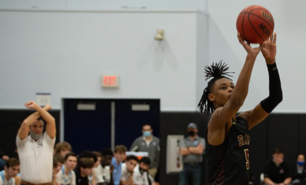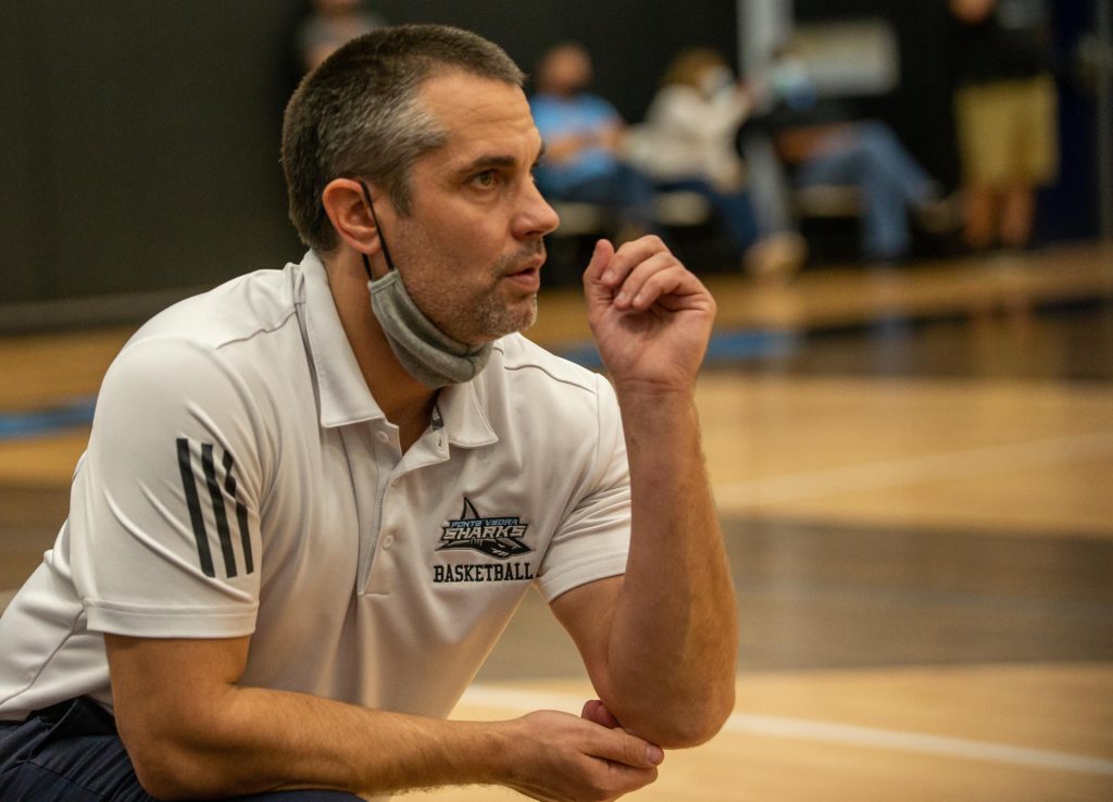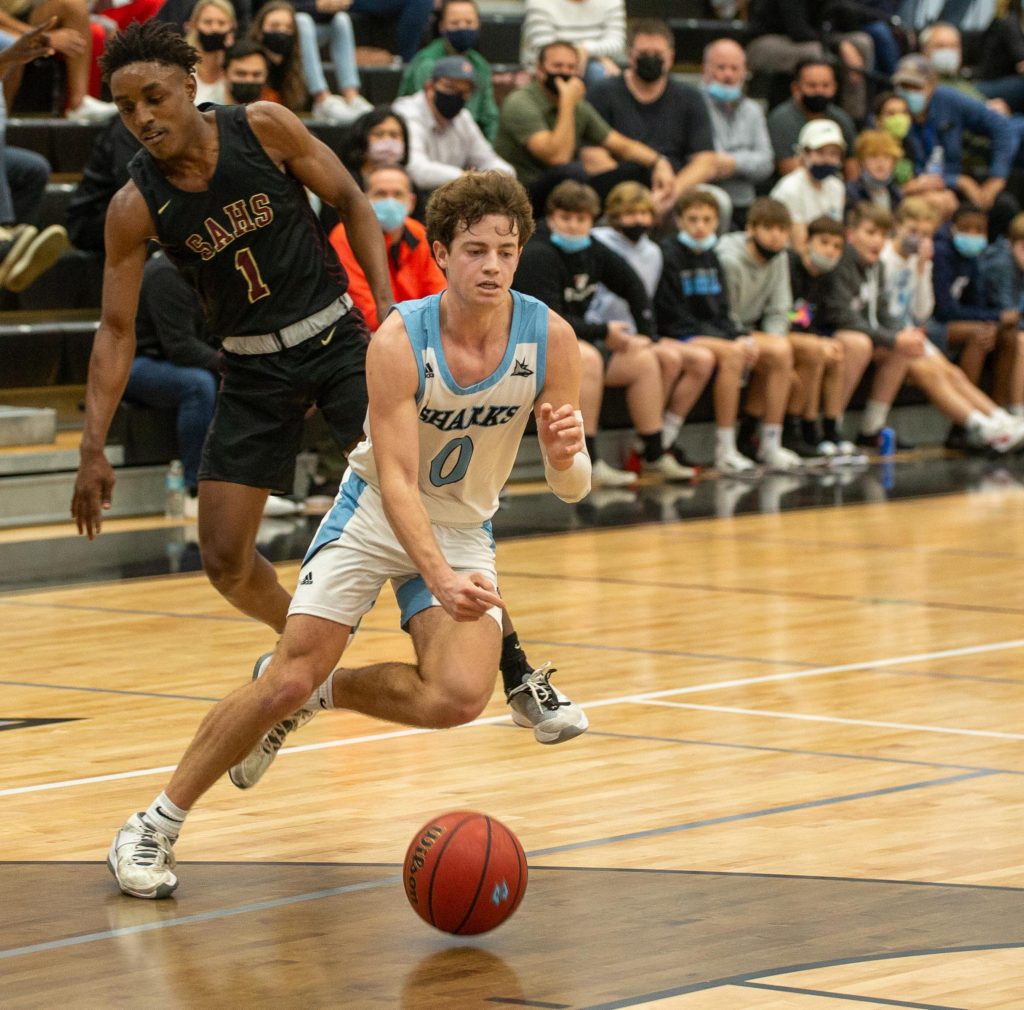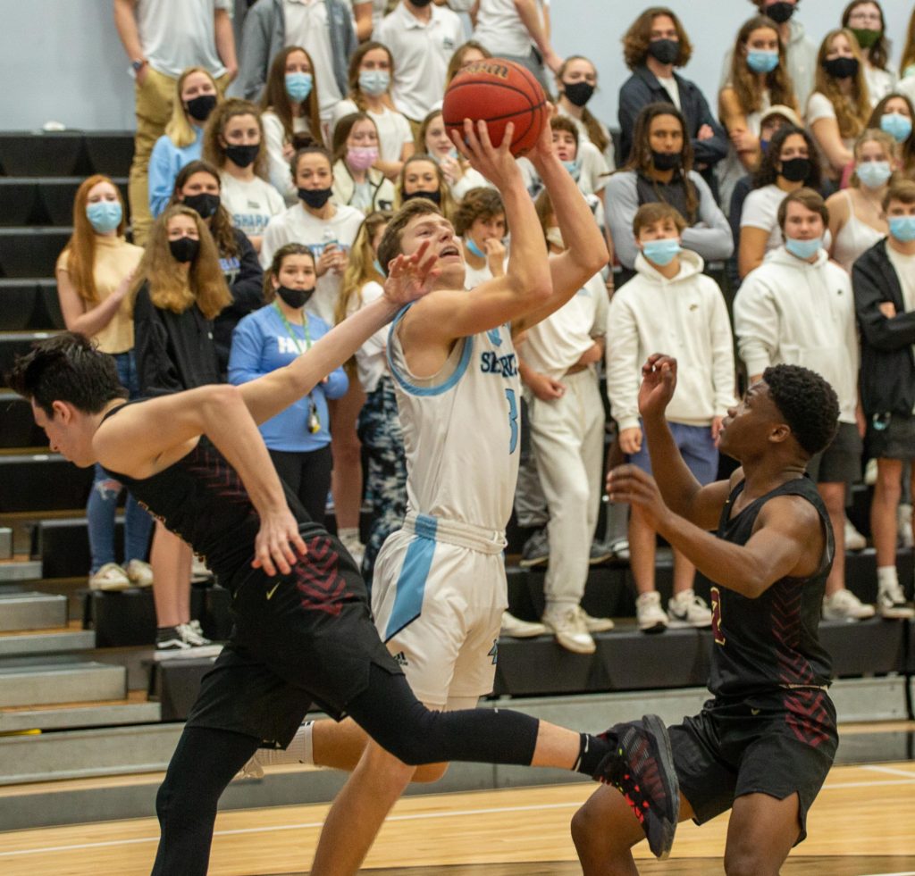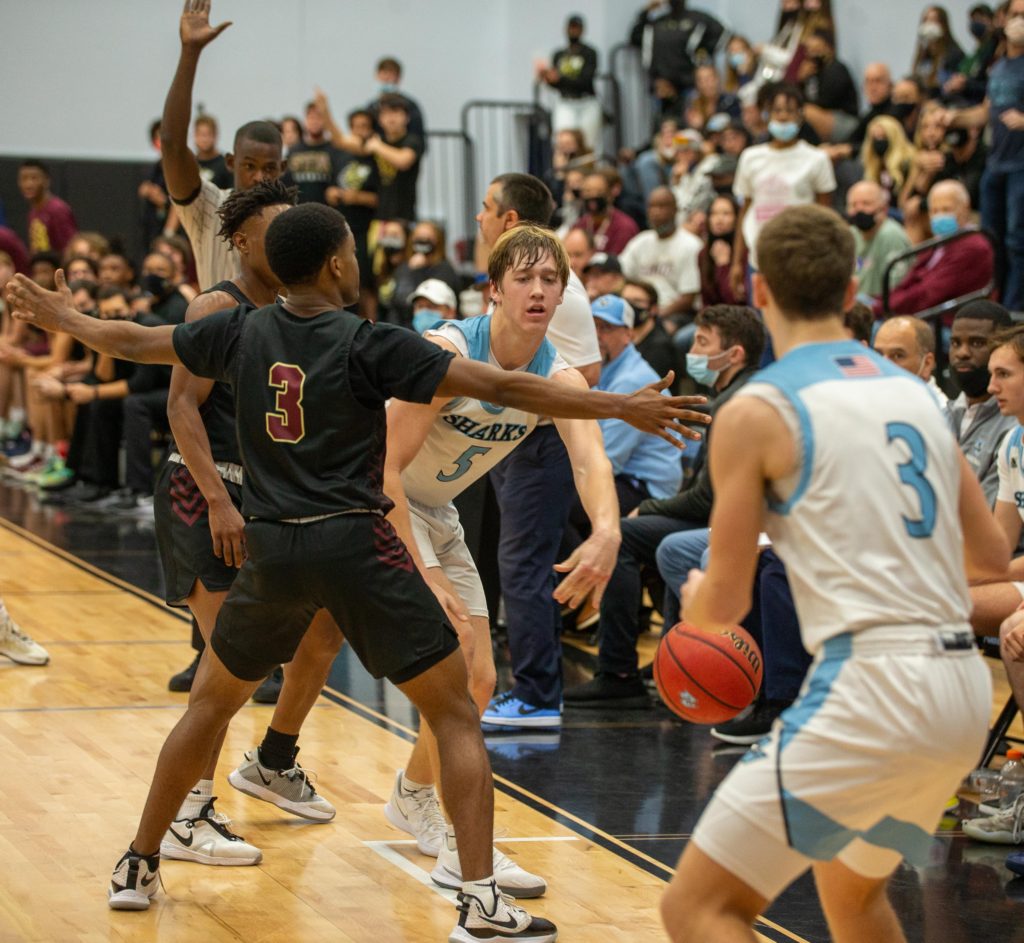 Ponte Vedra basketball coach Kevin Whirty led the Sharks to their first district championship in five years with a 61-53 win over St. Augustine on Friday night. (Photo by Will Brown)Ponte Vedra guard Alex Madsen launches a floater during a Feb. 12, 2021 win over St. Augustine.Ponte Vedra guard Will Irwin (4) tries to pass out of a the double team of St. Augustine’s Sammy Edwards (24) and Dequan Stanley (3) during the District 4-5A tournament final on Friday, Feb. 12, 2021. (Photo by Will Brown)St. Augustine fans celebrate a made 3-pointer at the end of the first half of the District 4-5A tournament final on Friday, Feb. 12, 2021 at Ponte Vedra High School. (Photo by Will Brown)St. Augustine boys basketball coach Quinterrrance Cooper tries to rally the Yellow Jackets during a timeout. The Yellow Jackets’ quest for a third consecutive district championship ended witha 61-53 loss to Ponte Vedra. (Photo by Will Brown)Ponte Vedra’s Jack Polian (10) and St. Augustines Jamar Hamilton vie for a rebound during the District 4-5A tournament final on Friday, Feb. 12, 2021. Ponte Vedra won 61-53 to secure its fiirst district title in five years. (Photo by Will Brown)Ponte Vedra’s Luke Pirris (5) wins a battle for a rebound with St. Augustine’s Adam Soroka during the Distrcit 4-5A tournament final on Friday, Feb. 12, 2021. (Photo by Will Brown)St. Augustine guard Trevon Dirden launches a 3-pointer over the top of Ponte Vedra’s zone defense during the District 4-5A Tournament final. Ponte Vedra led by 20 at one point, but rallied for a 61-53 win. (Photo by Will Brown)Ponte VEdra’s Luke Pirris drains a free throw to the delight of the Sharks’ student section during the District 4-5A Tournament final on Friday, Feb. 12, 2021.Ponte Vedra forward Luke Piris (5) tries to pass out of the trap laid for him by St. Augustine’s Brakhel Burch and Dequan Stanley (3) during a District 4-5A Tournament final on Friday, Feb. 12, 2021. (Photo by Will Brown)Ponte Vedra guard Alex Madson (0) evades St. Augustine guard Brakhel Burch (1) during the second half of the District 4-5A Tournament final. (Photo by Will Brown)St. Augustine guard Trevon Dirden dribbles up the court during the second half of the District 4-5A tournament final on Friday, Feb. 12, 2021. (Photo by WIll Brown)Ponte Vedra guard Nathan Bunkowsky takes the contact during the second half of the District 4-5A tournament final on Friday, Feb. 12, 2021.Ponte Vedra guard JT Kelly (25) drives past St. Augustine’s Jamar Hamilton during the second half of the District 4-5A tournament final on Friday, Feb. 12, 2021 (Photo by Will Brown)Ponte Vedra guard Nathan Bunkowsky avoids the quick feet of St. Augustine guard Trevon Dirden (3) and Brakhel Burch (1) during the District 4-5A tournament final on Friday, Feb. 12, 2021 (Photo by Will Brown)