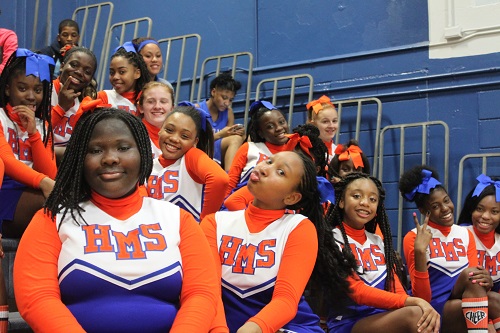 The regular season finale for Ribault and Highlands Middle School Basketball took place tonight as fans packed the gym to support their sons and daughters. Both teams came into the contest traveling very different paths. Highlands although win-less (0-11)on the season, came into the game excited to showcase their progress from week one to now. Their cheerleaders were rhythmic and enthusiastic as they got the crowd hype with their chants and cadences. And that enthusiasm translated into effort onto the court as Highlands played with intensity and pride throughout the game.