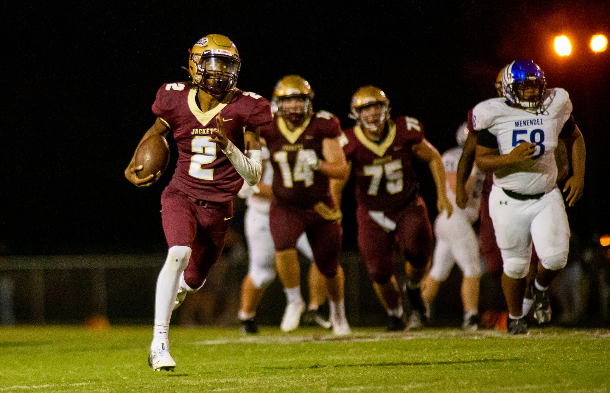 2. Riverside (2-0)– Falling one spot from #1 to #2 (no fault of their own) is Riverside, who dismantled fellow unbeaten Atlantic Coast last Friday 40-7. Masiah Wells intercepted quarterback Baylor Hayes to seal Coast’s fate against the vaunted Generals defense. DE De’Avery Weeks had 2 sacks in the game, while Zaire Moody, Michael Paulino, and Jamari Allen registered a sack each. Running back Al Gibson rushed for 174 yards and 2 touchdowns, for his second consecutive 100-yard rushing effort. Generals are firing bombs right now. Next Up: at Ribault (0-2)
