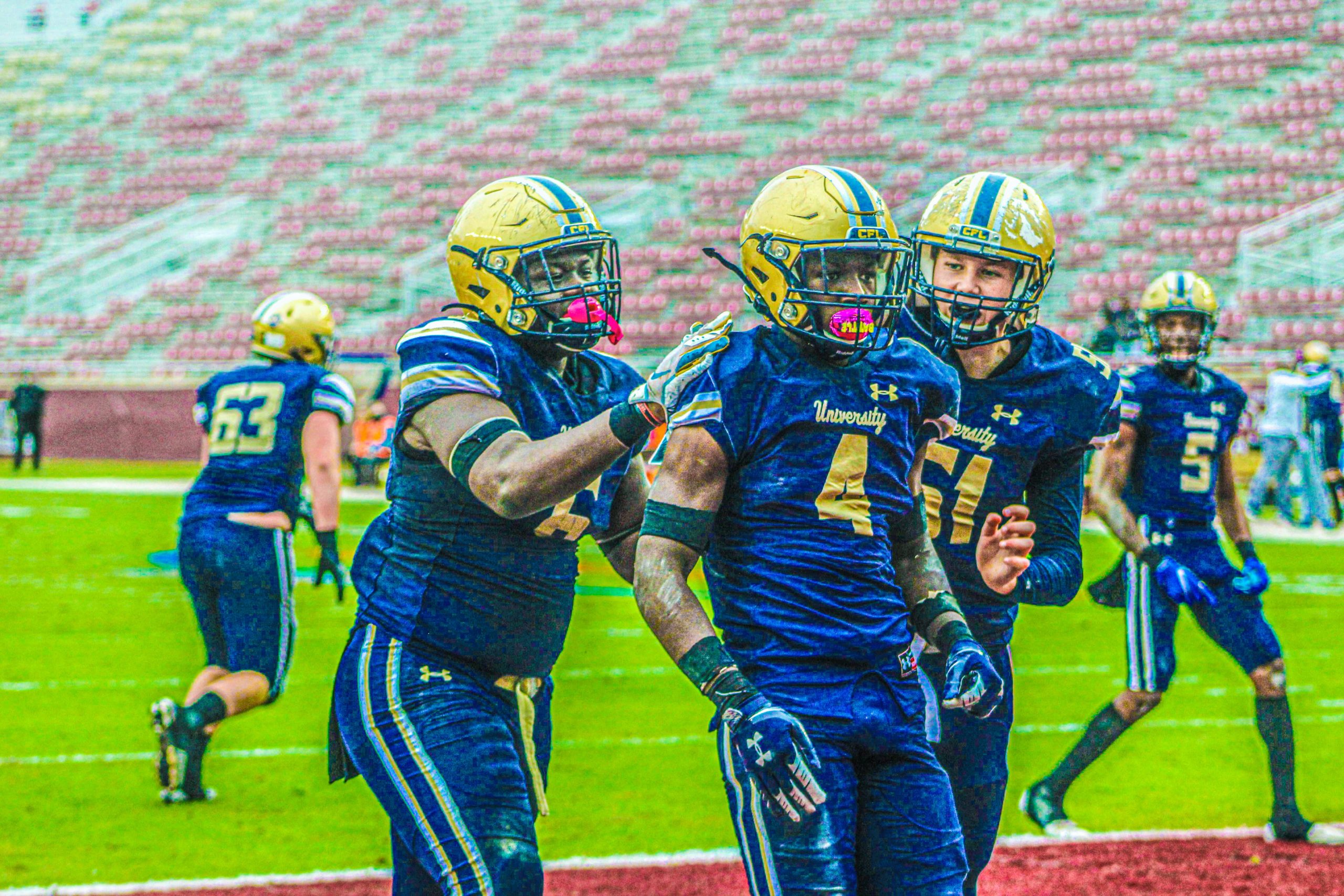 #4. University Christian (2-0)– Moving up four spots from #8 is University Christian who has looked extremely impressive in their wins this season. They defeated Zephyrhills 37-27 last Friday to improve to 2-0. Orel Gray has been a touchdown and interception machine, scoring 3 on the ground last week and adding an interception, his third of the season. Gabe Mc Lamb has led the way on the O-line for Grey’s 248 yds rushing this season, yet unfortunately the 6’3, 285 pound guard/ d-tackle was lost for the season with an injury last week. UC has plenty of weapons in Desirrio Riles, Jawon Grey and Jerome Manning to keep the ball rolling. Next Up: Home vs Madison County (0-1)