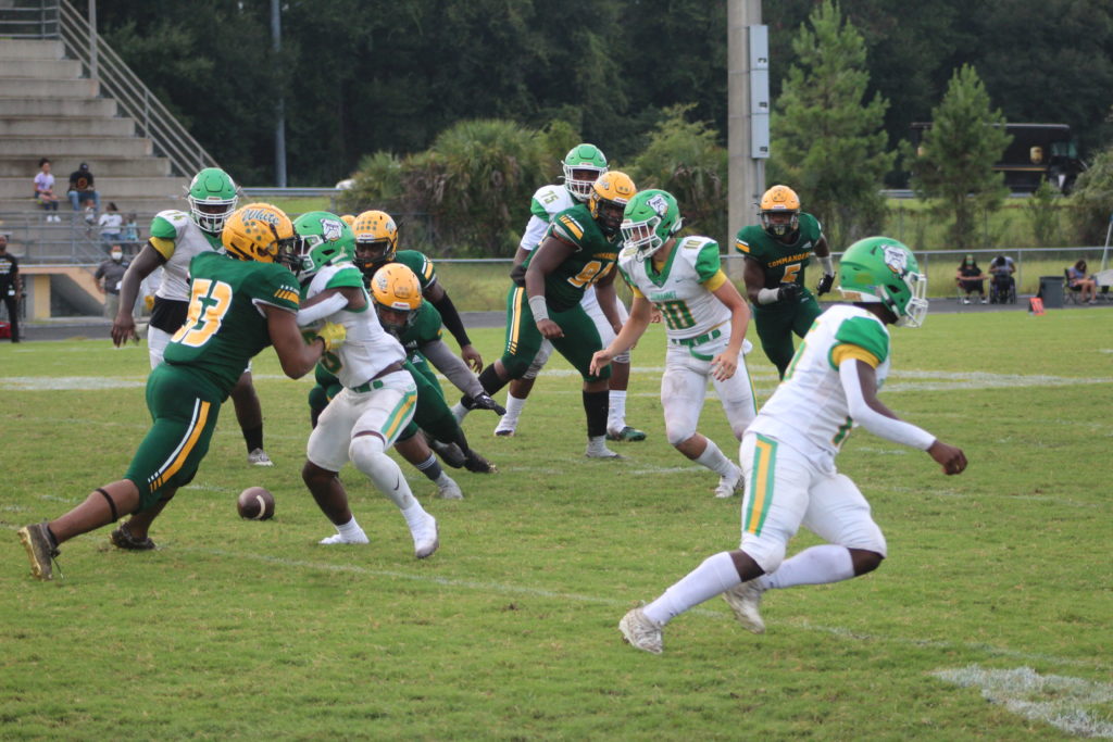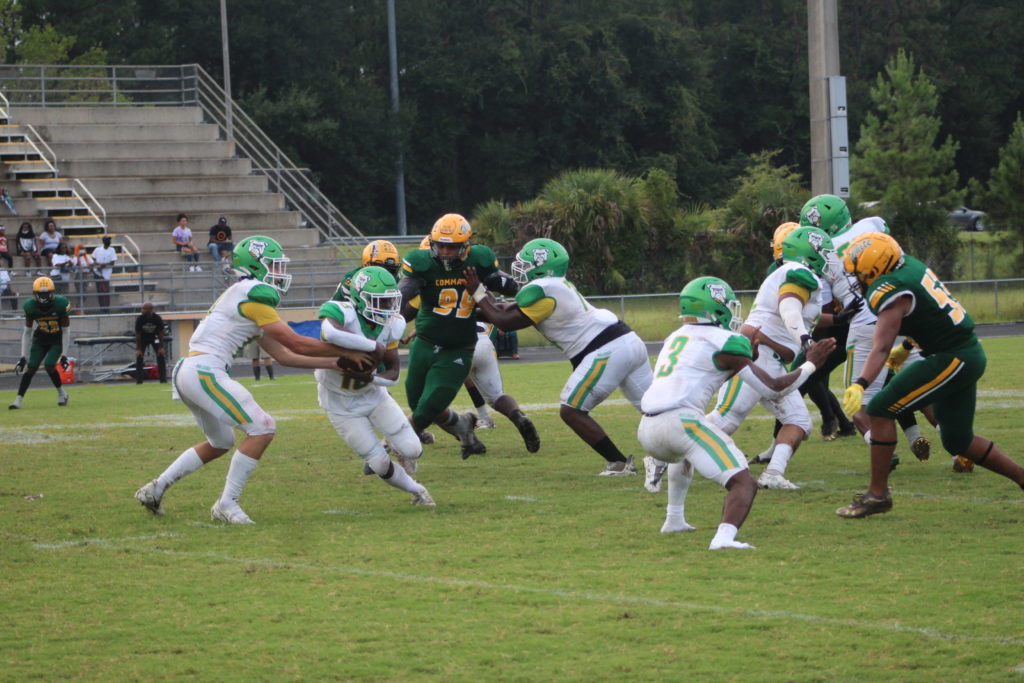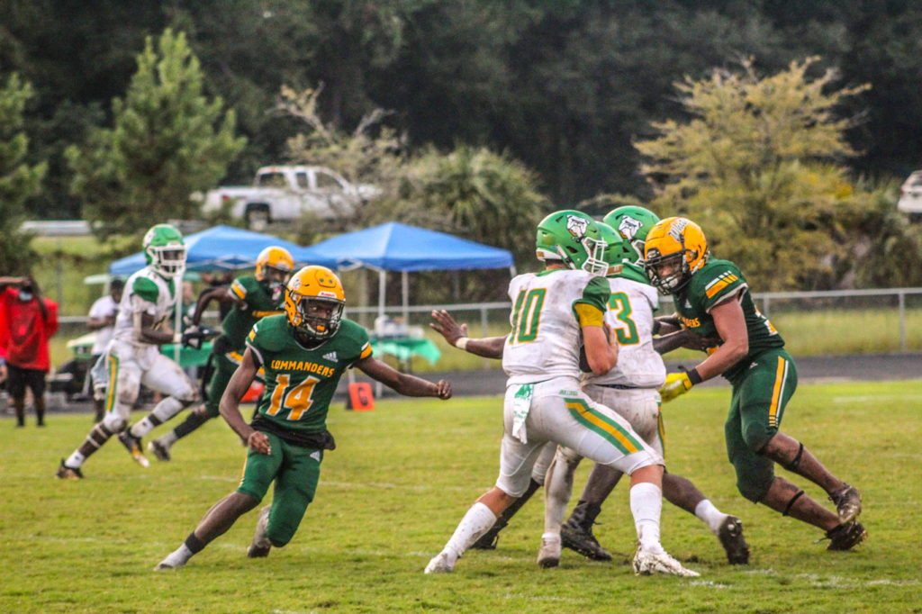 Ed White’s defense has generated several turnovers resulting in points for the offense in their two games, and that was the case early on against Suwannee. A fumble recovery by Christian Ellis set up shop for the Commander offense in the first quarter. They would recover 4 fumbles in the game (Drequwan Washington, Dawian Mobley).